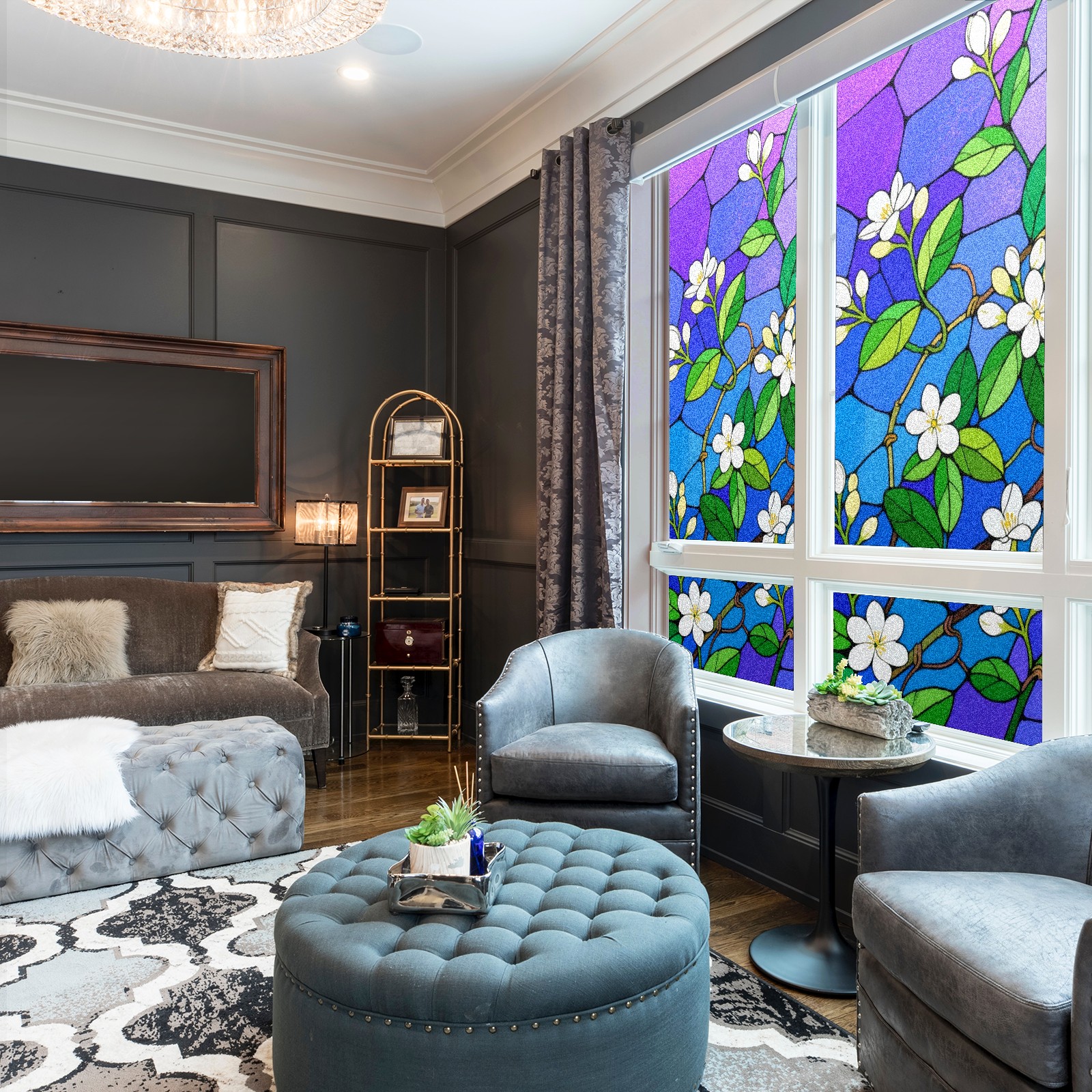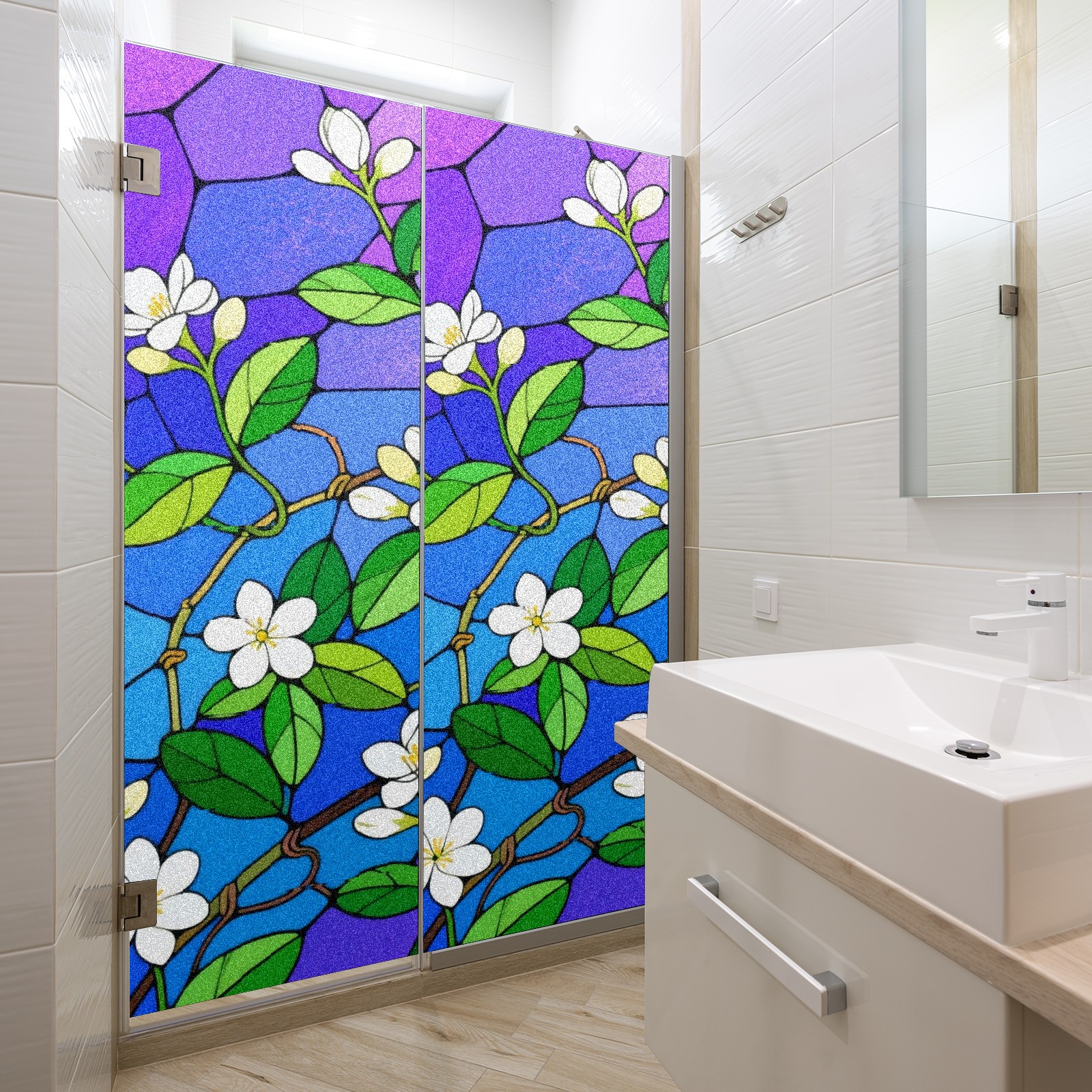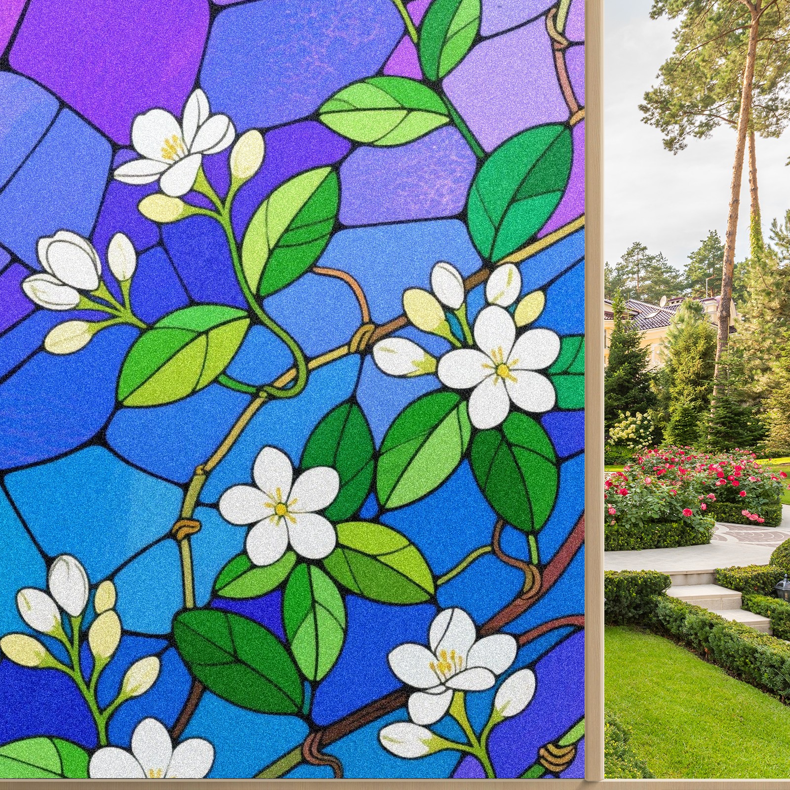 Window Privacy Film Decorative Window Decal Film Removable Static Cling Window Tint for Home Bedroom Sun Blocking Stickers 17.7 x 23.6 Inches Flower