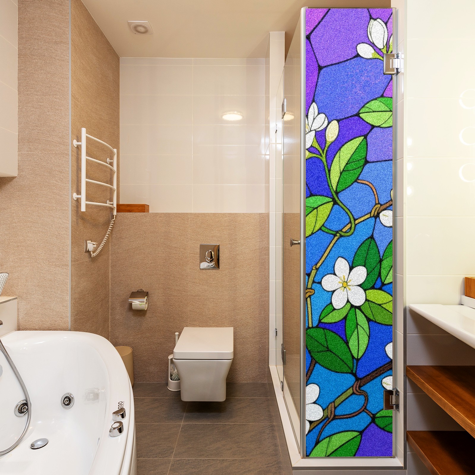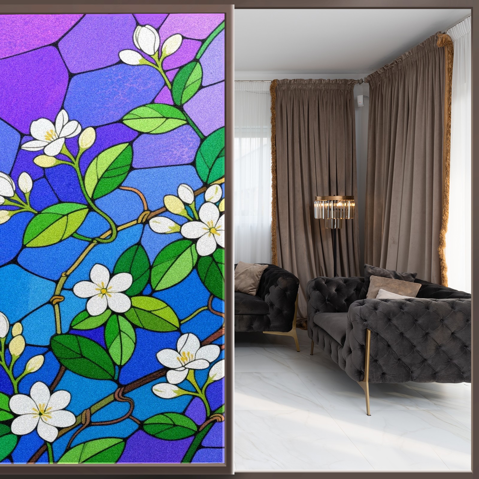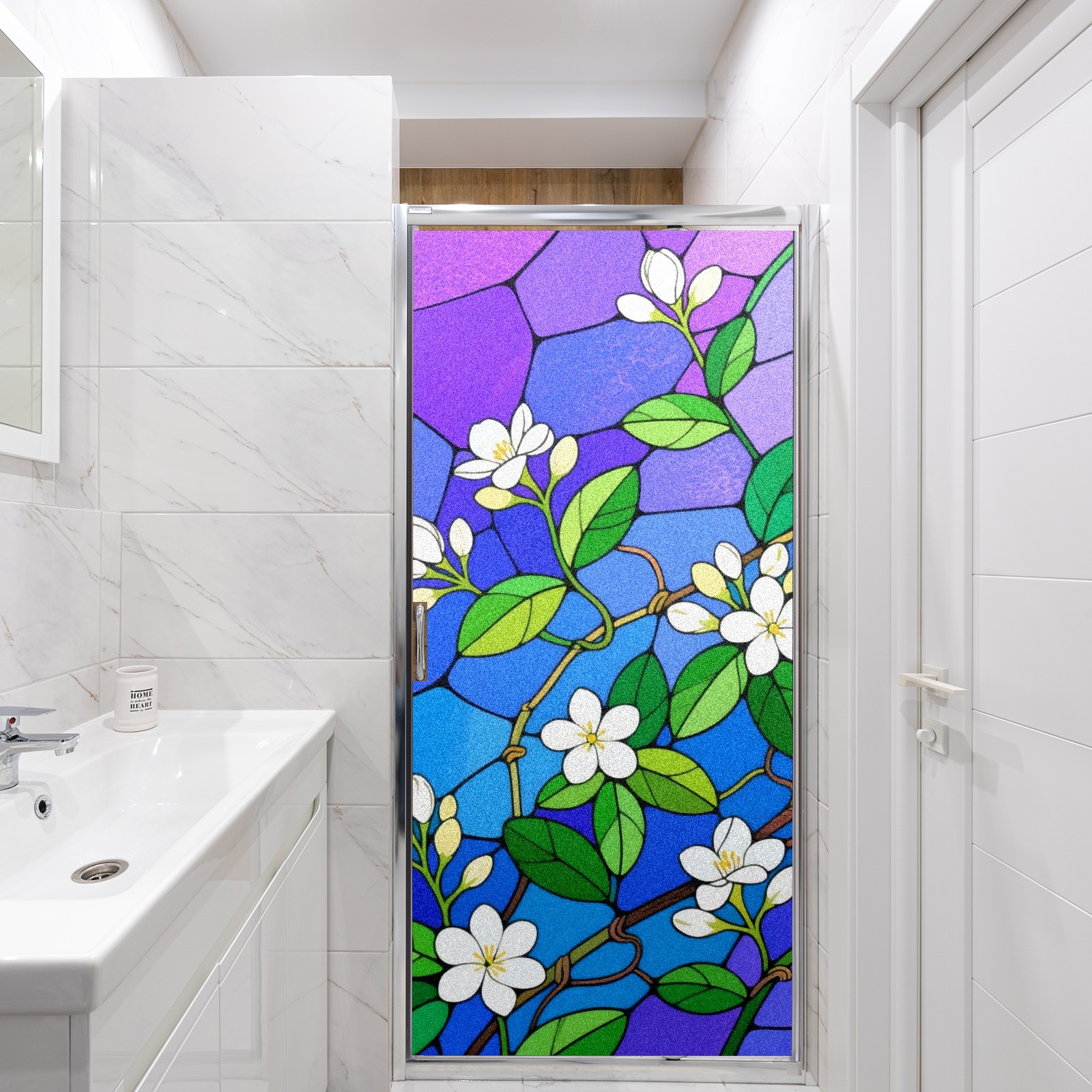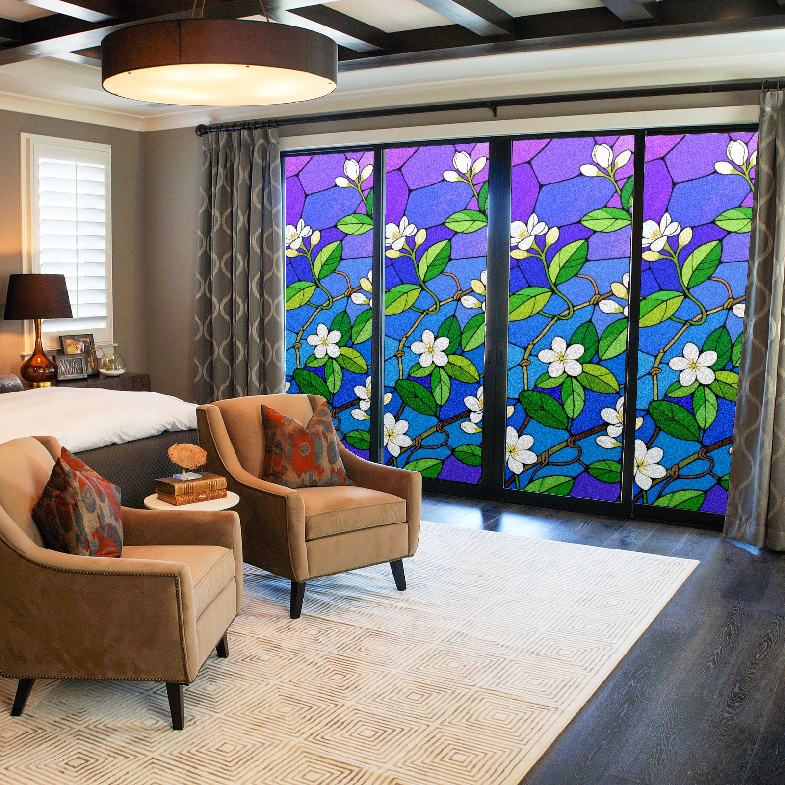 Window Privacy Film Decorative Window Decal Film Removable Static Cling Window Tint for Home Bedroom Sun Blocking Stickers 17.7 x 23.6 Inches Flower
