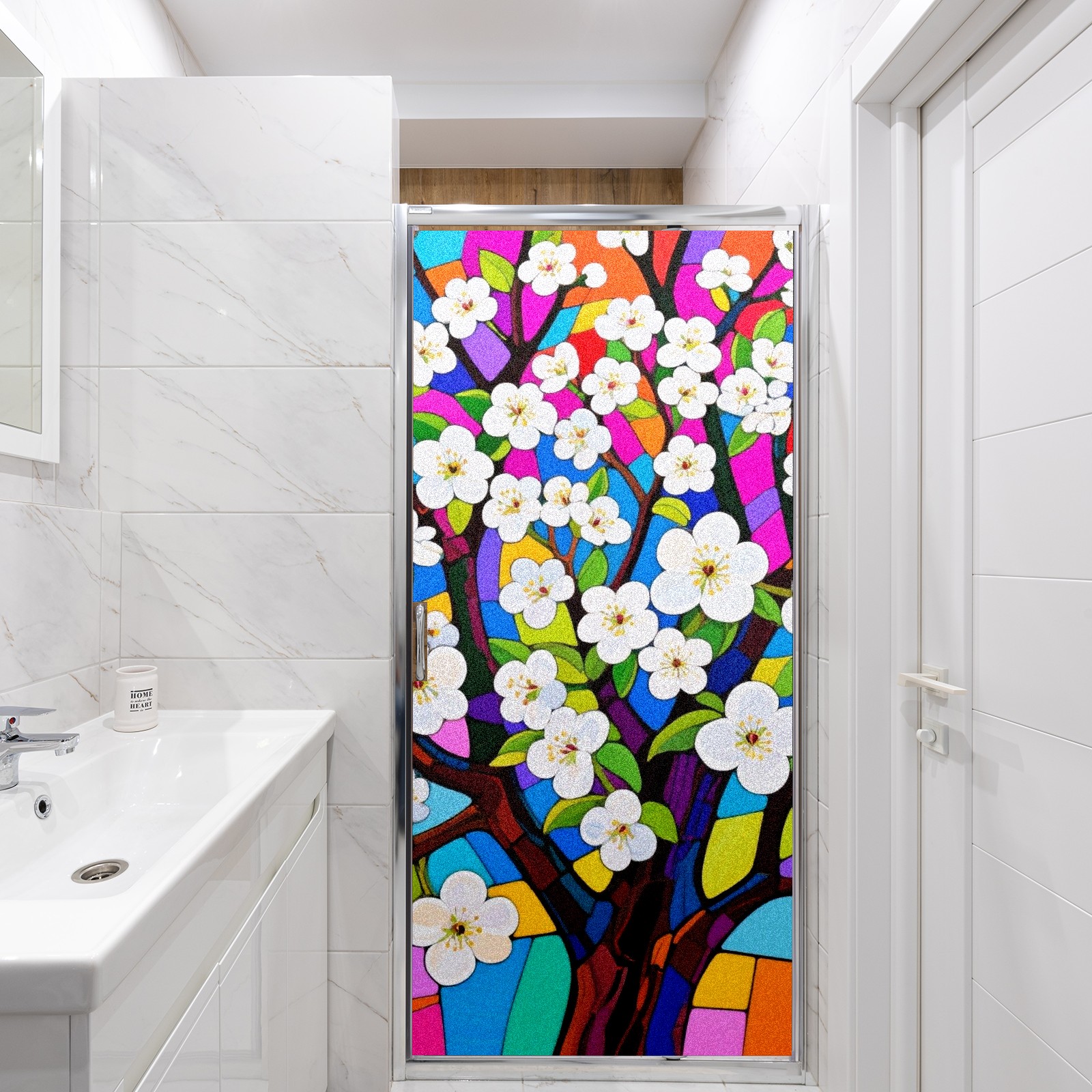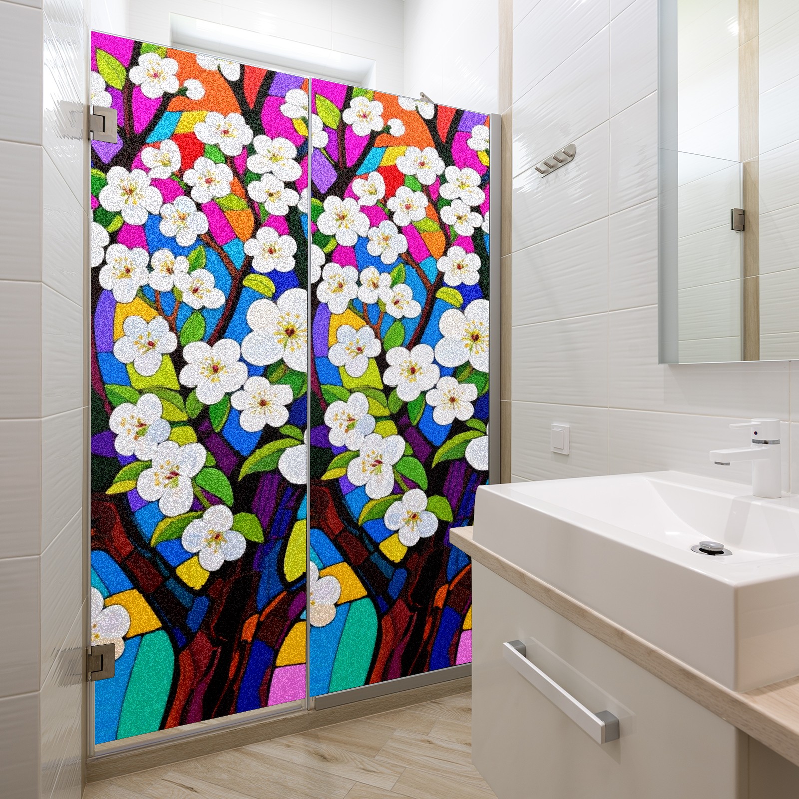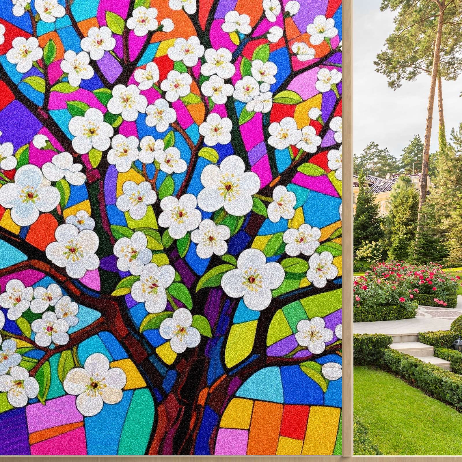 Window Privacy Film Decorative Window Decal Film Removable Static Cling Window Tint for Home Bedroom Sun Blocking Stickers 17.7 x 23.6 Inches Pears Flower Glasses