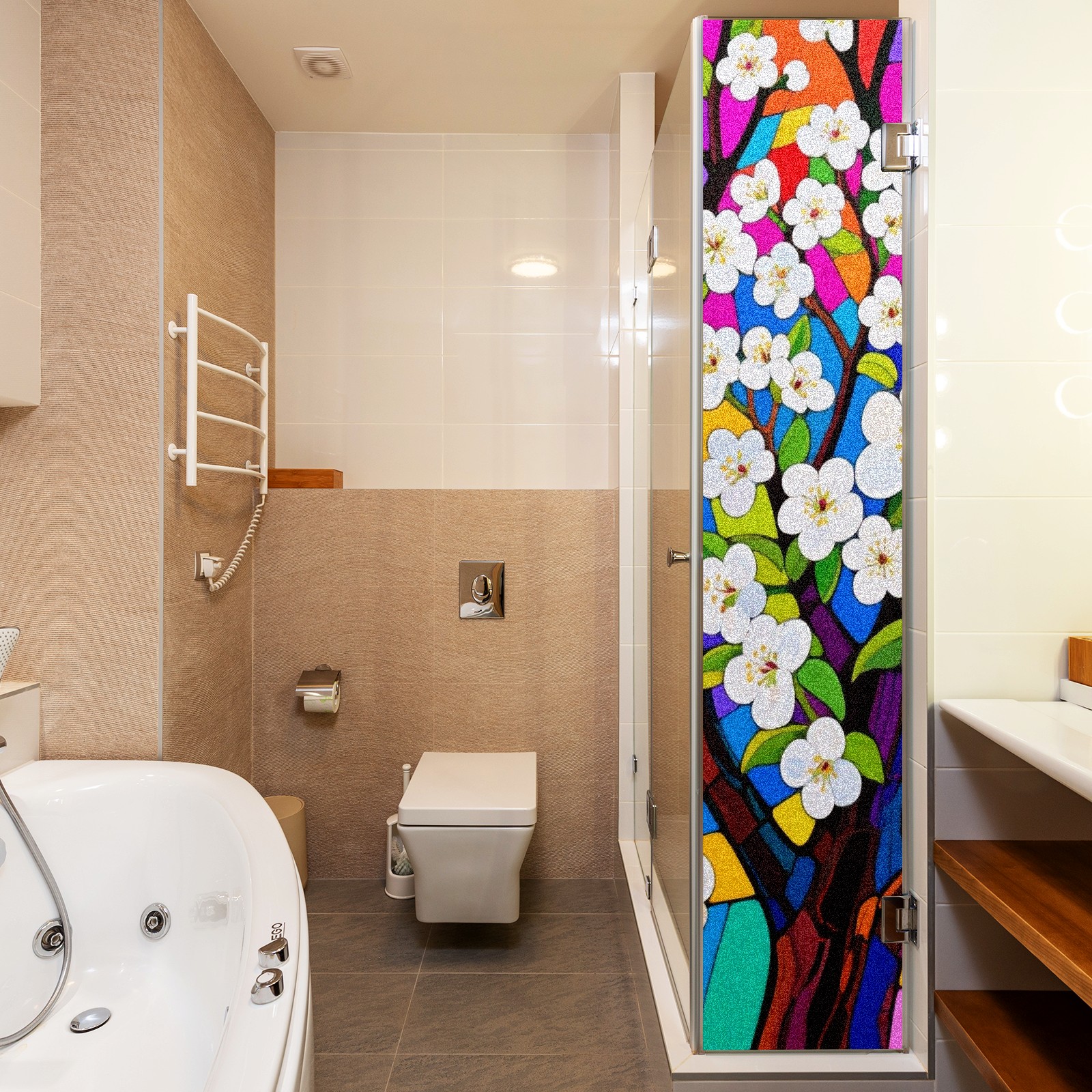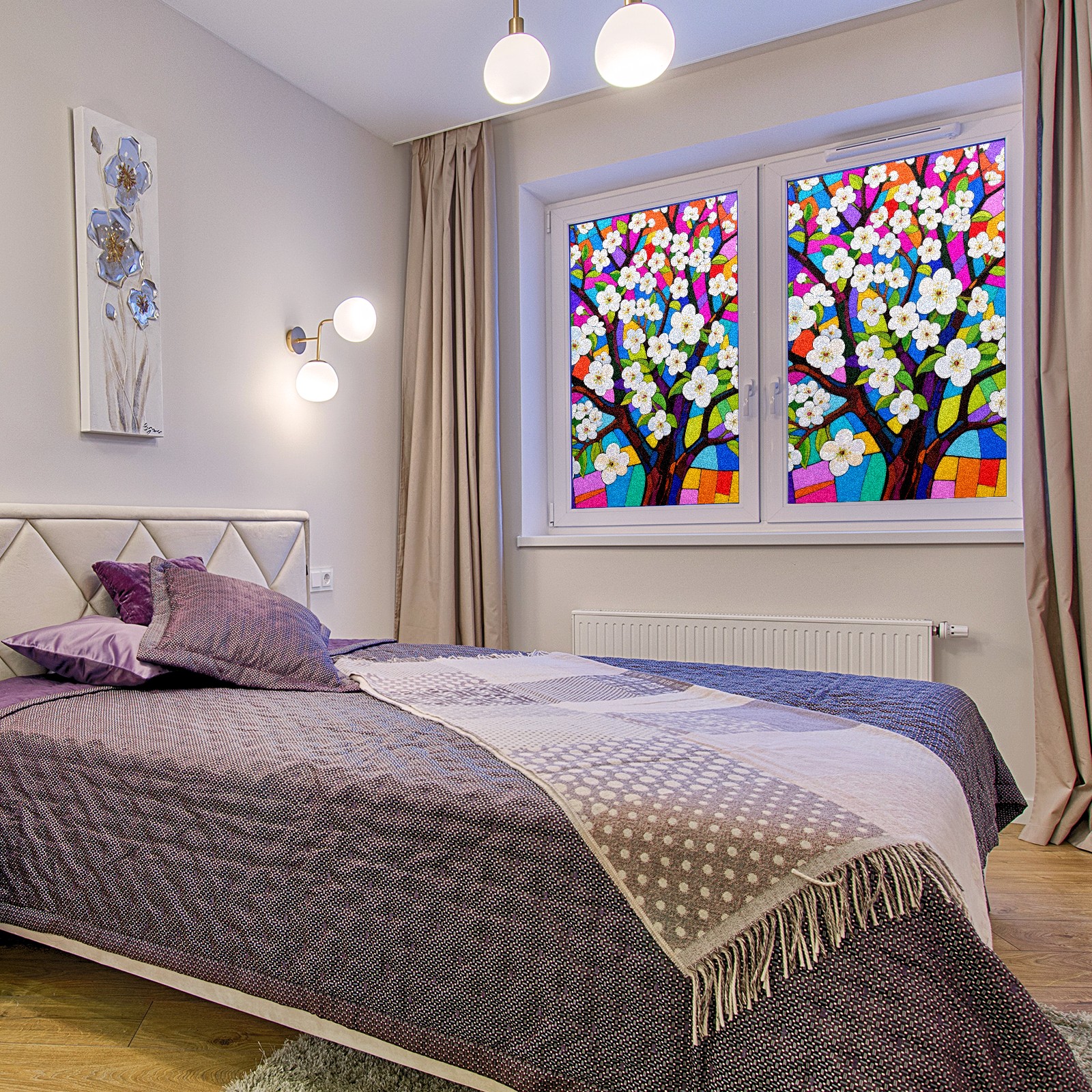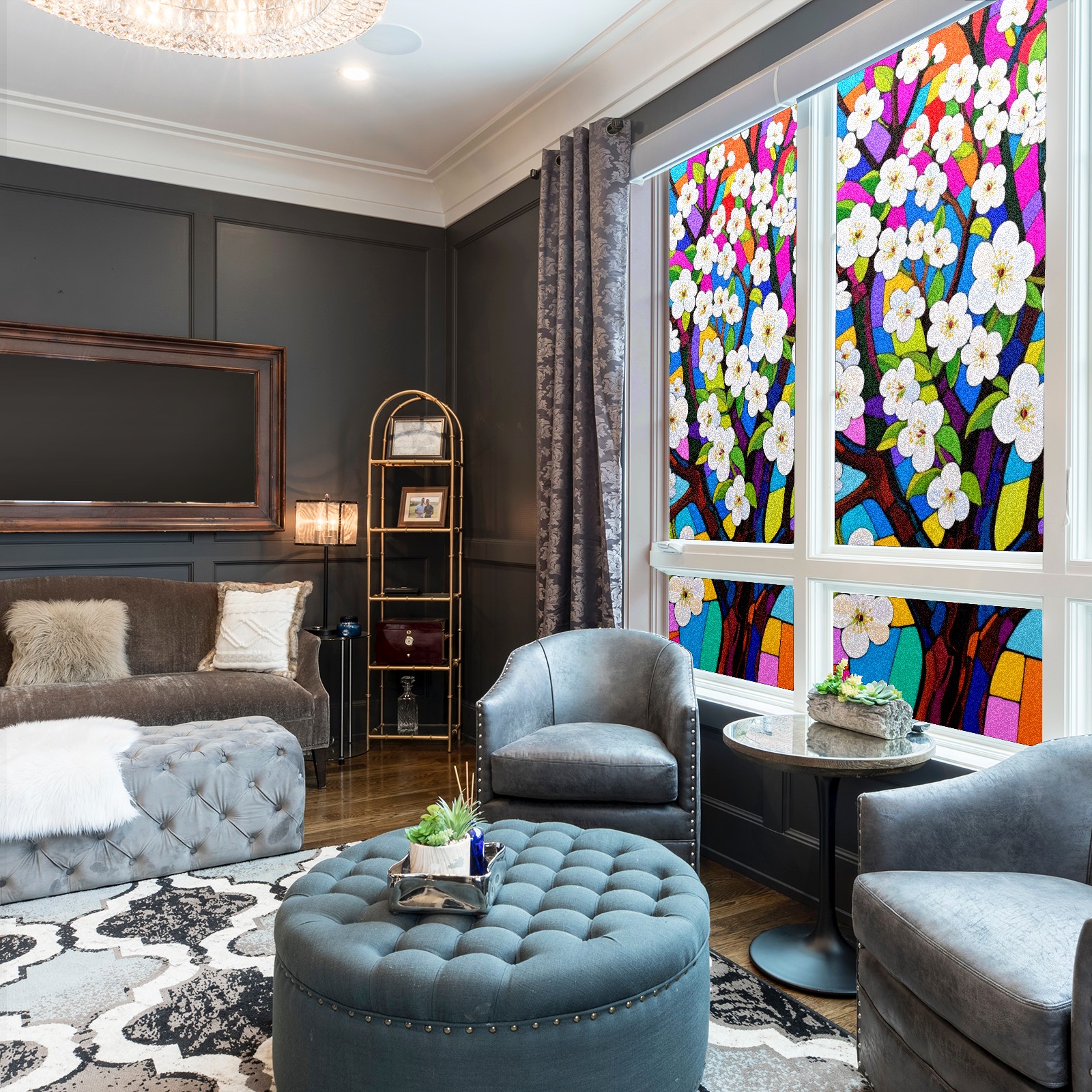 Window Privacy Film Decorative Window Decal Film Removable Static Cling Window Tint for Home Bedroom Sun Blocking Stickers 17.7 x 23.6 Inches Pears Flower Glasses
