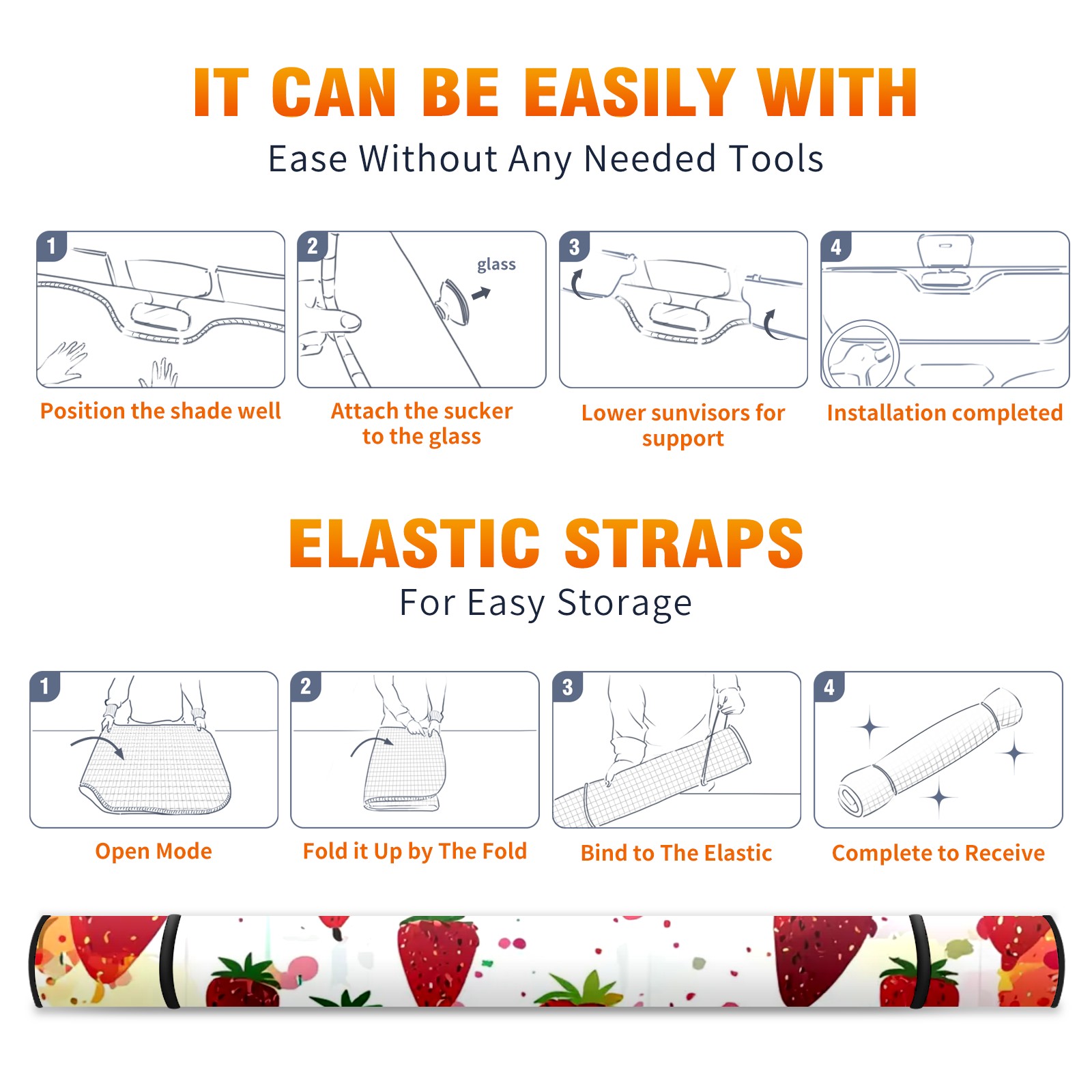 Car Windshield Sun Shade ,car windshield sunshade, Window cover Interior And Sun Protection Storage 草莓2