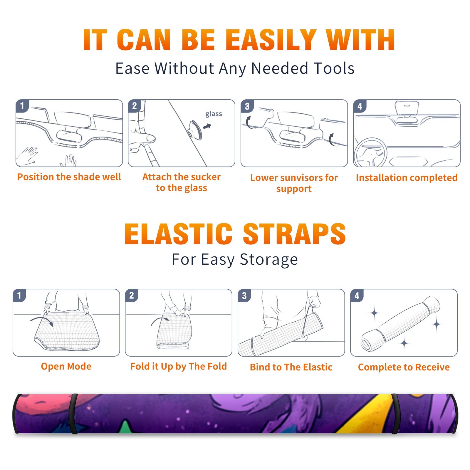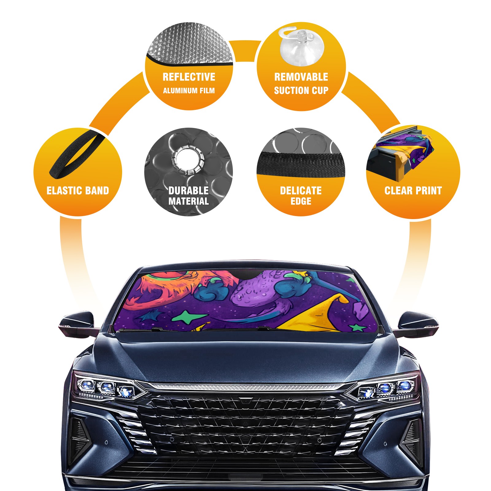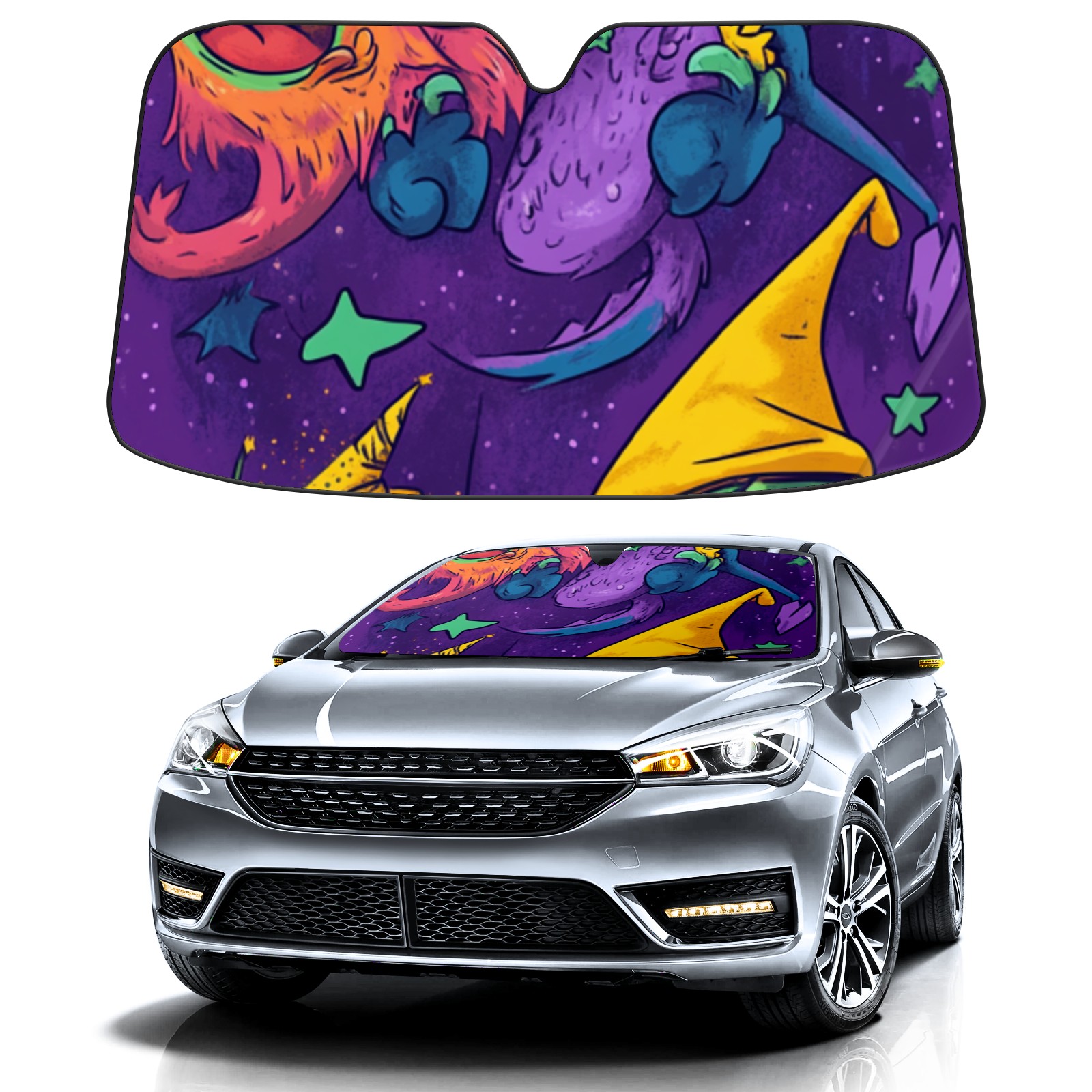 Car Windshield Sun Shade ,car windshield sunshade, Window cover Interior And Sun Protection Storage Colorful Cartoon
