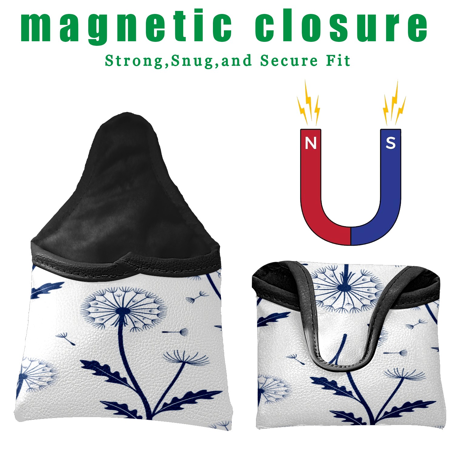 Small Mallet Putter Cover, PU Leather and Waterproof Mallet Putter Cover, Golf Club Protective Case Fits for All Brand Putter Golf Clubs for Men Women Flower