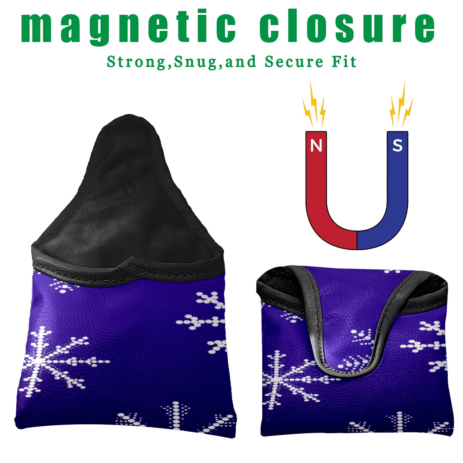 Small Mallet Putter Cover, PU Leather and Waterproof Mallet Putter Cover, Golf Club Protective Case Fits for All Brand Putter Golf Clubs for Men Women Snowflakes