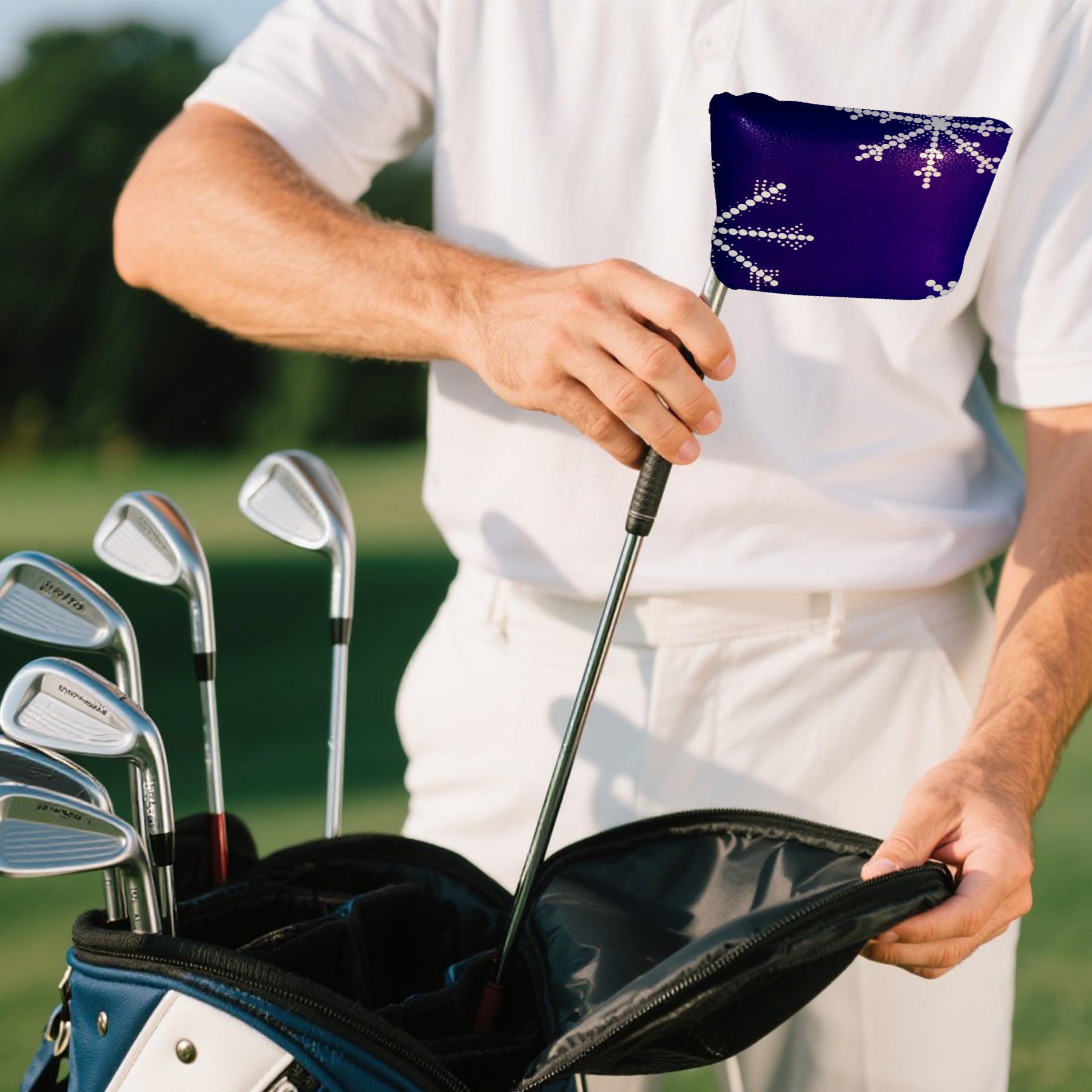 <p>Our mallet putter cover will enhance your golfing experience. It is a high-quality product designed for precision and style. Made from durable leather, this putter head cover ensures long-lasting performance even in harsh conditions, while preventing scratches and abrasions. The soft plush lining provides light cushioning to protect the putter face from bumps and scrapes during transportation or storage.</p> <p>Additionally, our club cover features a unique closure technology that securely holds the club while allowing for easy access. Its scratch and abrasion-resistant shell can withstand frequent use, making it ideal for golfers who prioritize reliability. This club cover combines durability, convenience, and sophistication – you deserve it!</p>