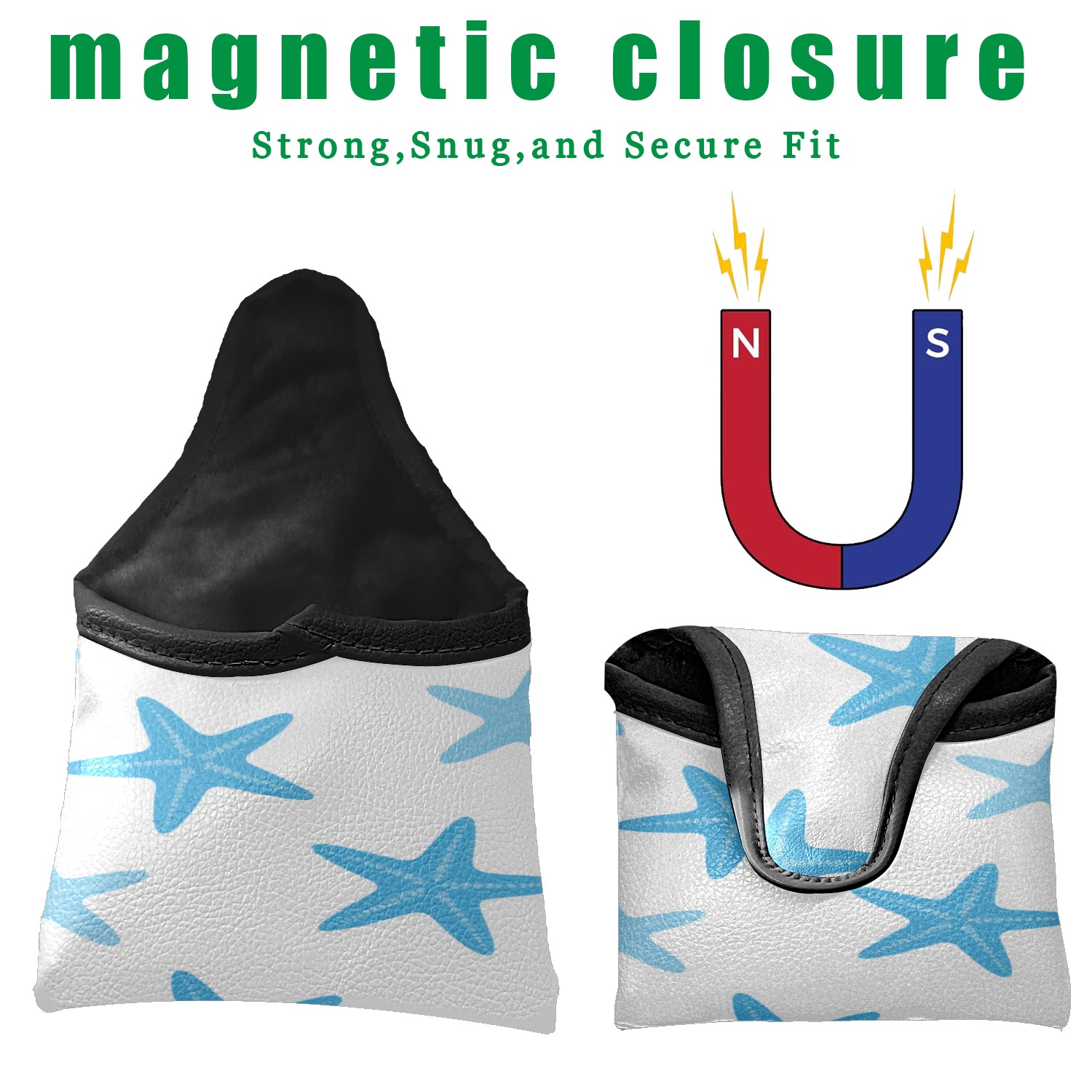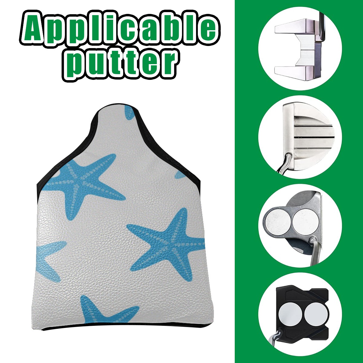 Small Mallet Putter Cover, PU Leather and Waterproof Mallet Putter Cover, Golf Club Protective Case Fits for All Brand Putter Golf Clubs for Men Women Blue Star