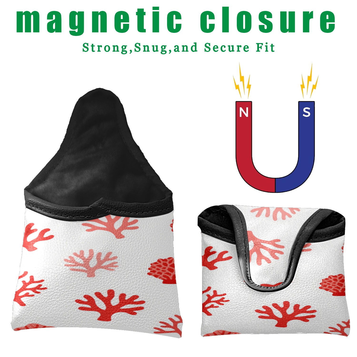 Small Mallet Putter Cover, PU Leather and Waterproof Mallet Putter Cover, Golf Club Protective Case Fits for All Brand Putter Golf Clubs for Men Women Red Coral