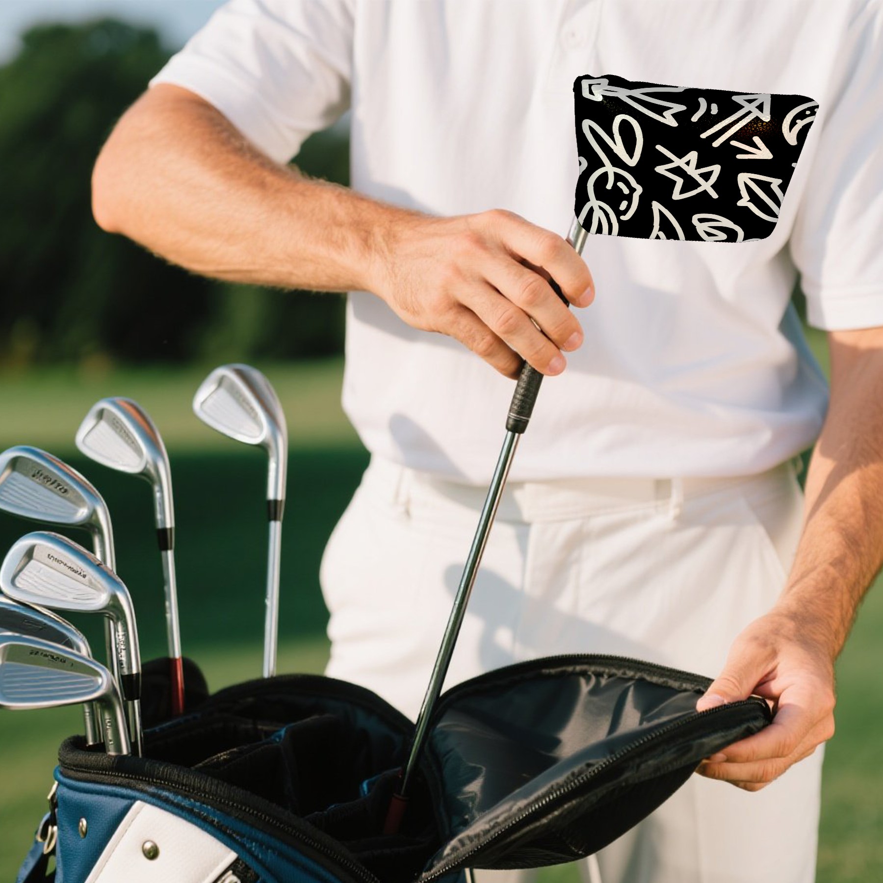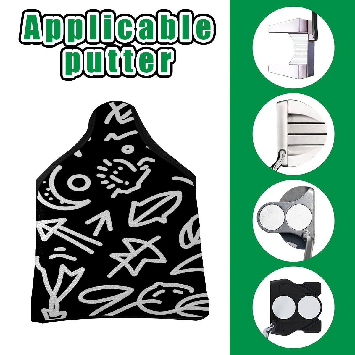 Small Mallet Putter Cover, PU Leather and Waterproof Mallet Putter Cover, Golf Club Protective Case Fits for All Brand Putter Golf Clubs for Men Women Cartoon Doodle