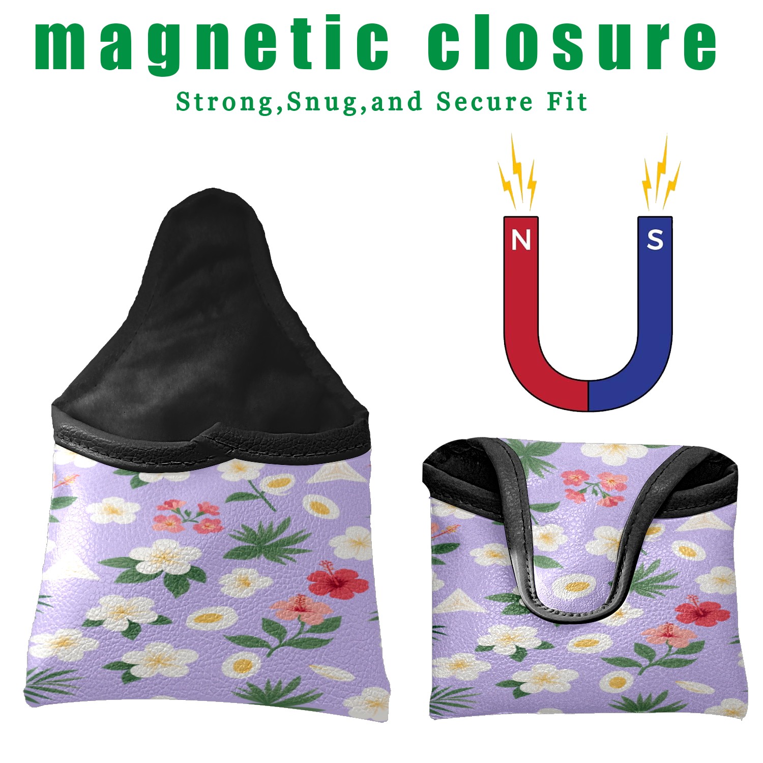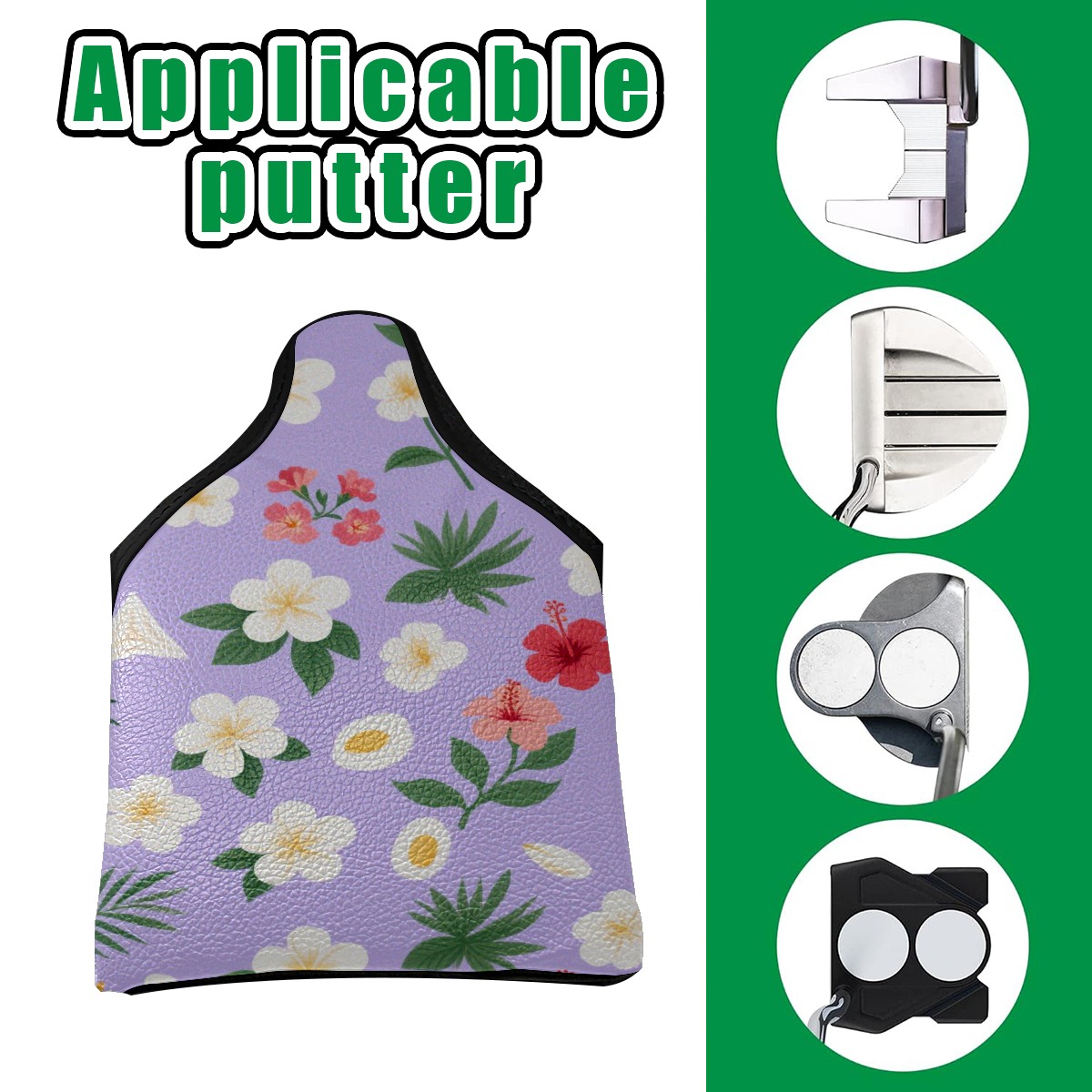 Small Mallet Putter Cover, PU Leather and Waterproof Mallet Putter Cover, Golf Club Protective Case Fits for All Brand Putter Golf Clubs for Men Women Flower