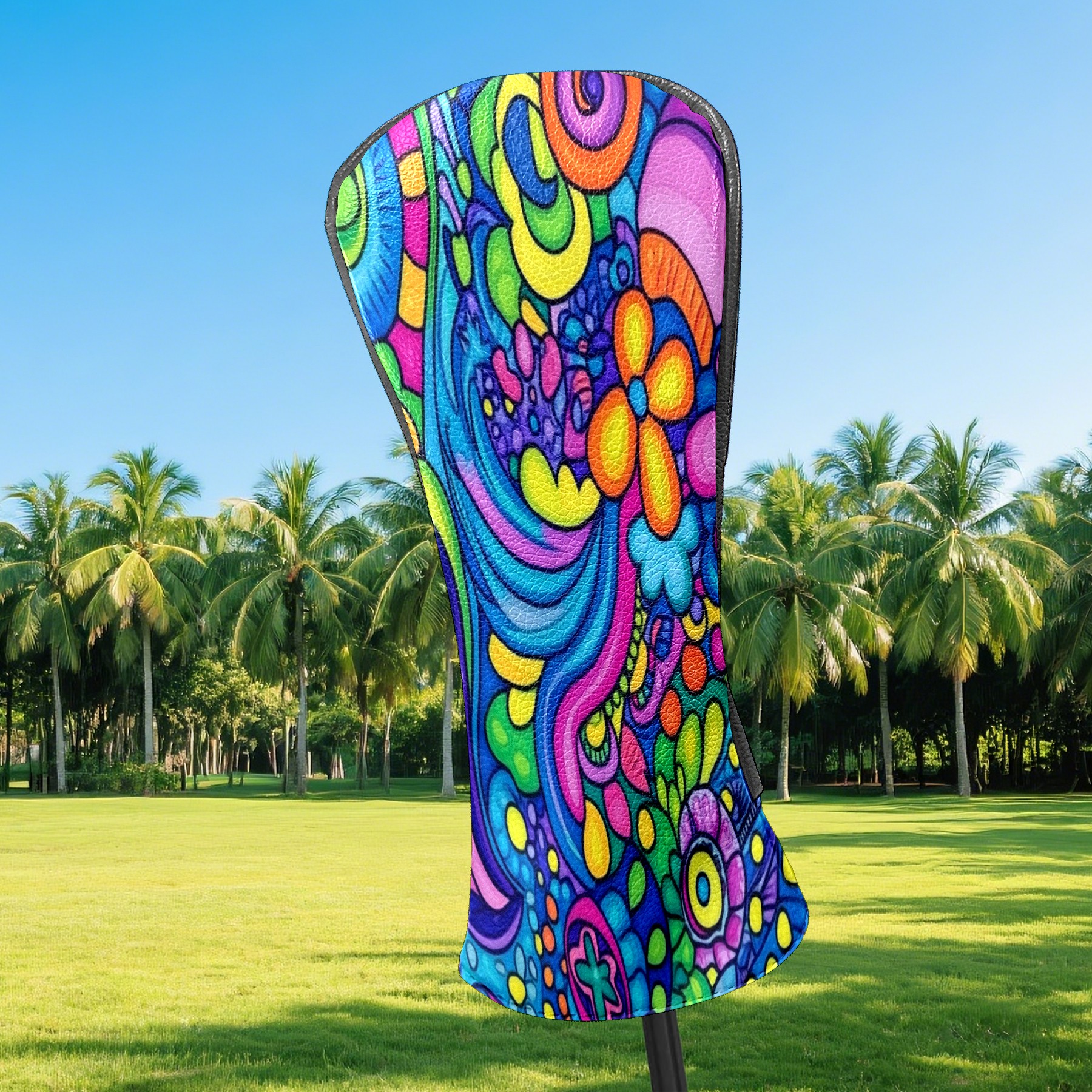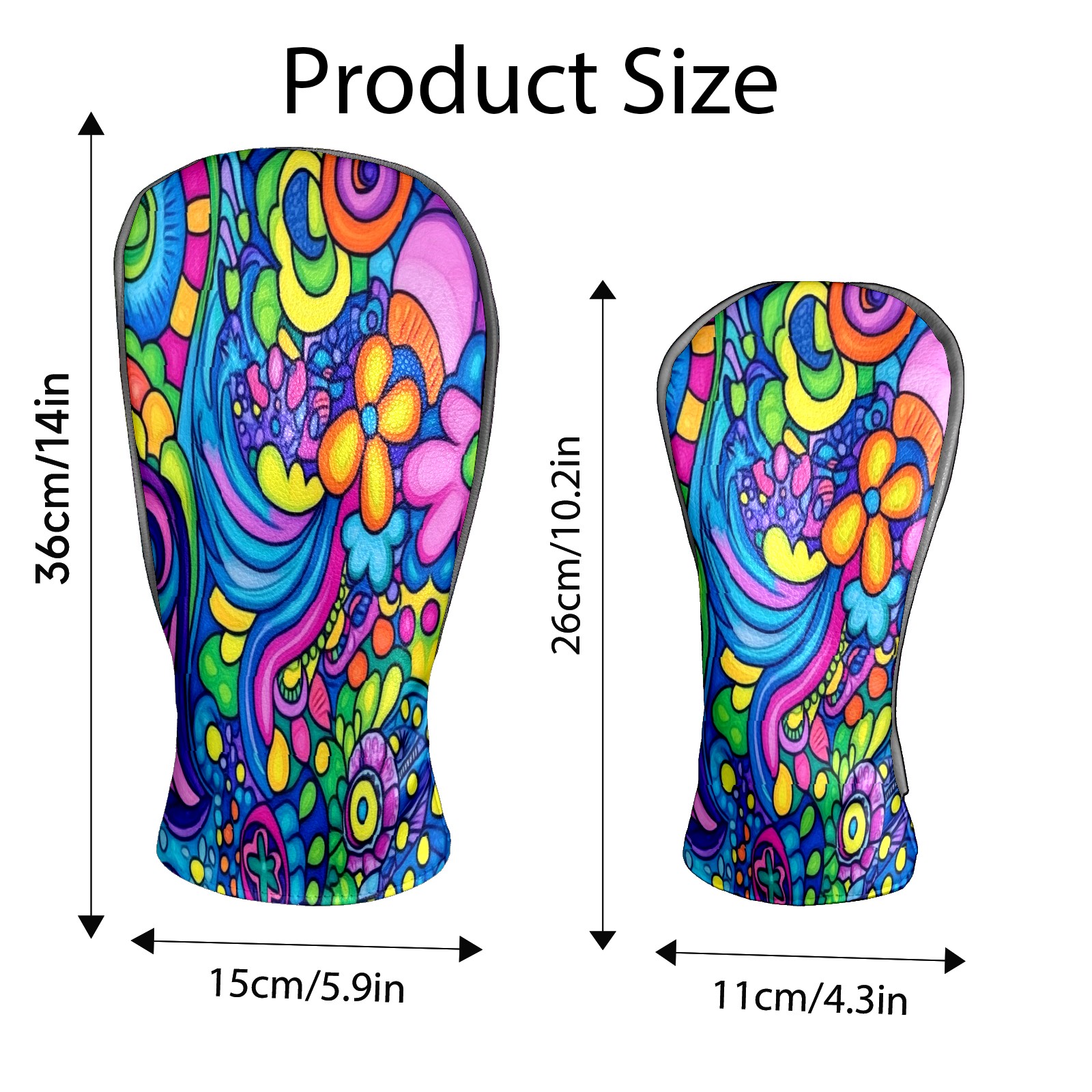Golf Club Head Covers for Driver and Fairway Woods, Waterproof Leather Headcovers for Golf Clubs, Ideal Golf Accessories Gift for Men Women (Psychedelic Pattern)
