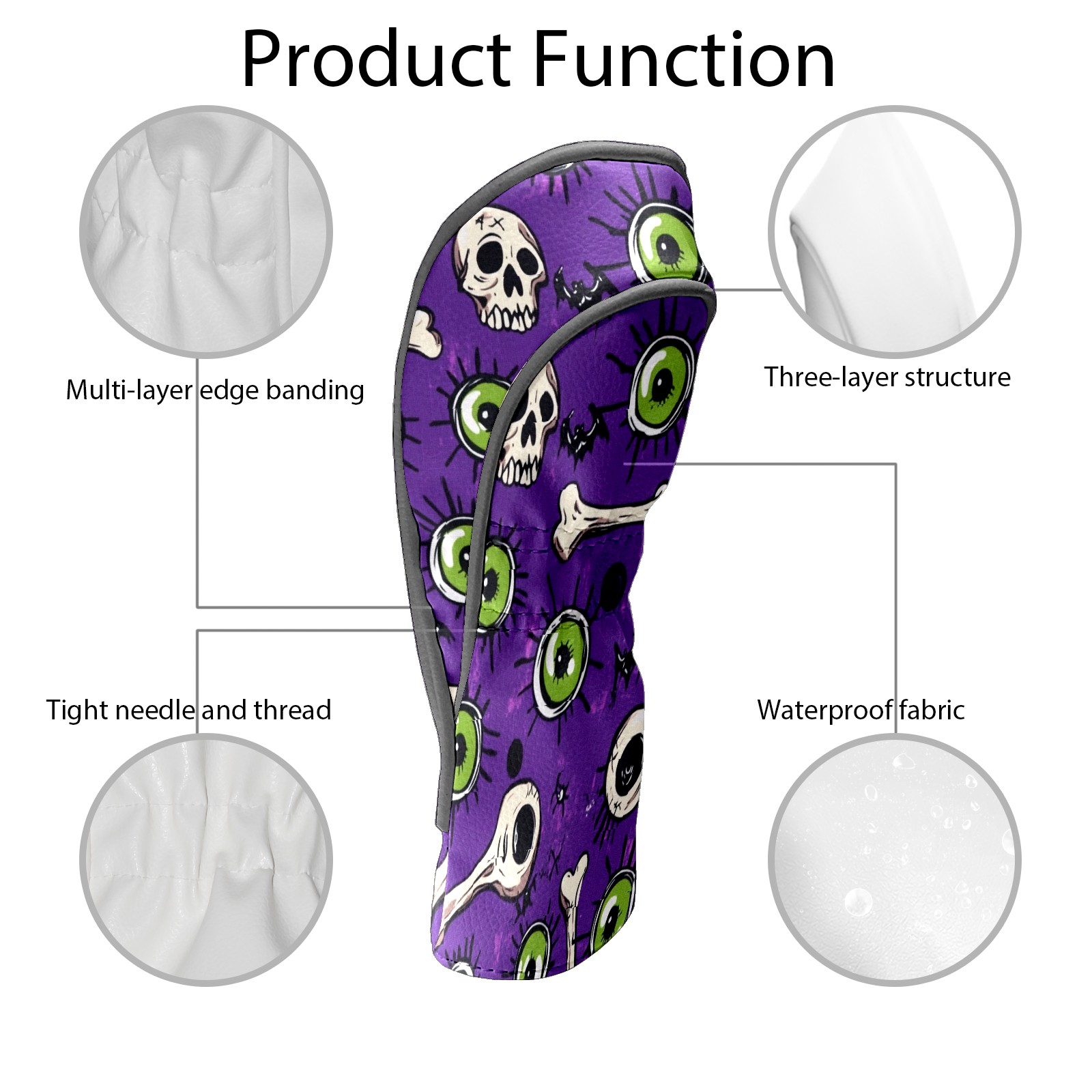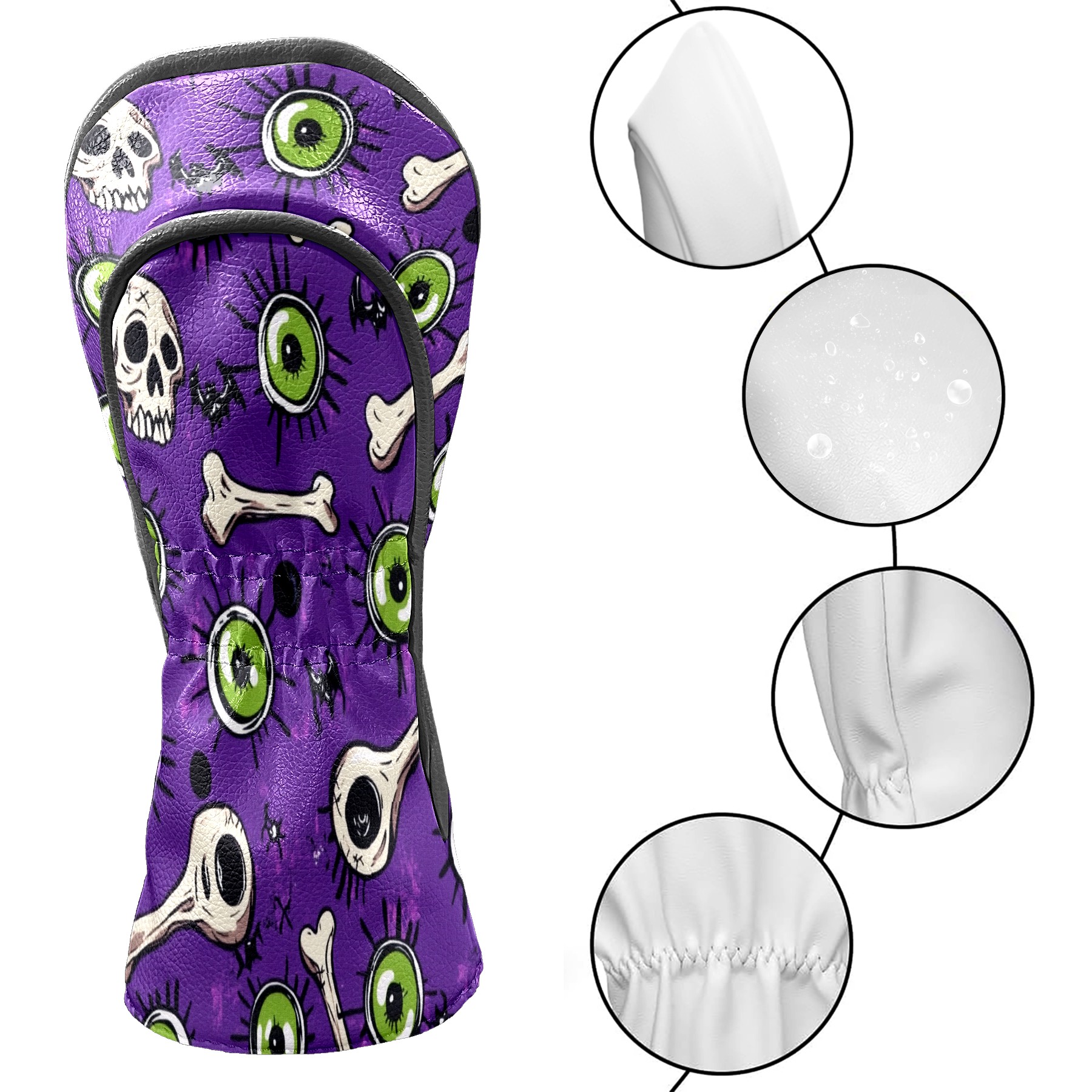 Golf Club Head Covers for Driver and Fairway Woods, Waterproof Leather Headcovers for Golf Clubs, Ideal Golf Accessories Gift for Men Women (Eyes And Bones)
