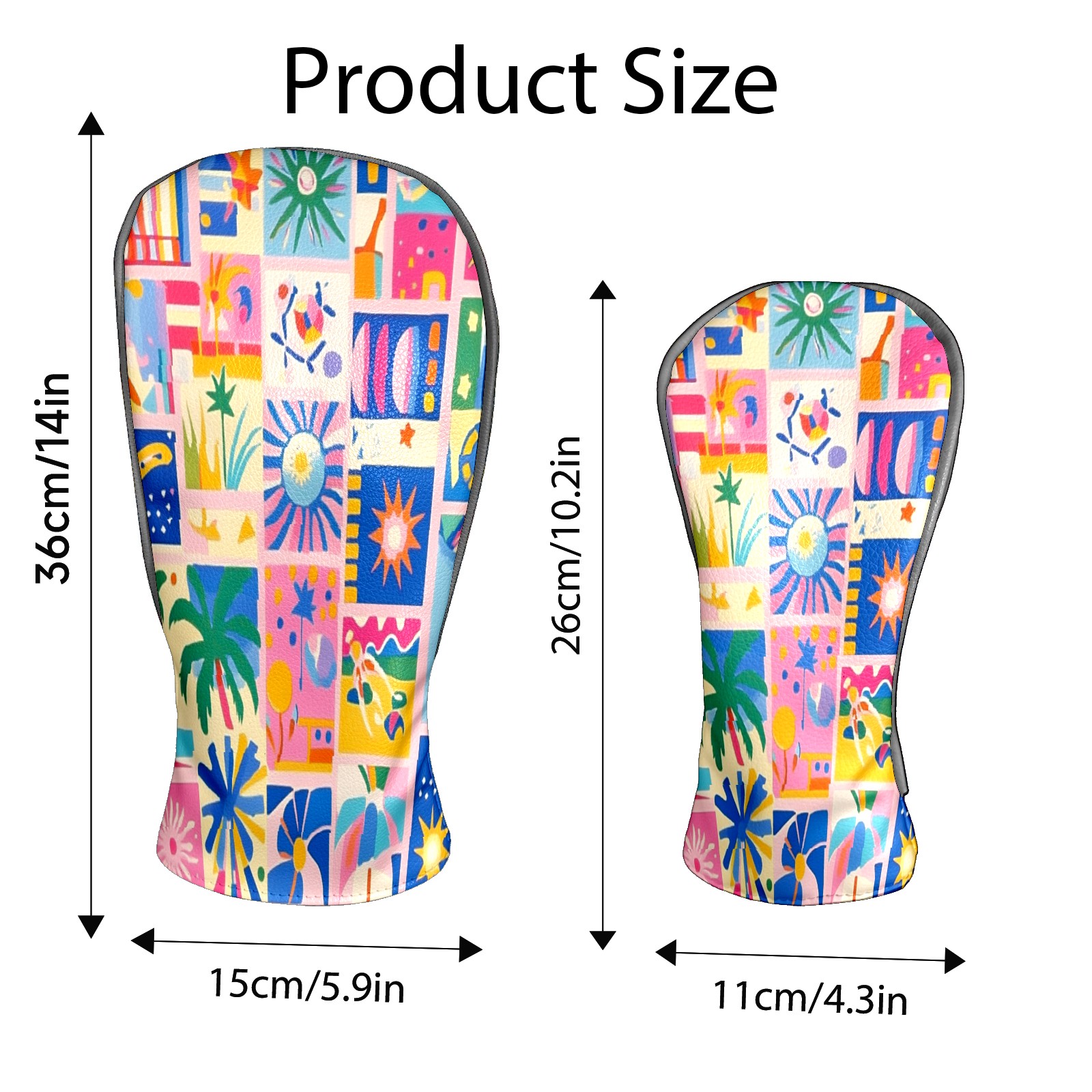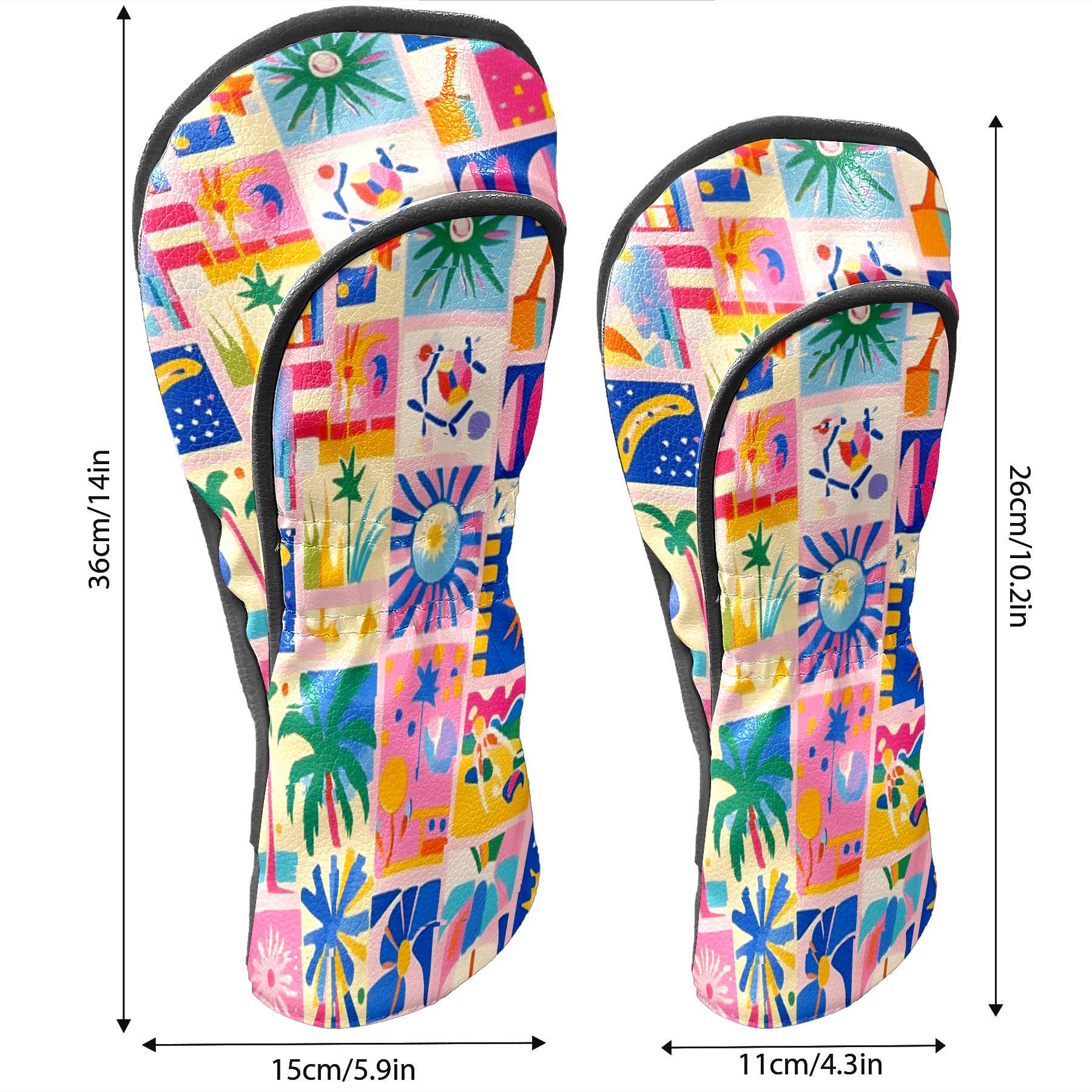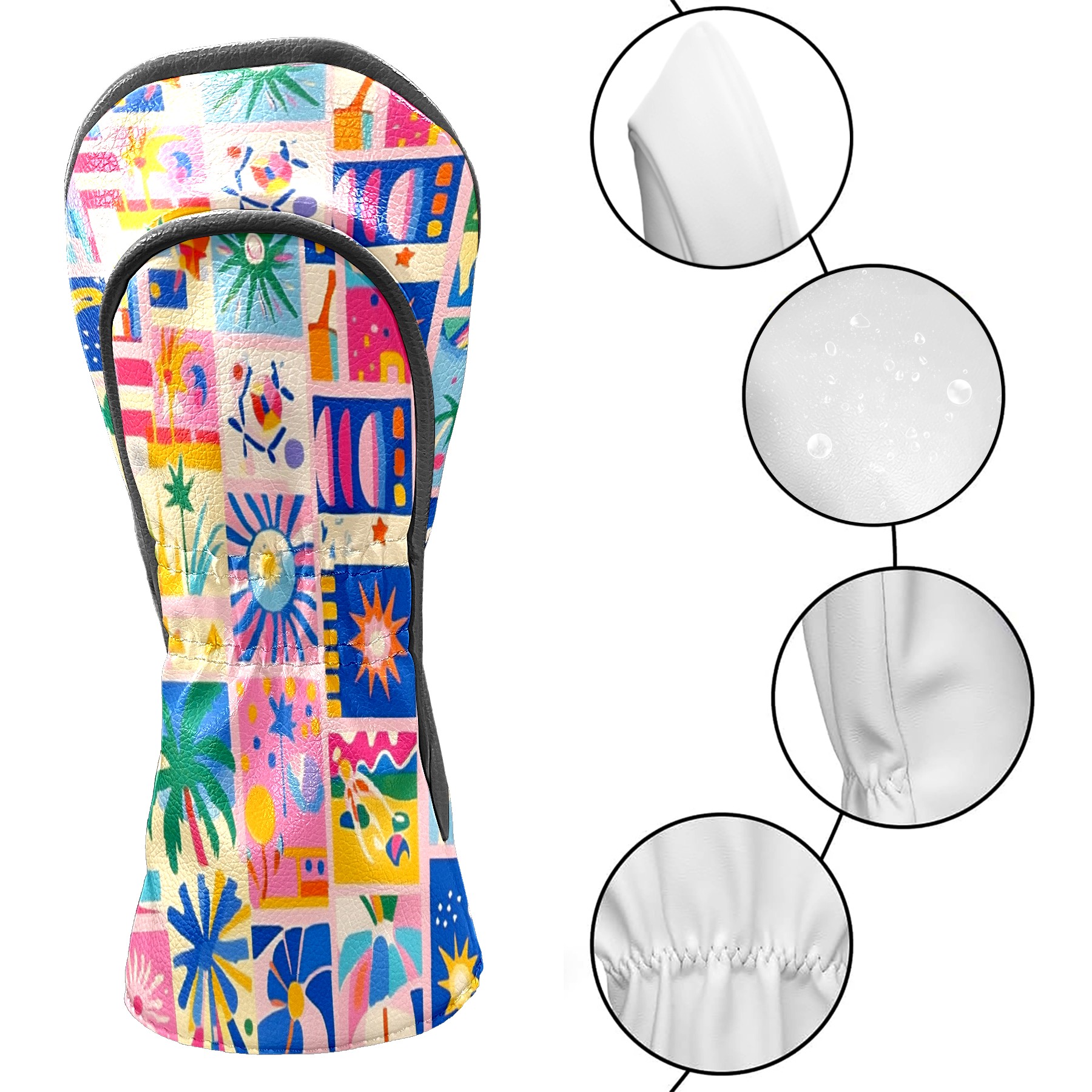 Golf Club Head Covers for Driver and Fairway Woods, Waterproof Leather Headcovers for Golf Clubs, Ideal Golf Accessories Gift for Men Women (Vibrant Pattern)