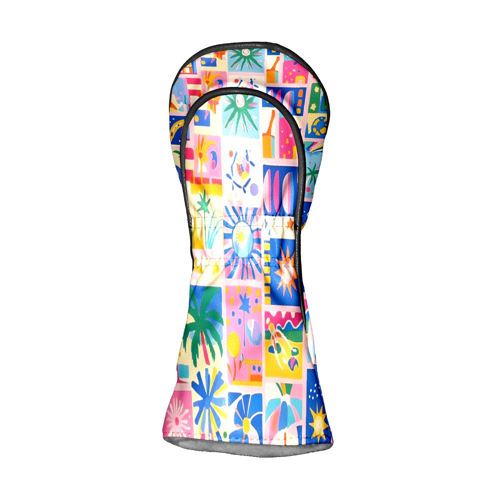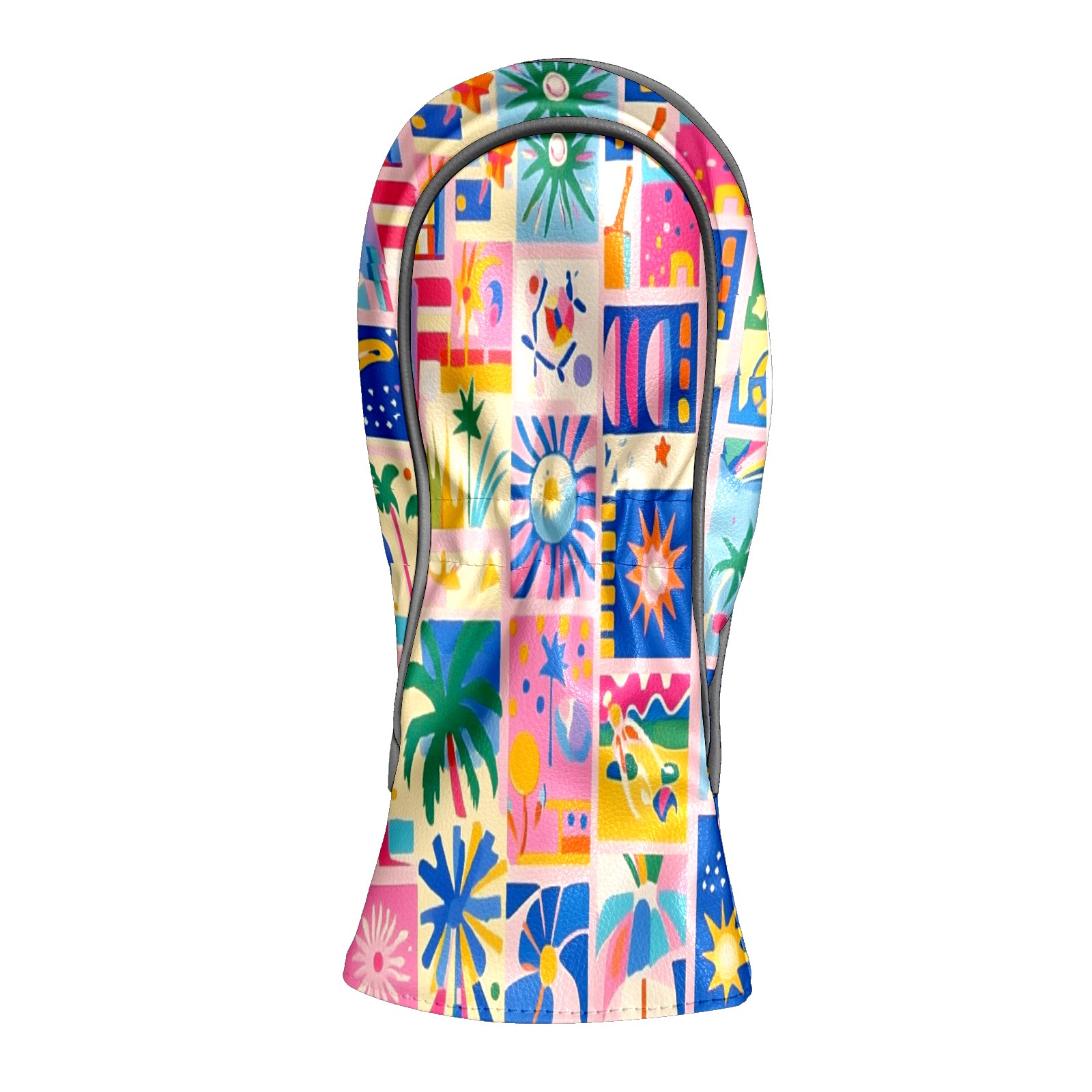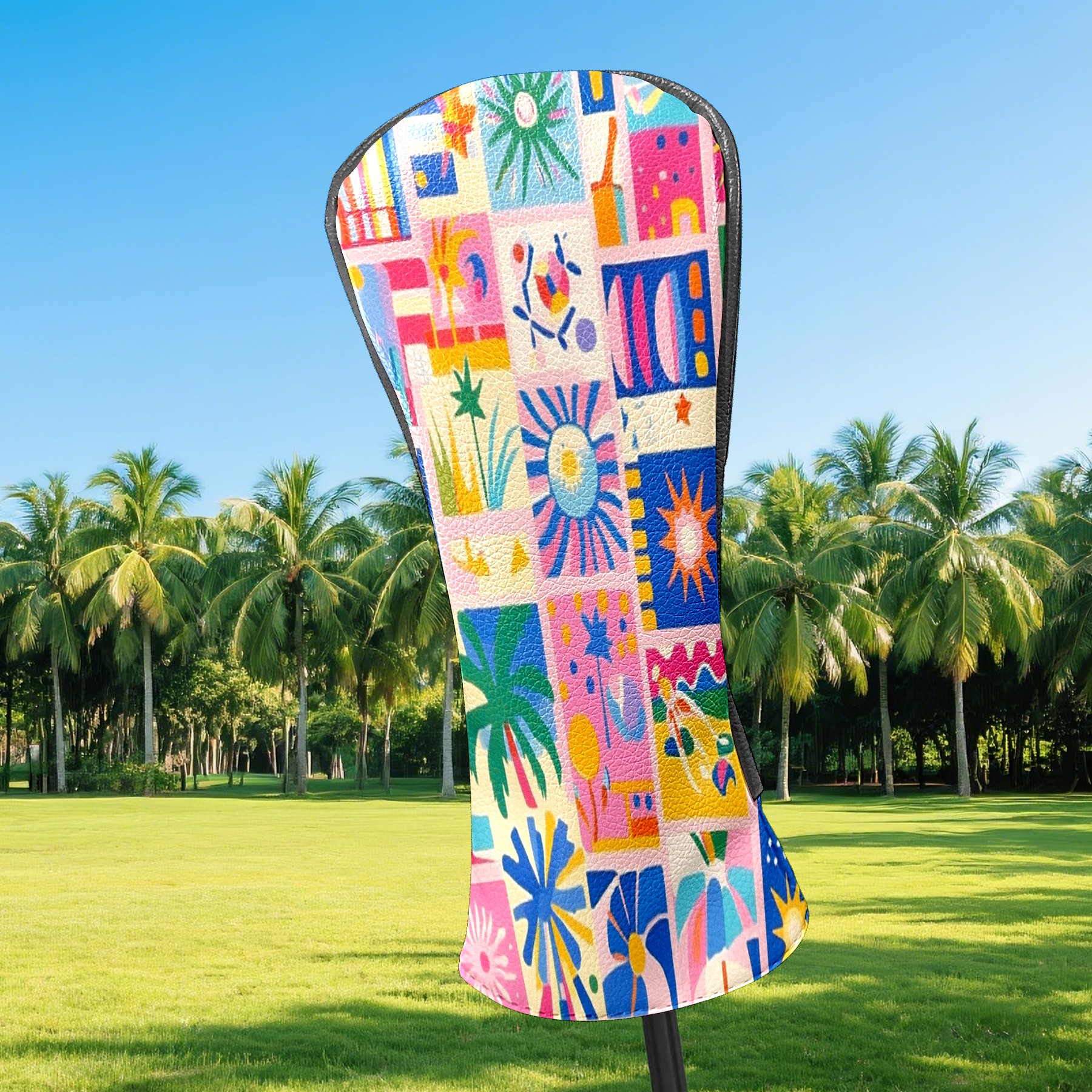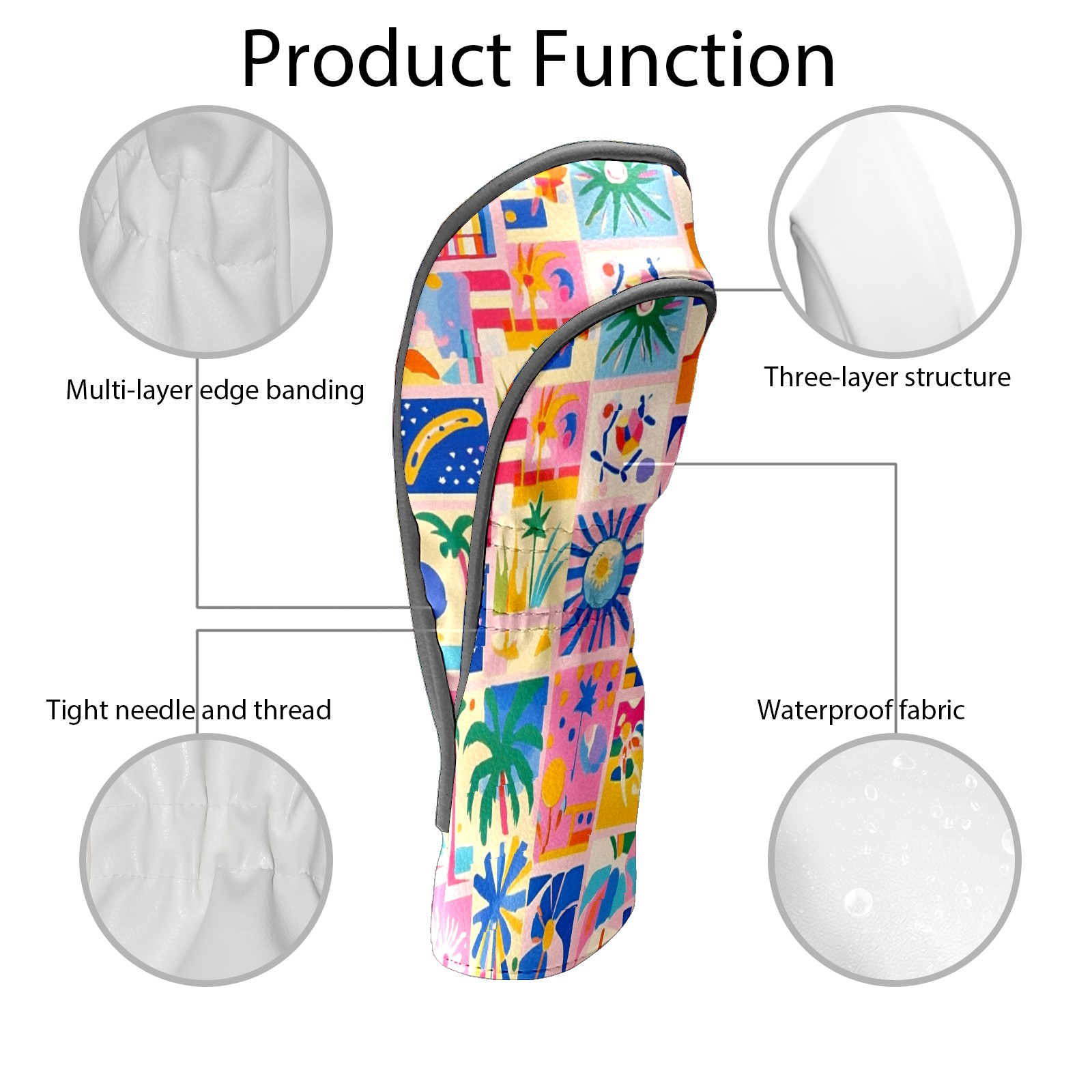 Golf Club Head Covers for Driver and Fairway Woods, Waterproof Leather Headcovers for Golf Clubs, Ideal Golf Accessories Gift for Men Women (Vibrant Pattern)