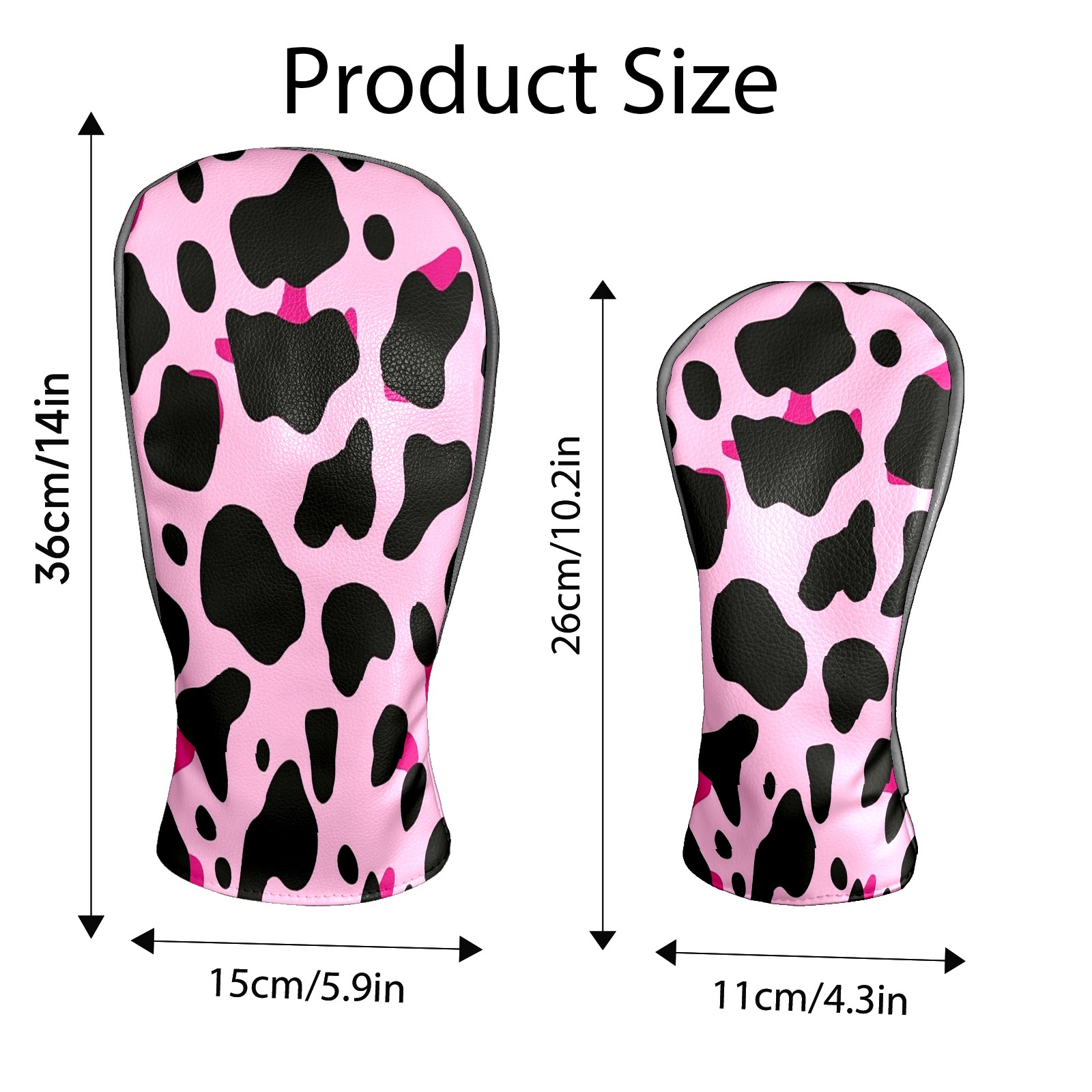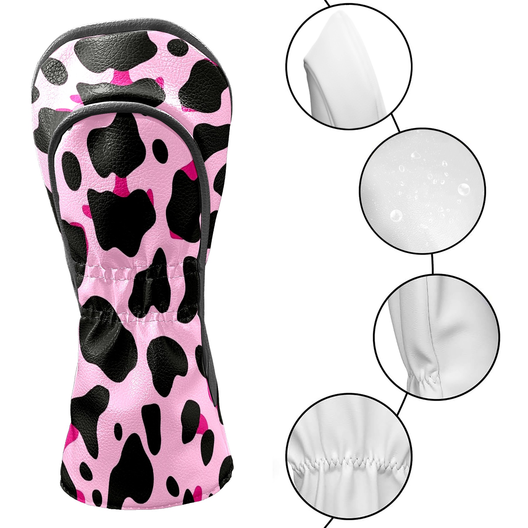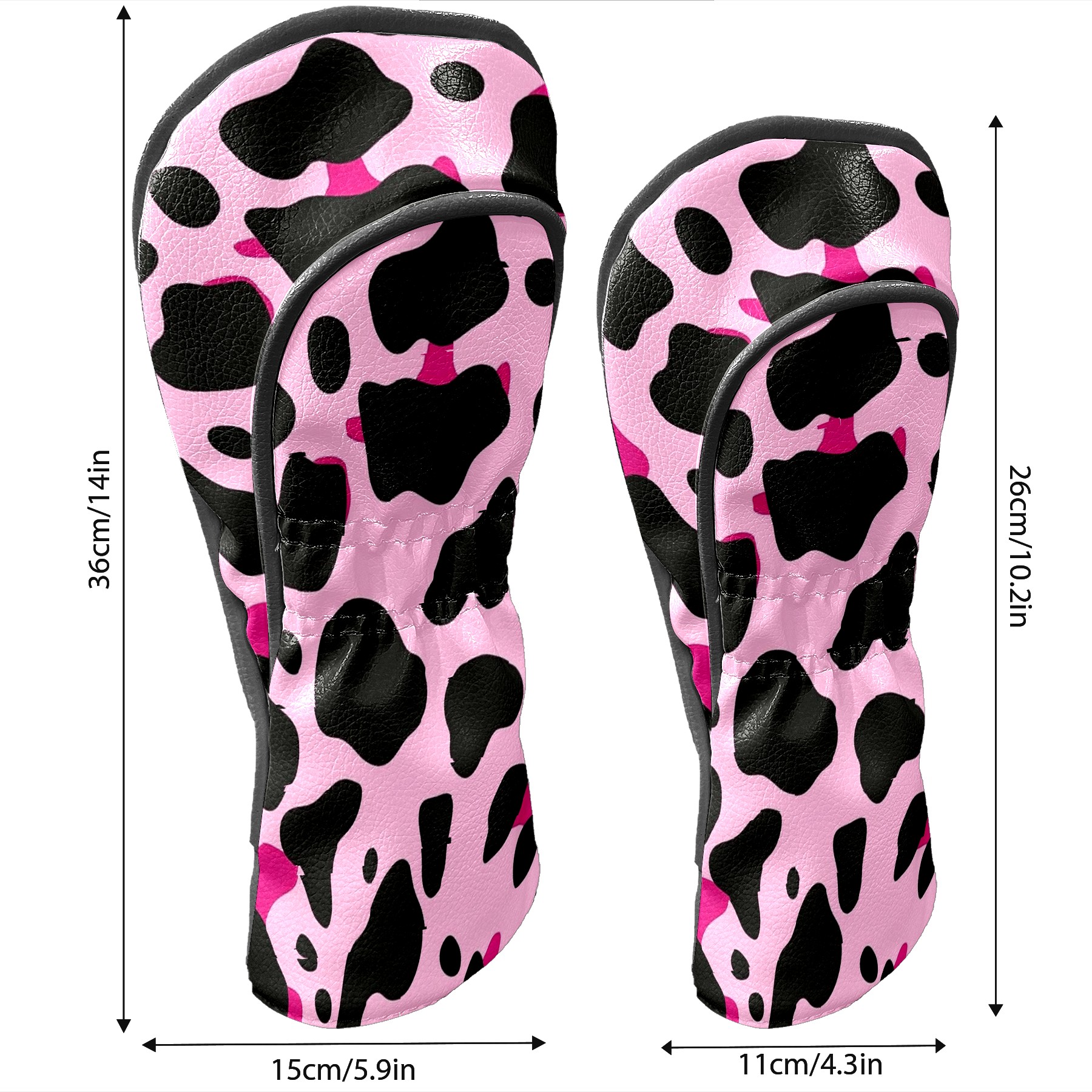 Golf Club Head Covers for Driver and Fairway Woods, Waterproof Leather Headcovers for Golf Clubs, Ideal Golf Accessories Gift for Men Women (Pink And Black Cow Print Pattern)