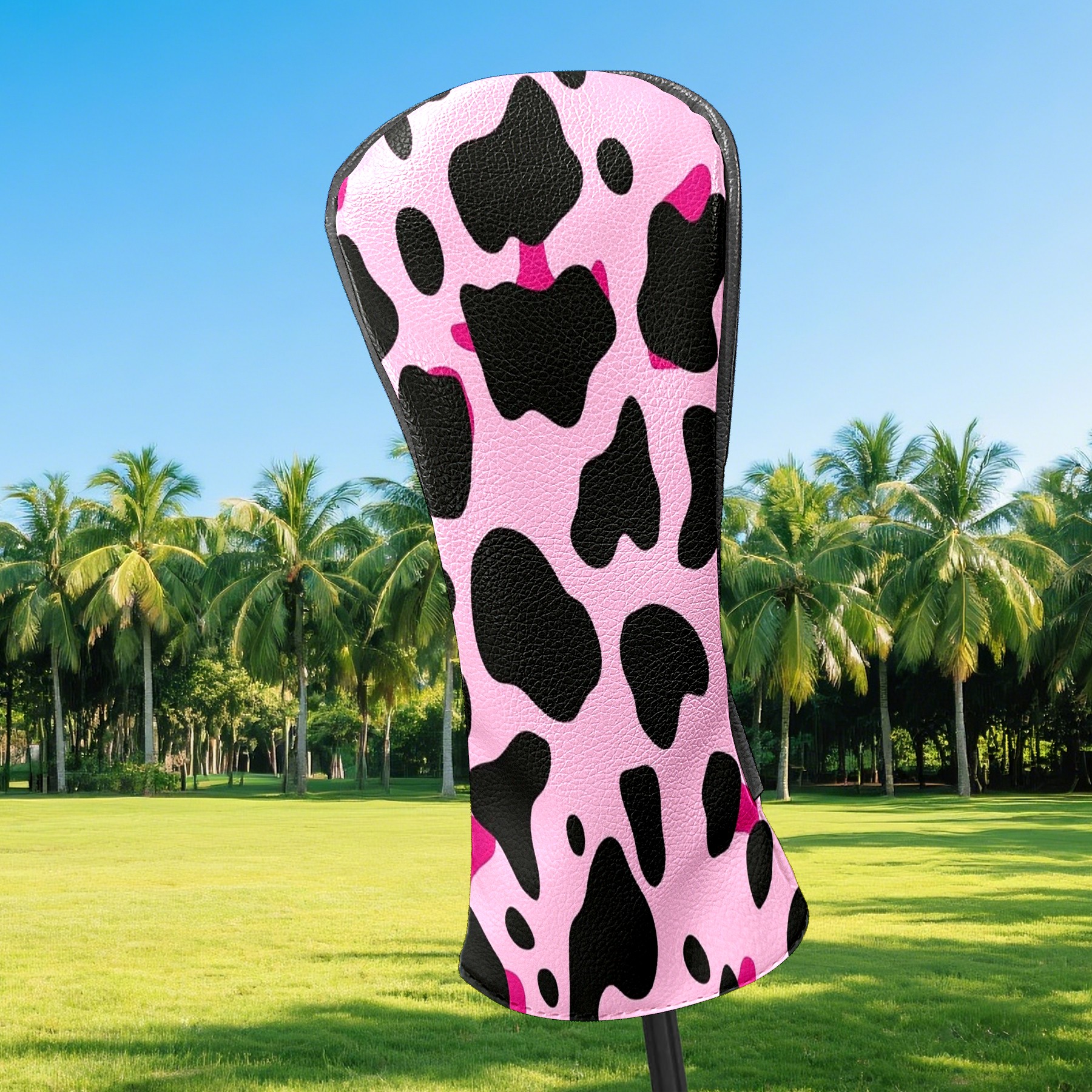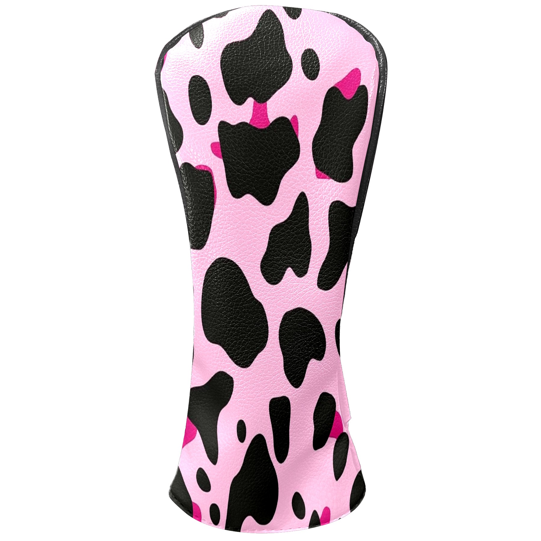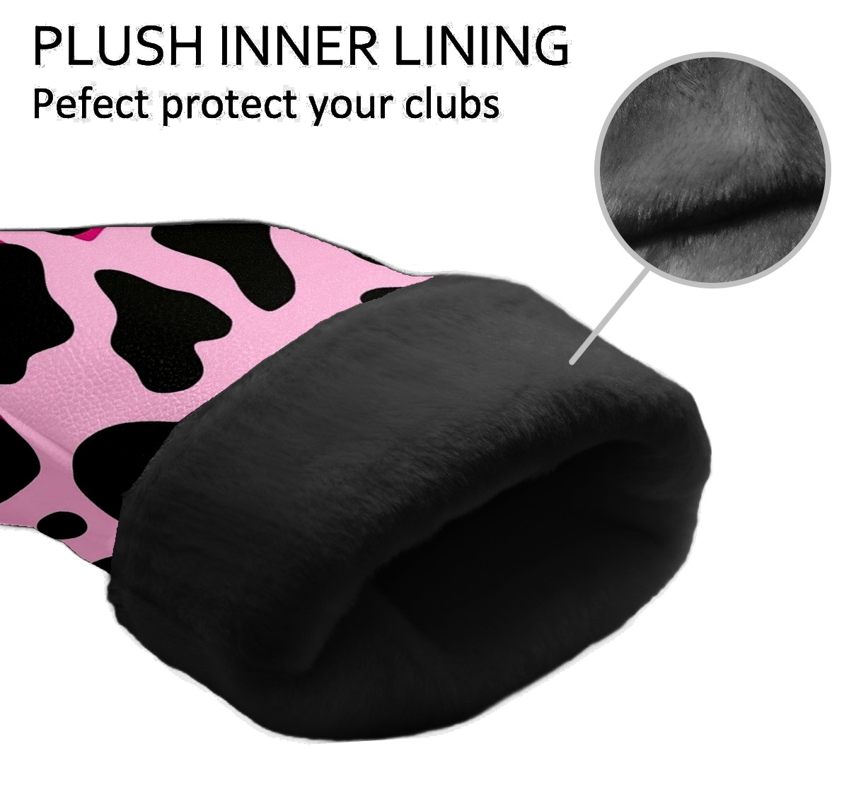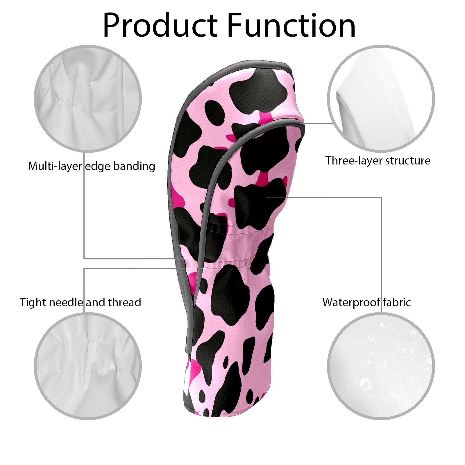 Golf Club Head Covers for Driver and Fairway Woods, Waterproof Leather Headcovers for Golf Clubs, Ideal Golf Accessories Gift for Men Women (Pink And Black Cow Print Pattern)