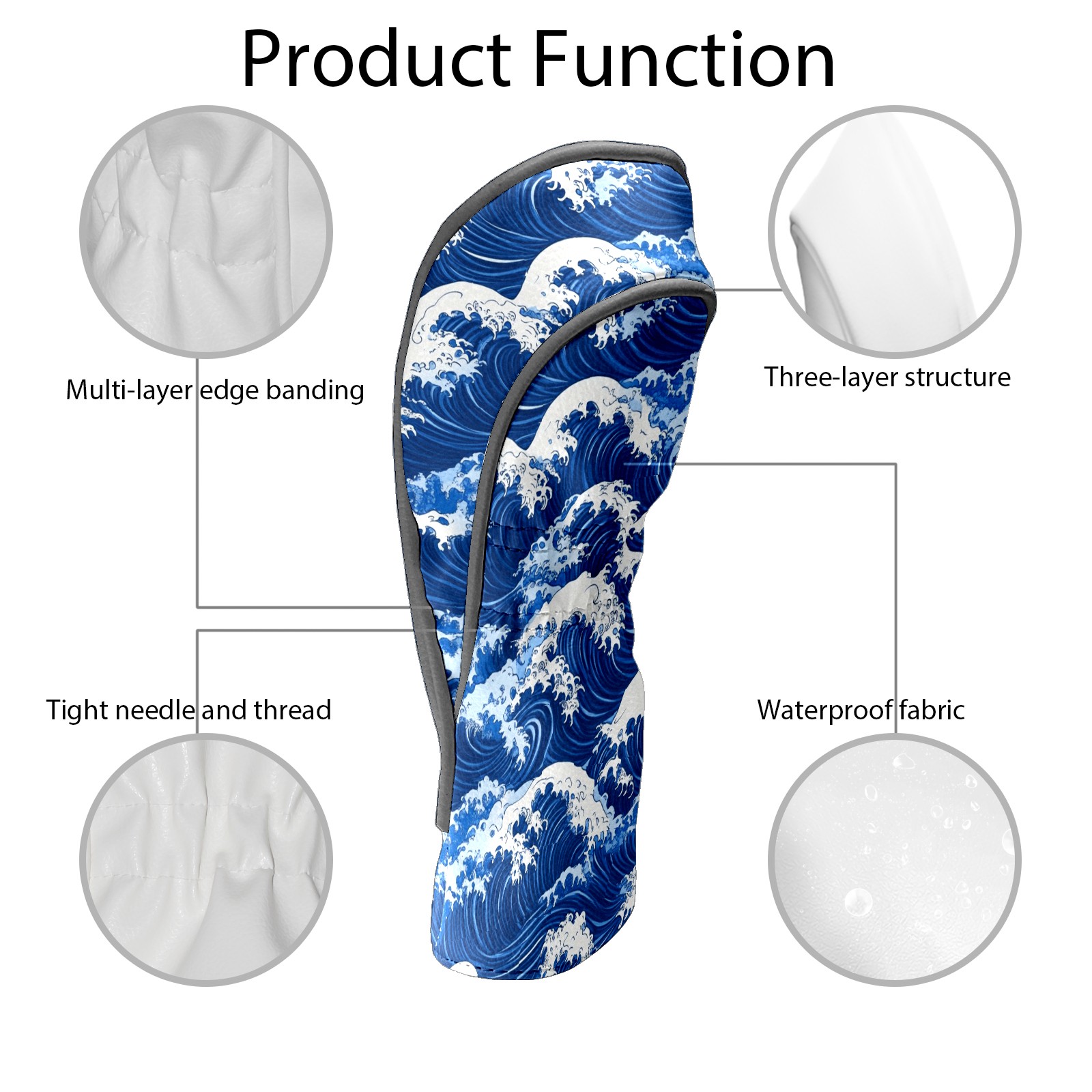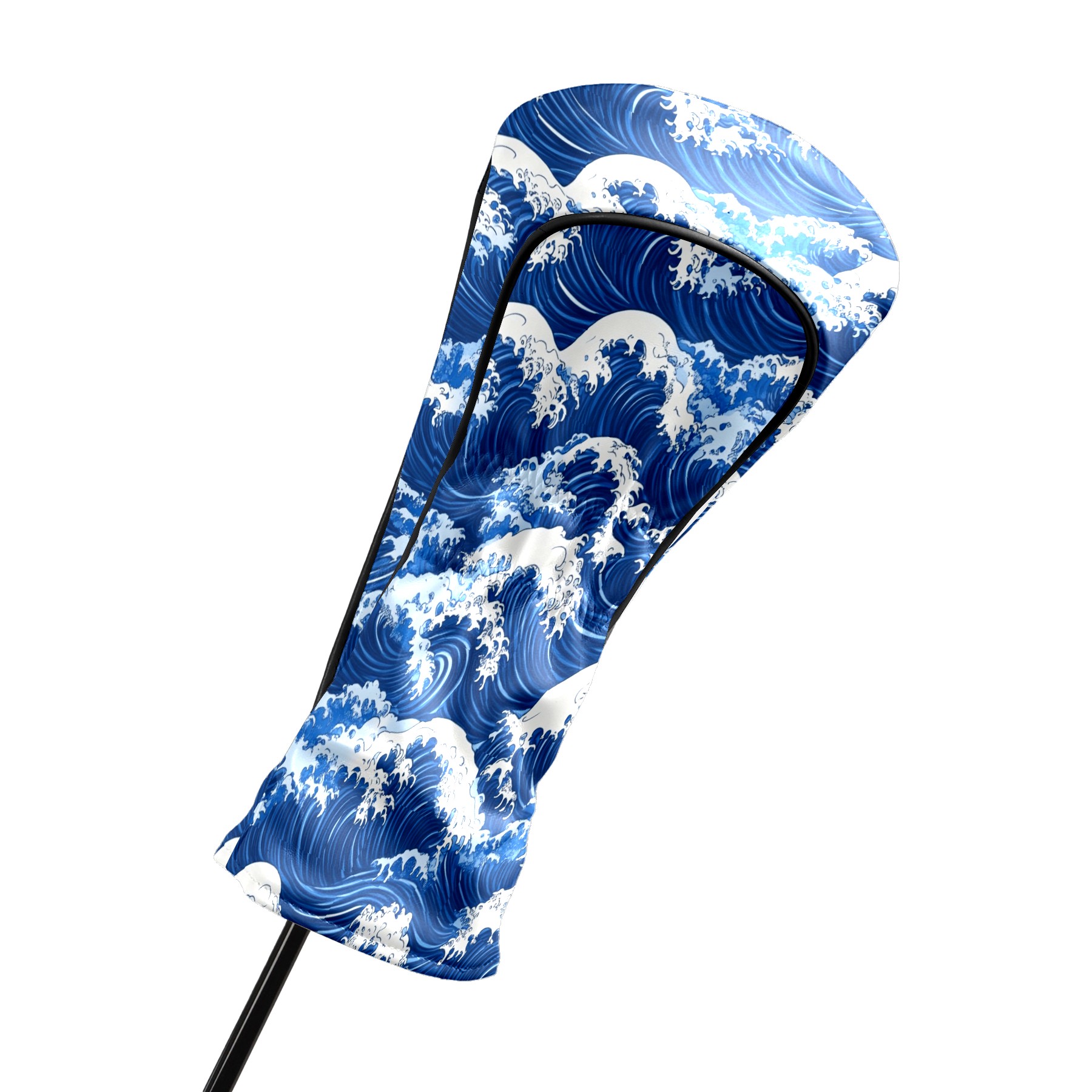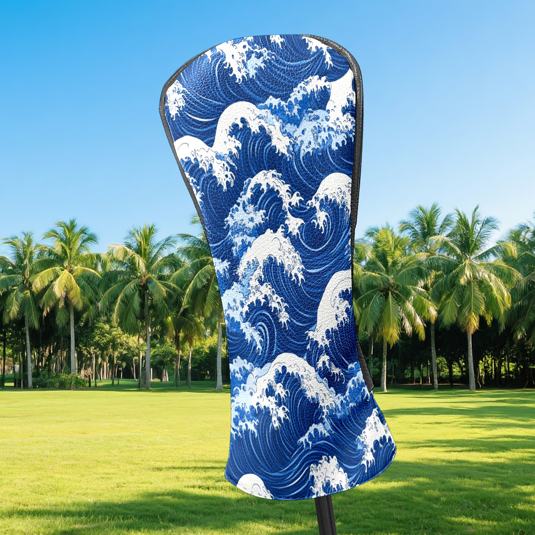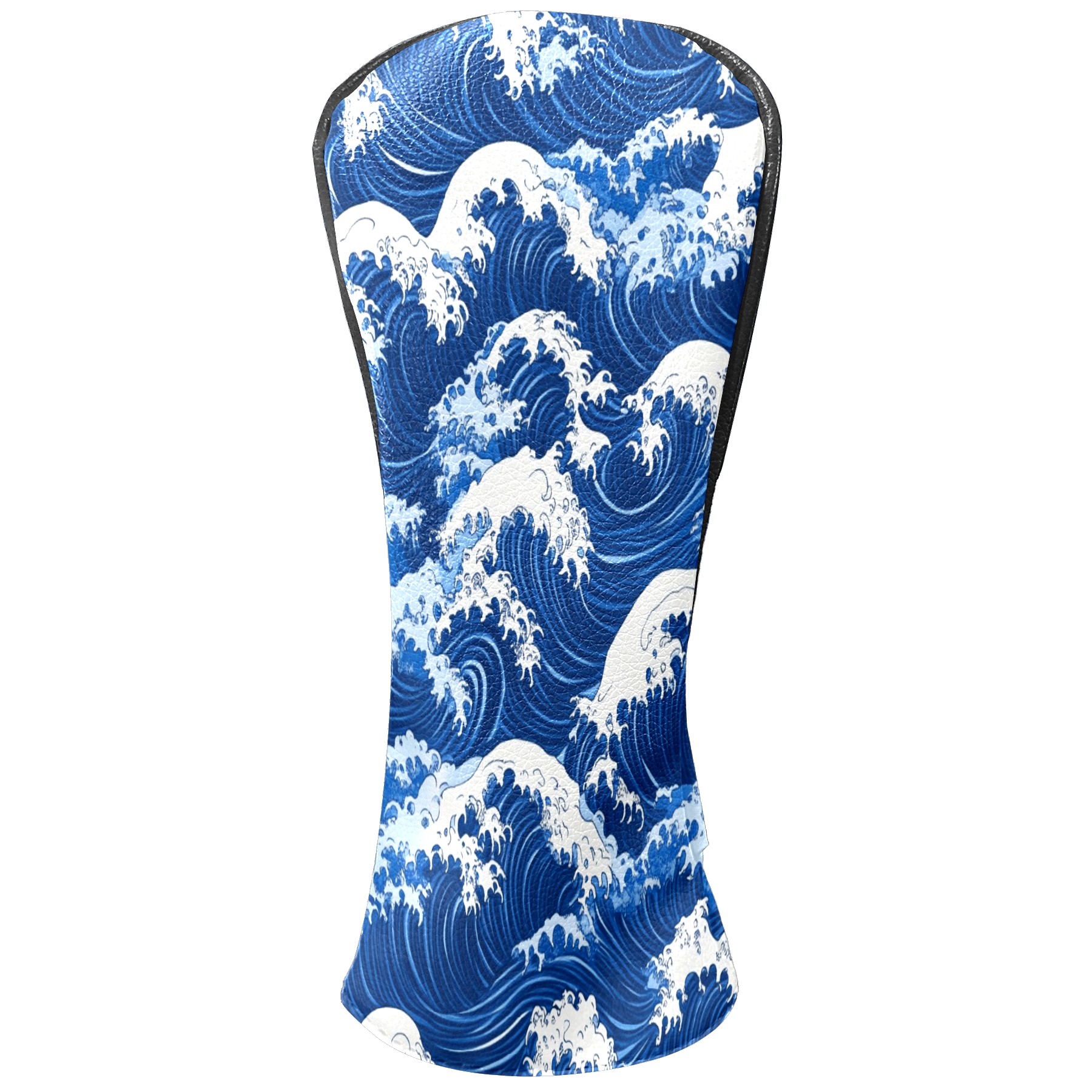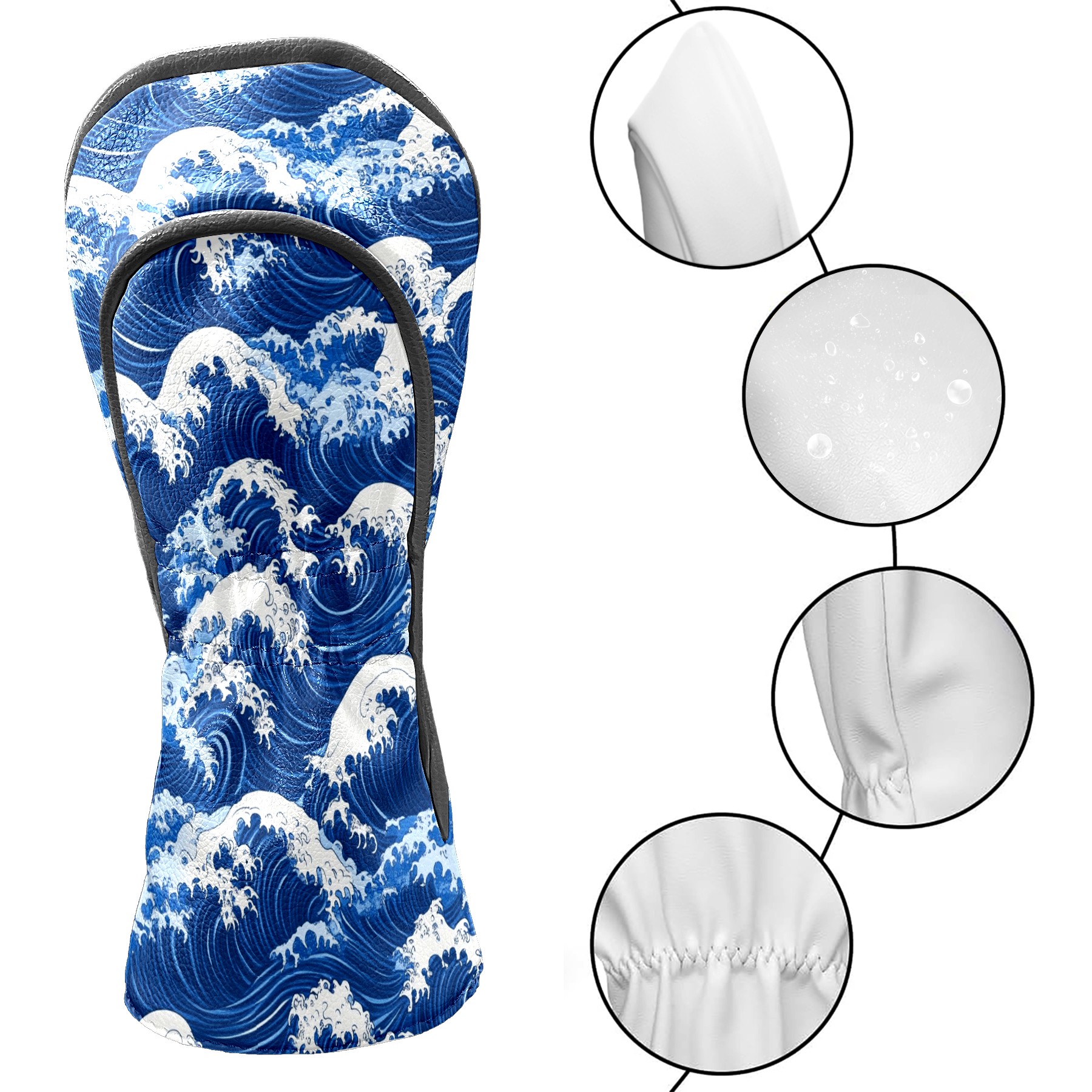 Golf Club Head Covers for Driver and Fairway Woods, Waterproof Leather Headcovers for Golf Clubs, Ideal Golf Accessories Gift for Men Women (Blue And White Ocean Wave)