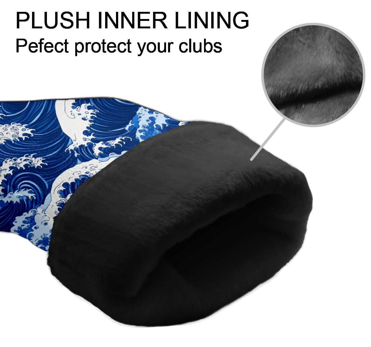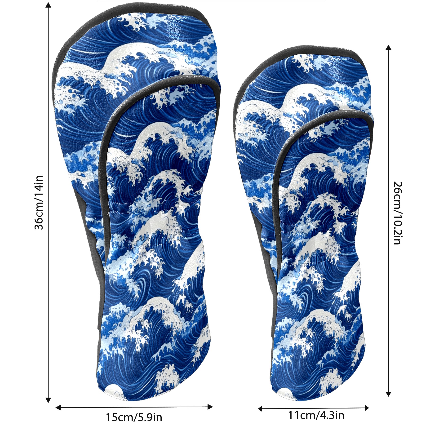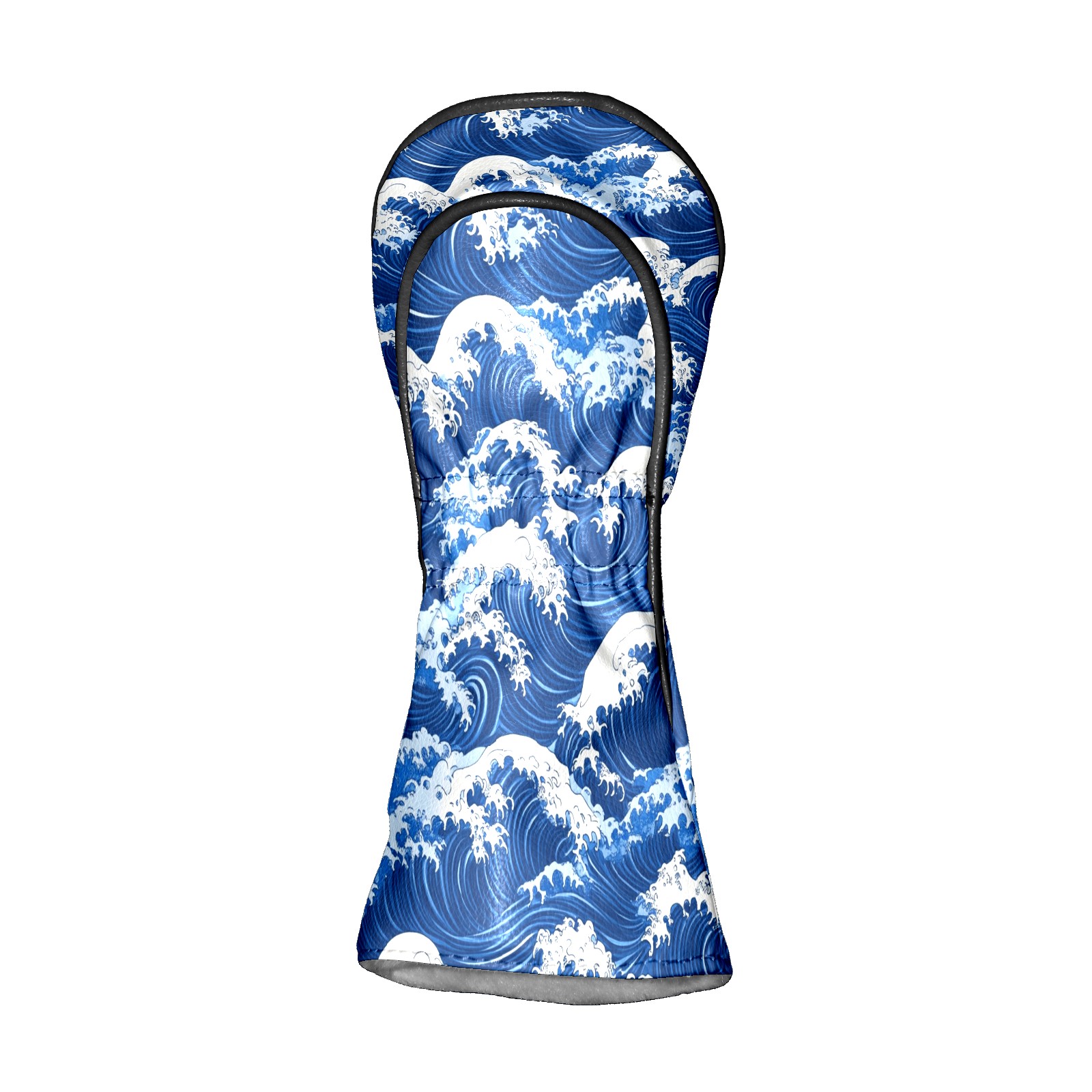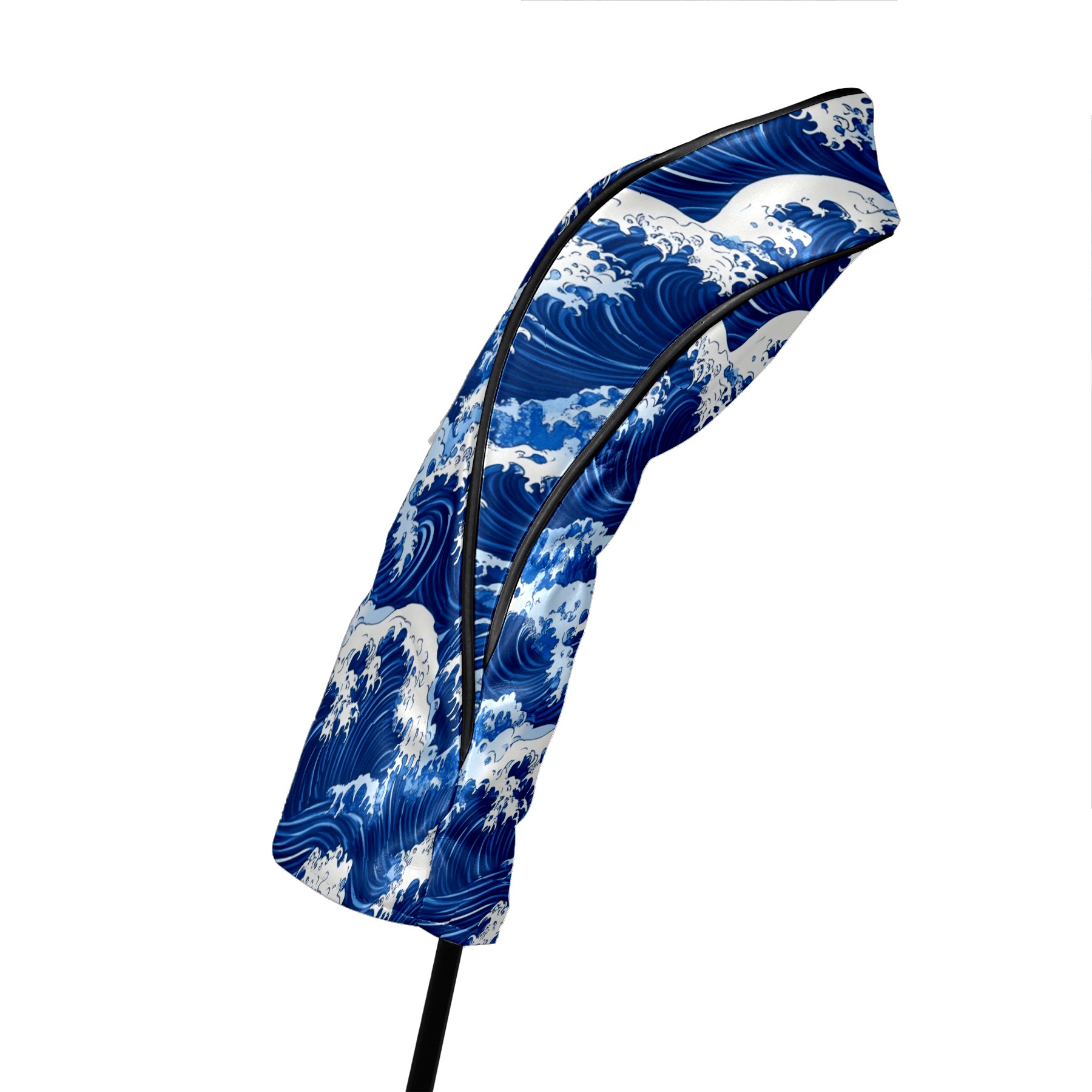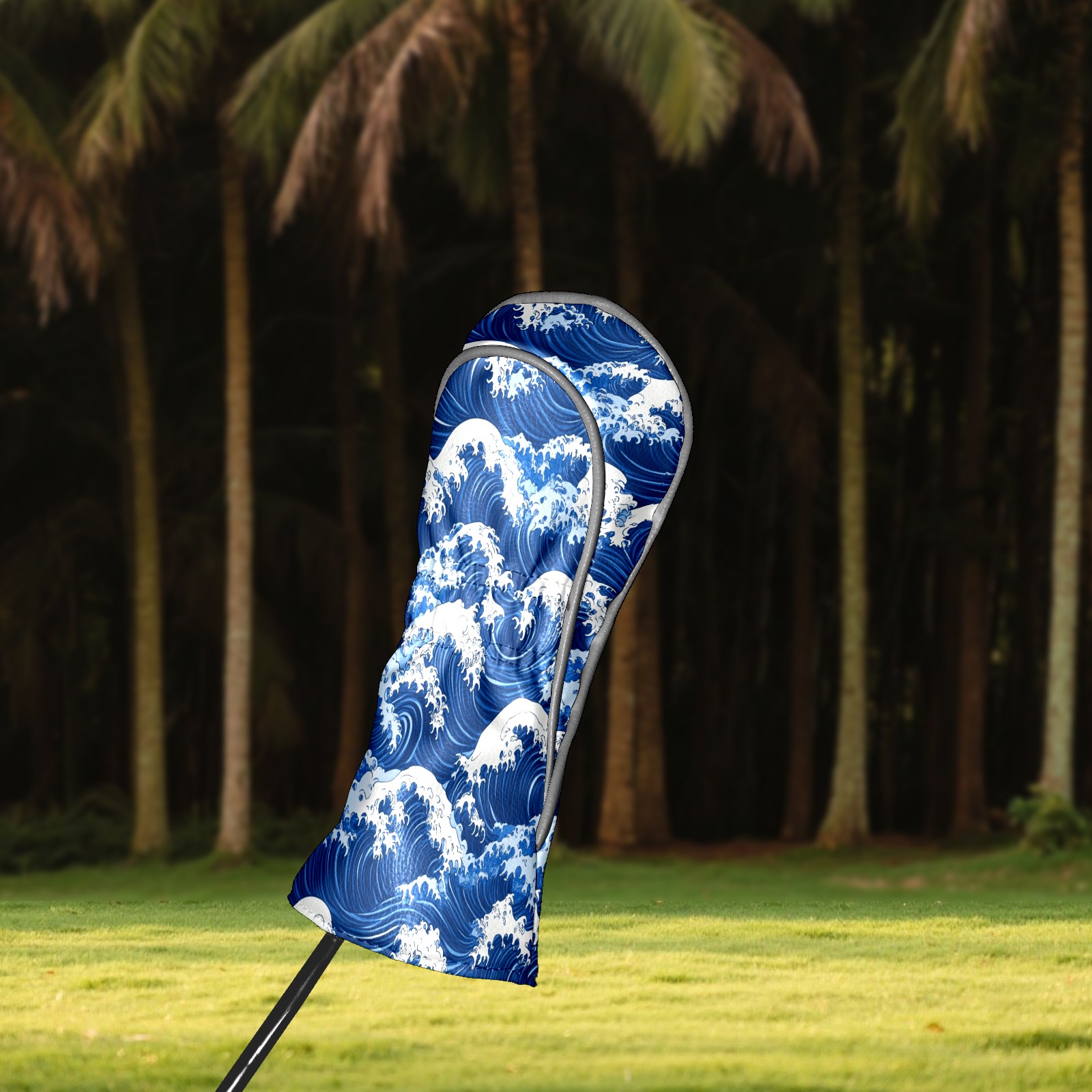 Golf Club Head Covers for Driver and Fairway Woods, Waterproof Leather Headcovers for Golf Clubs, Ideal Golf Accessories Gift for Men Women (Blue And White Ocean Wave)
