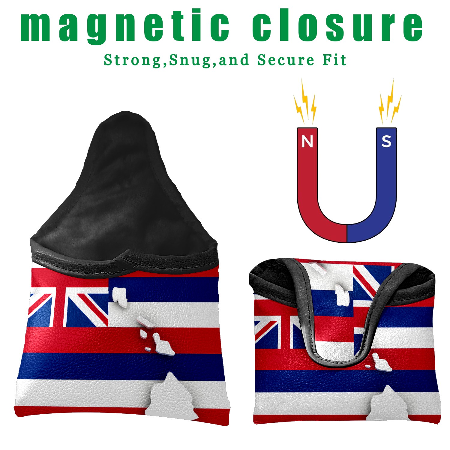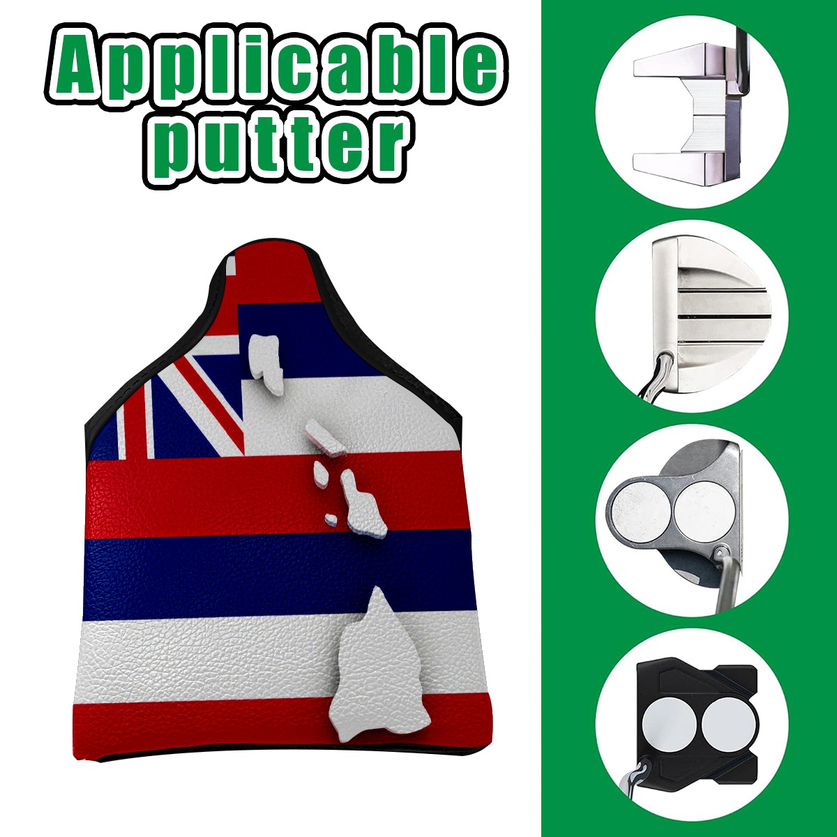 Mallet Putter Cover Magnetic PU Leather Golf Putter Headcover with Plush Lining, Mallet Putter Headcover for Men Women Golf Club Covers (Hawaiian Flag)