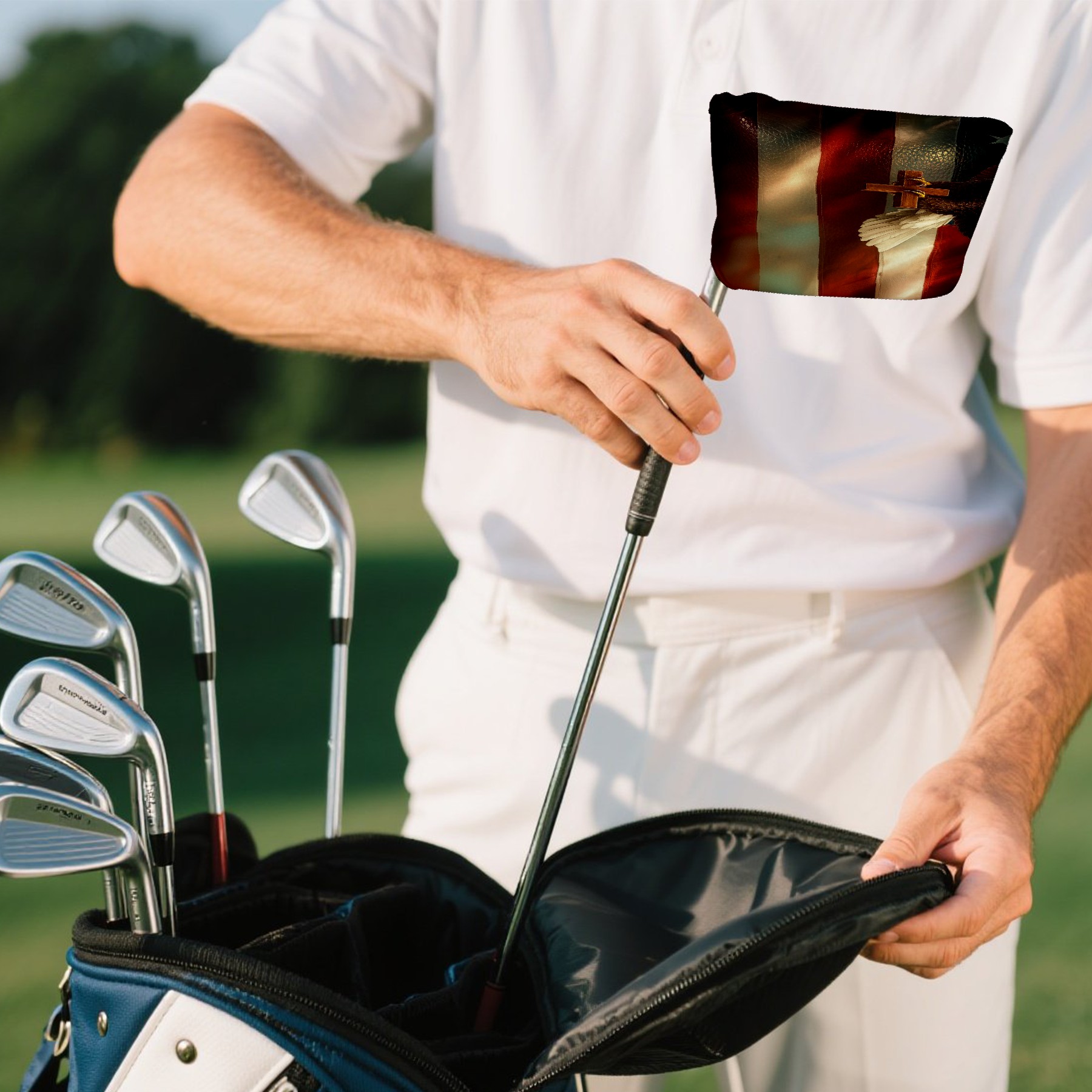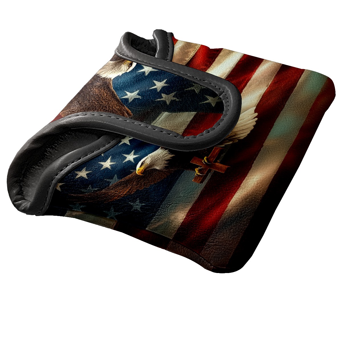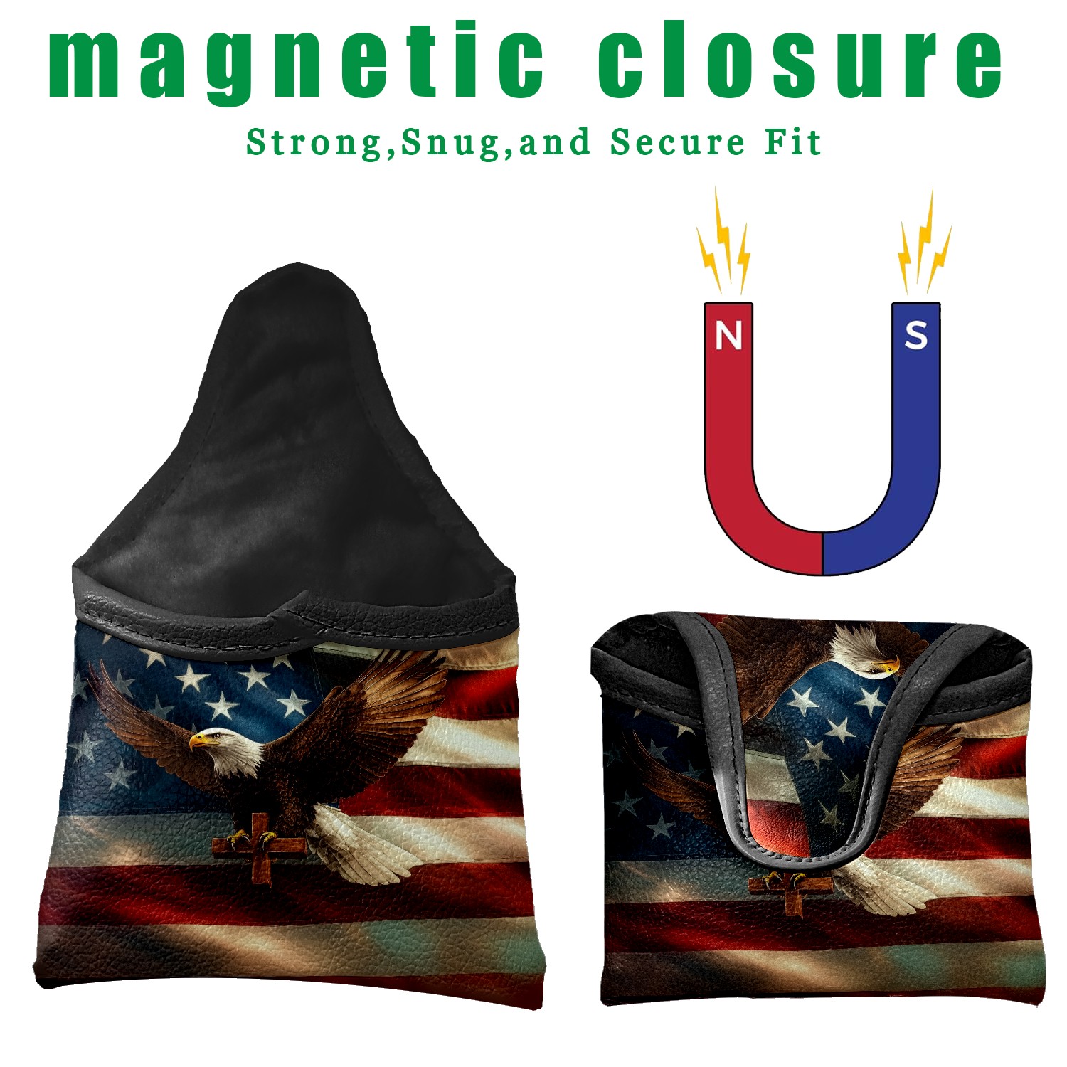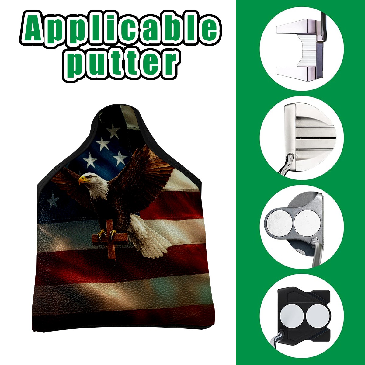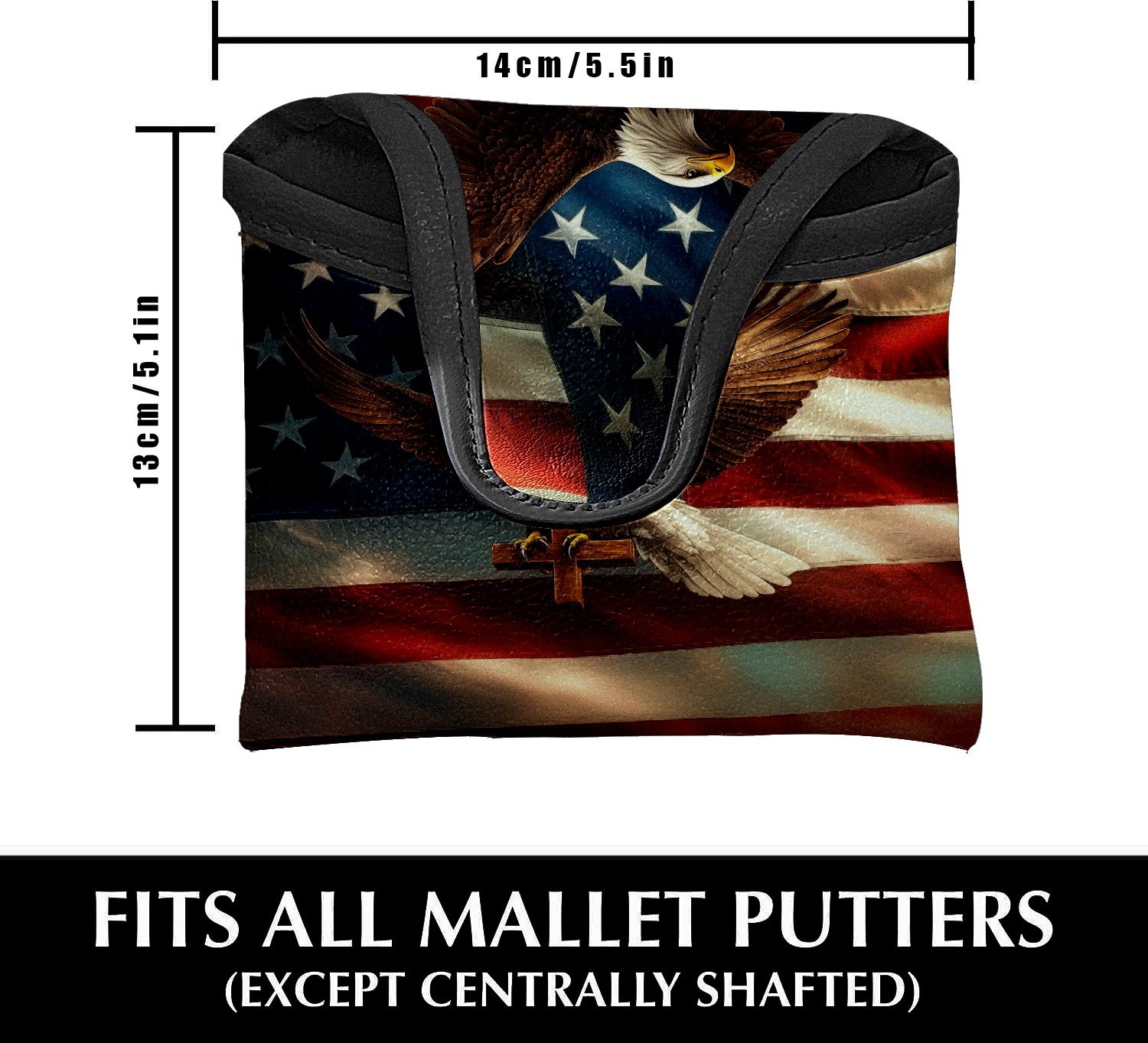 Mallet Putter Cover Magnetic PU Leather Golf Putter Headcover with Plush Lining, Mallet Putter Headcover for Men Women Golf Club Covers (American Flag Eagle Cross)
