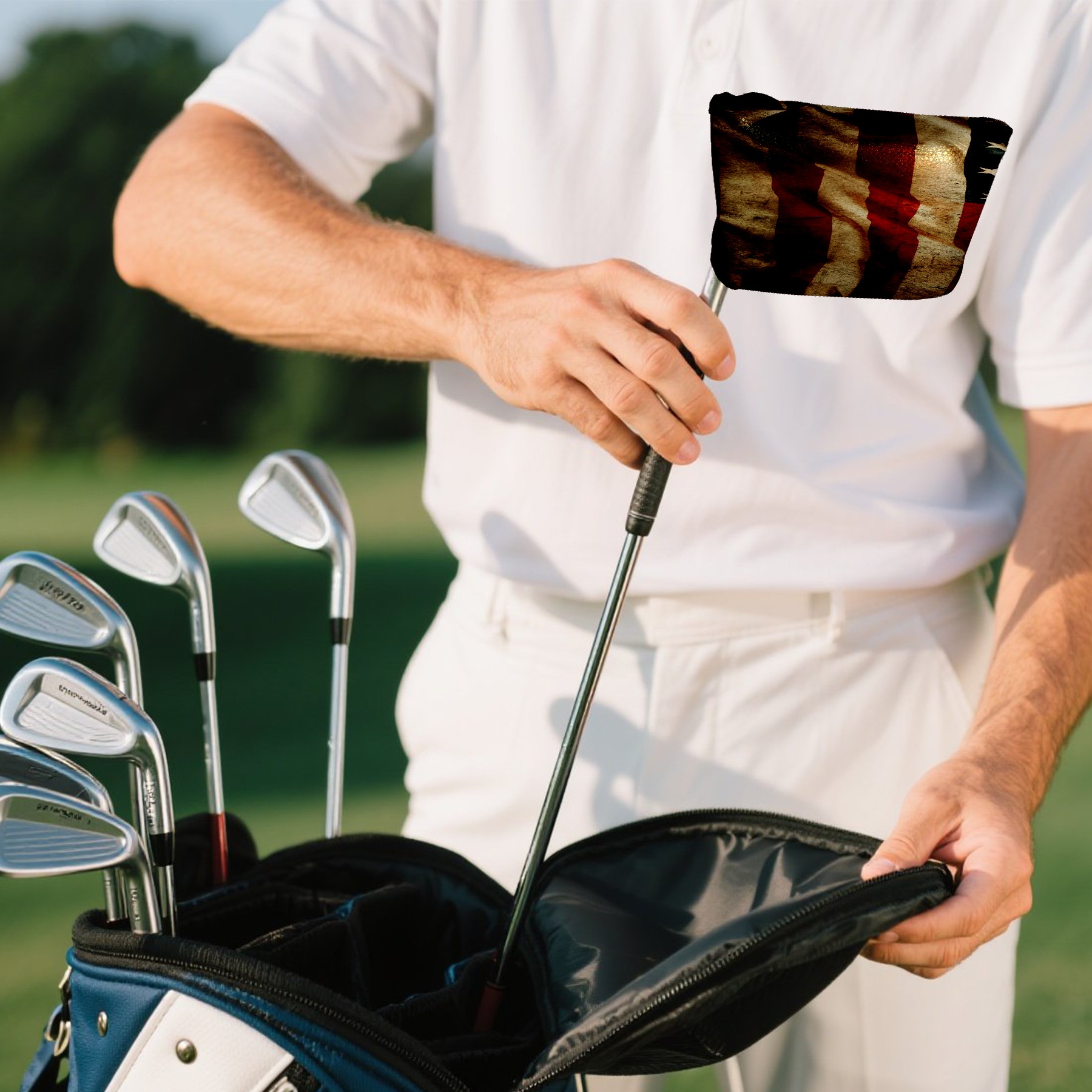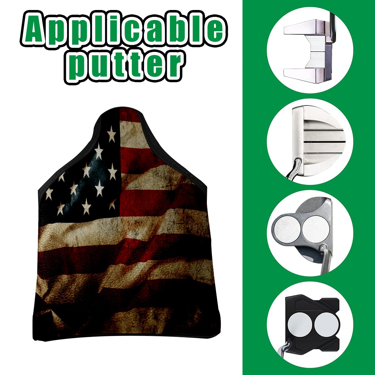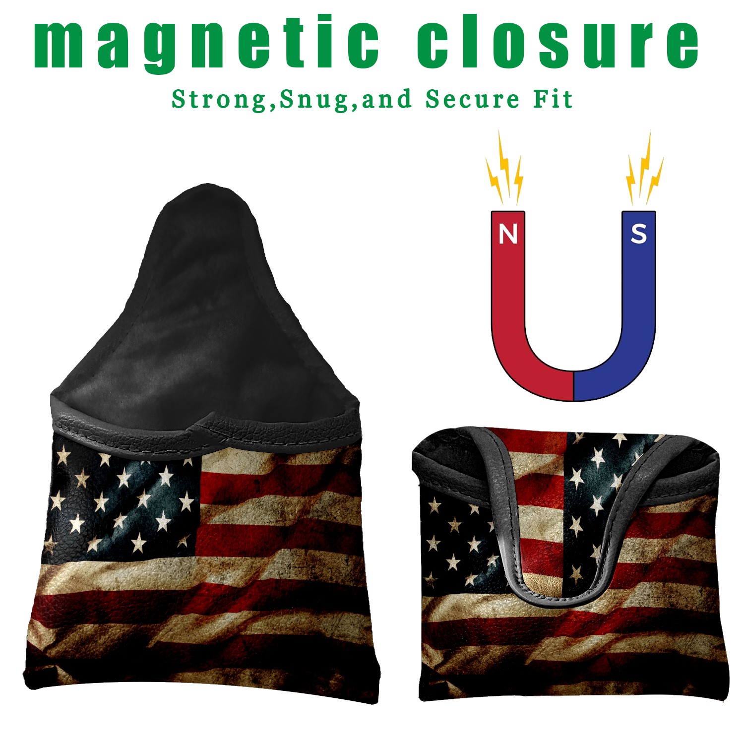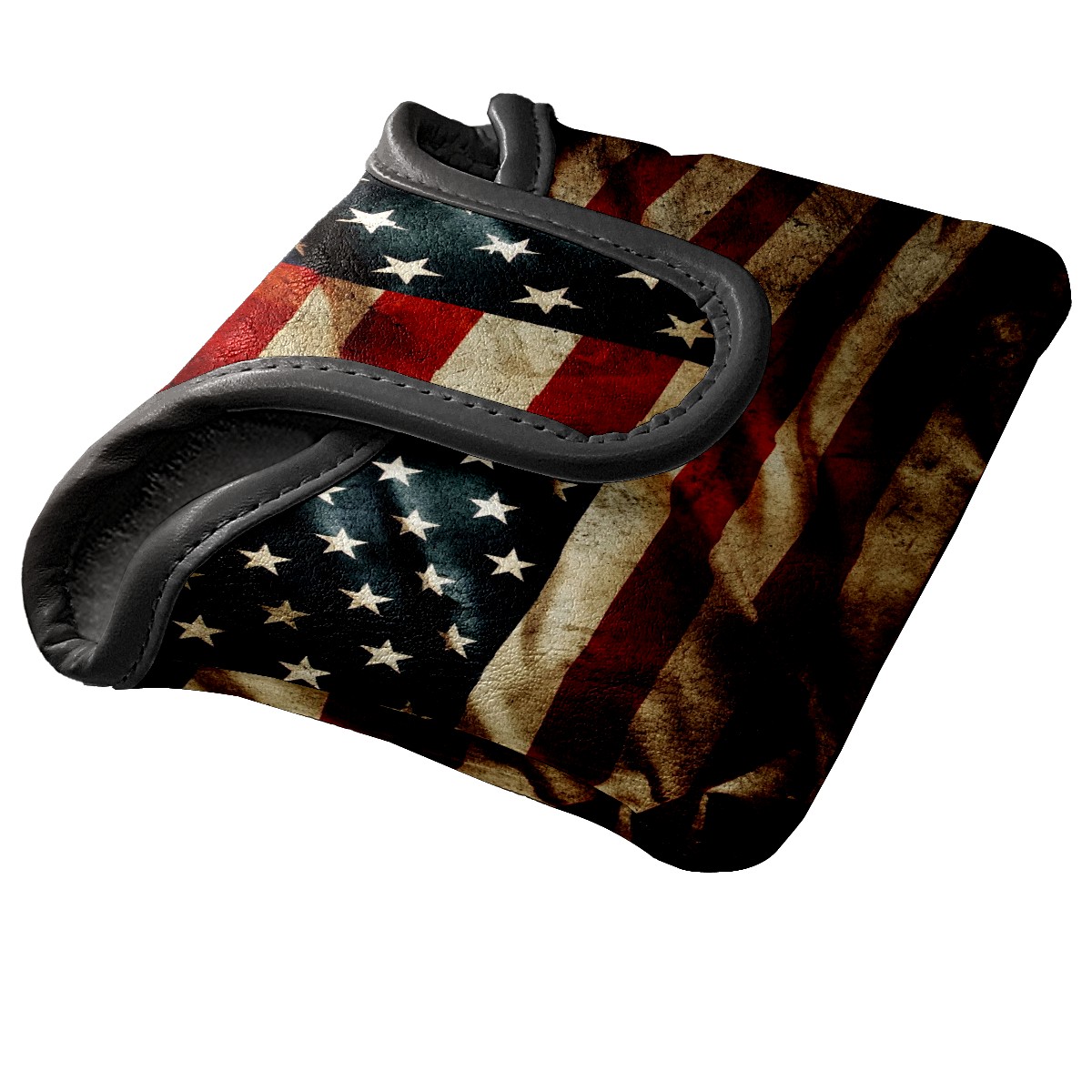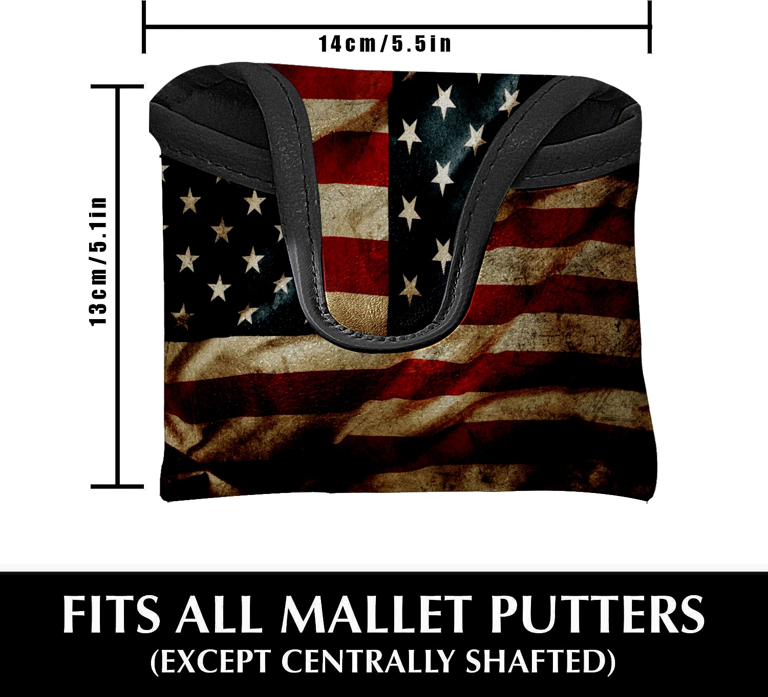 Mallet Putter Cover Magnetic PU Leather Golf Putter Headcover with Plush Lining, Mallet Putter Headcover for Men Women Golf Club Covers (Vintage American Flag)