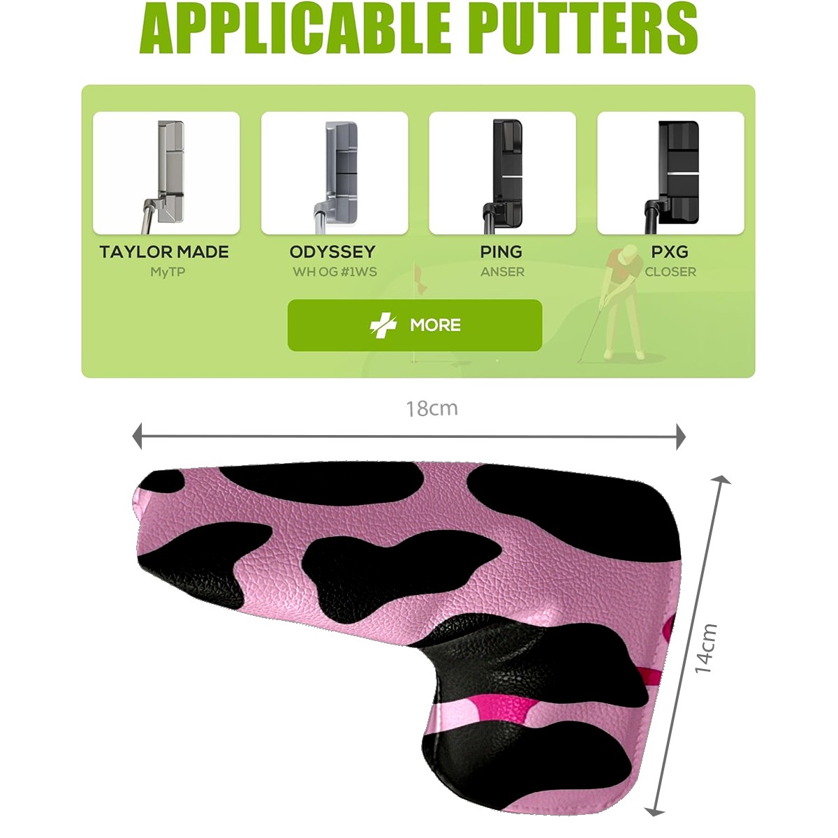 Black Golf Club Head Cover Golf Accessories Head Covers Set driver head cover funny for Men Women Pink And Black Cow Print Pattern