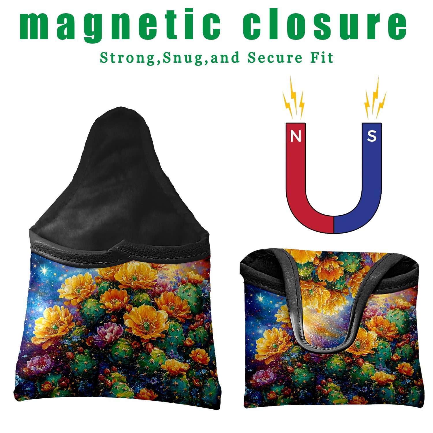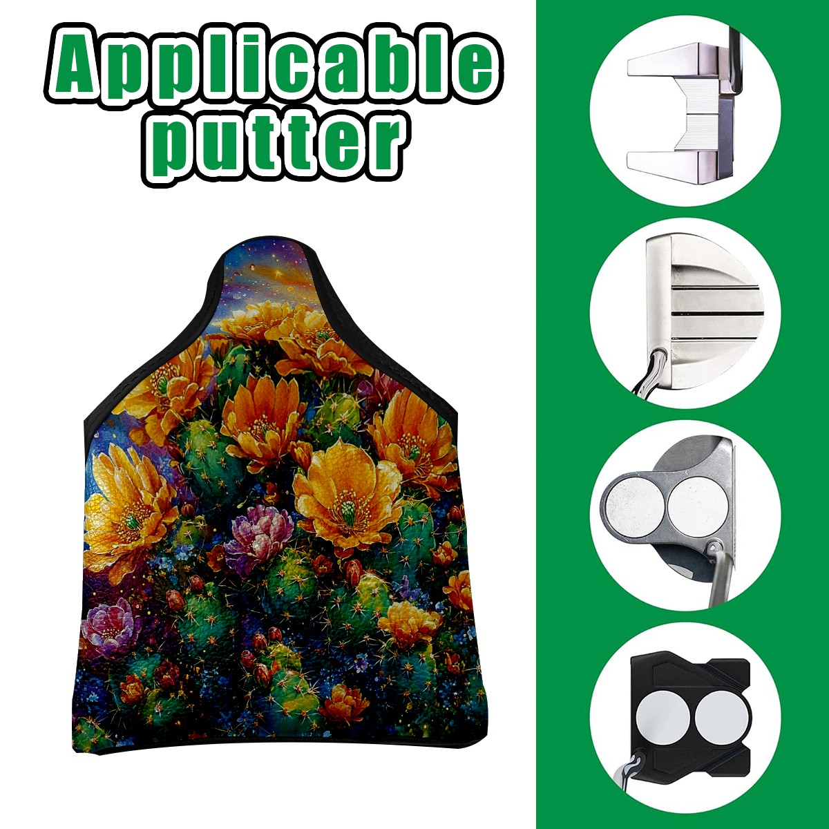 Mallet Putter Cover Magnetic PU Leather Golf Putter Headcover with Plush Lining, Mallet Putter Headcover for Men Women Golf Club Covers (Desert Cactus)