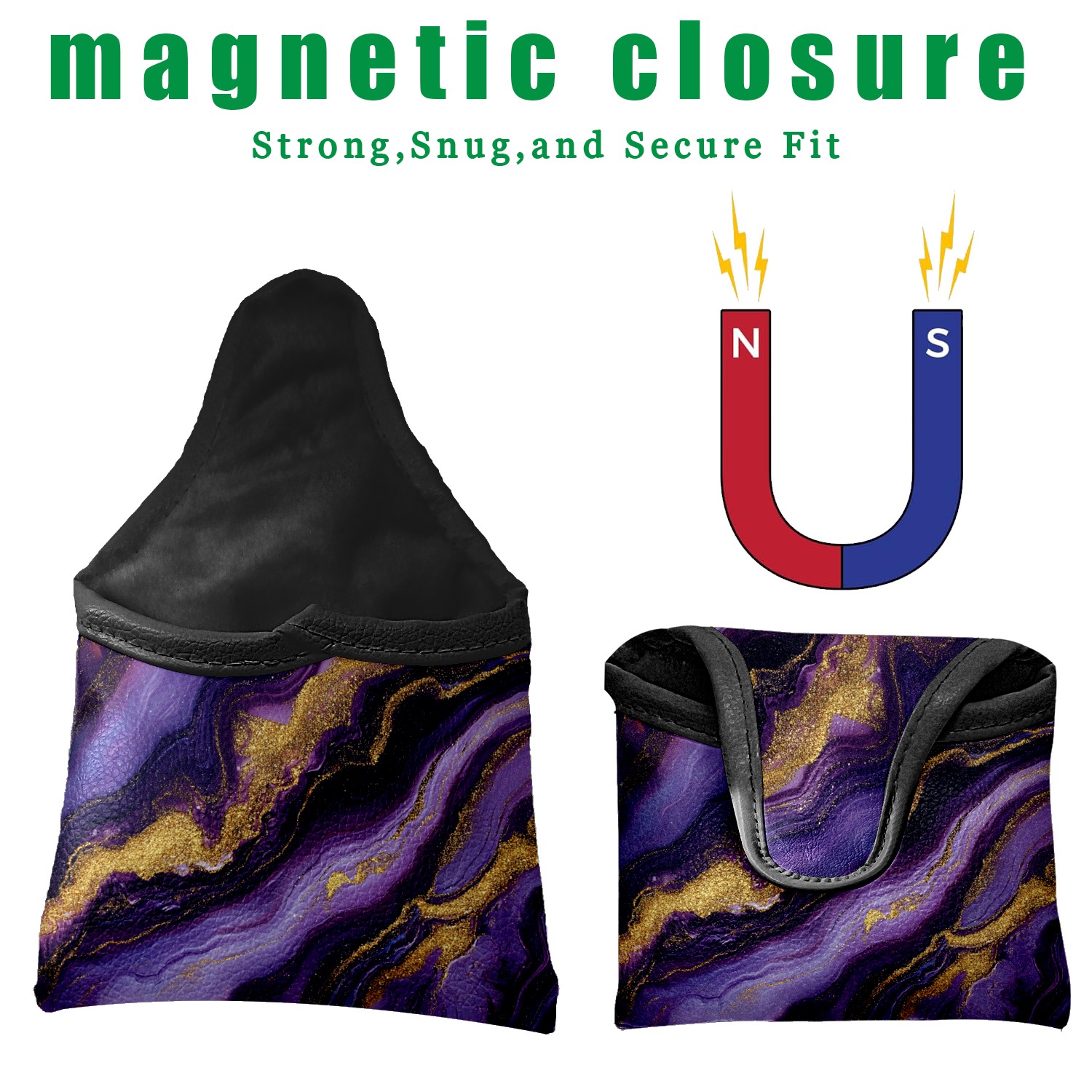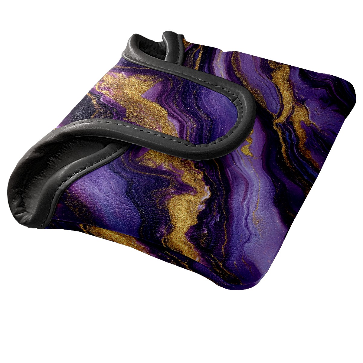 Mallet Putter Cover Magnetic PU Leather Golf Putter Headcover with Plush Lining, Mallet Putter Headcover for Men Women Golf Club Covers (Purple Marble)