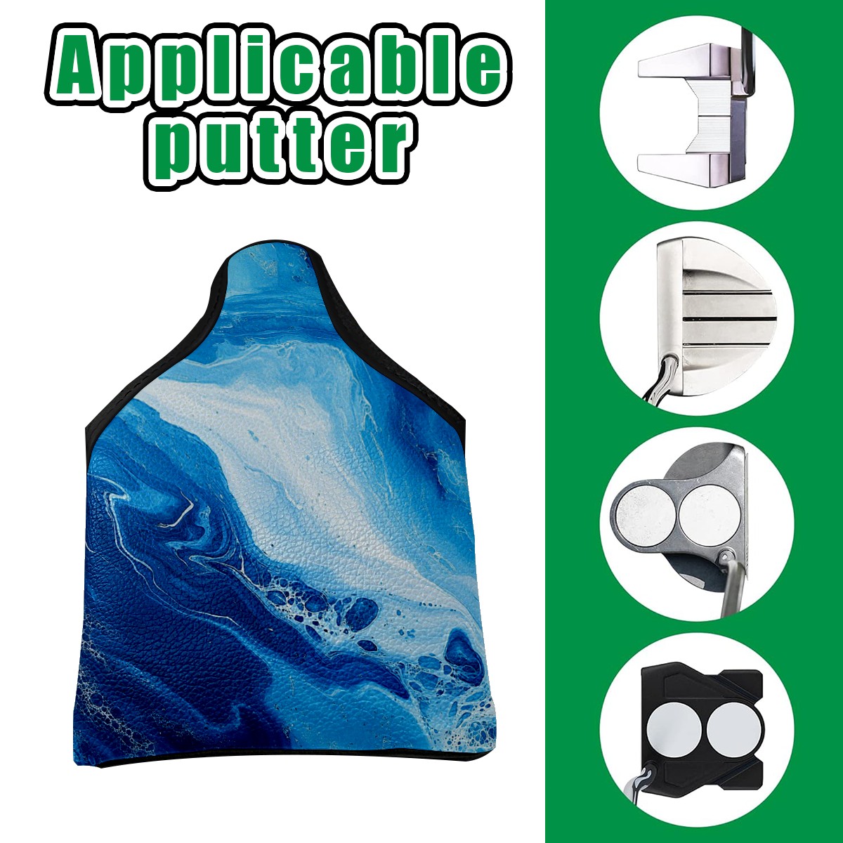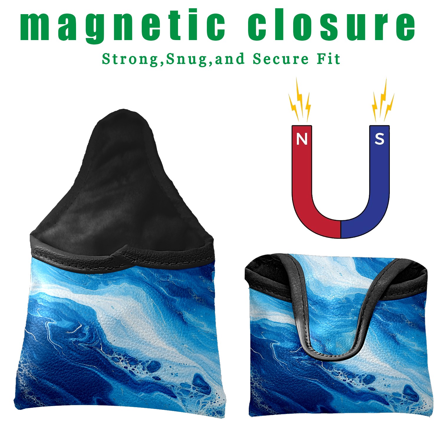 Mallet Putter Cover Magnetic PU Leather Golf Putter Headcover with Plush Lining, Mallet Putter Headcover for Men Women Golf Club Covers (Blue & White)