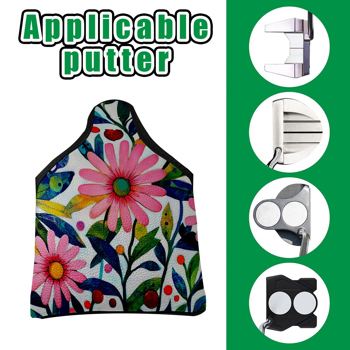 Golf Club Head Cover Waterproof PU Leather Golf Headcover – Velvet Lined, Stain-Resistant Golf Cover,Golf Driver Head Covers for Women and Men Flowers7