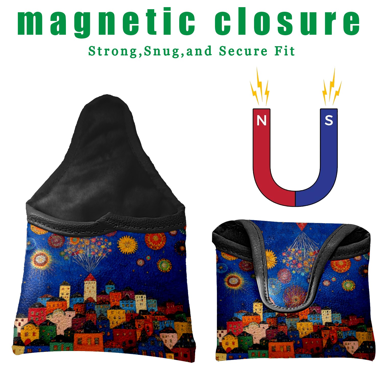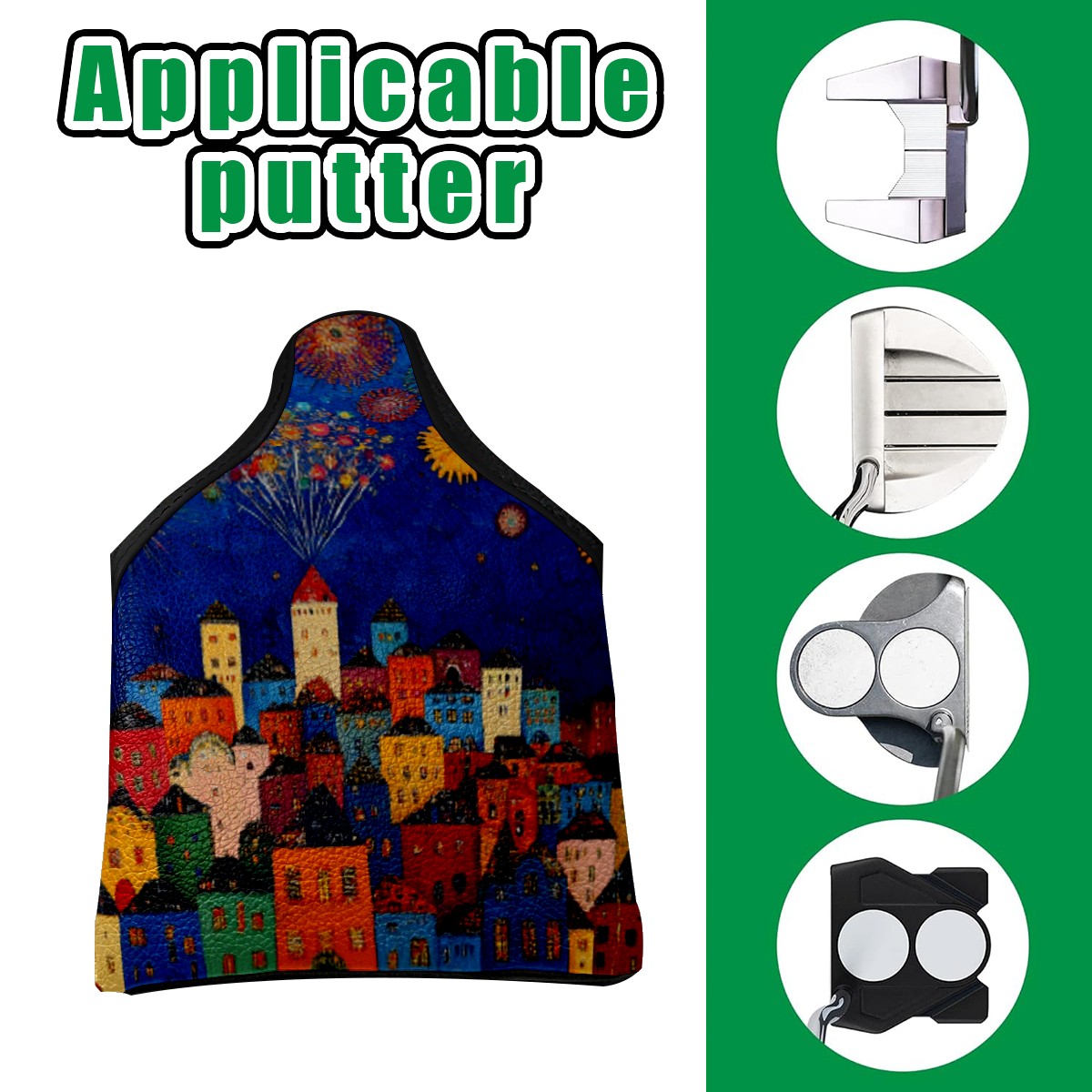 Golf Club Head Cover Waterproof PU Leather Golf Headcover – Velvet Lined, Stain-Resistant Golf Cover,Golf Driver Head Covers for Women and Men Cityscape_with_fireworks
