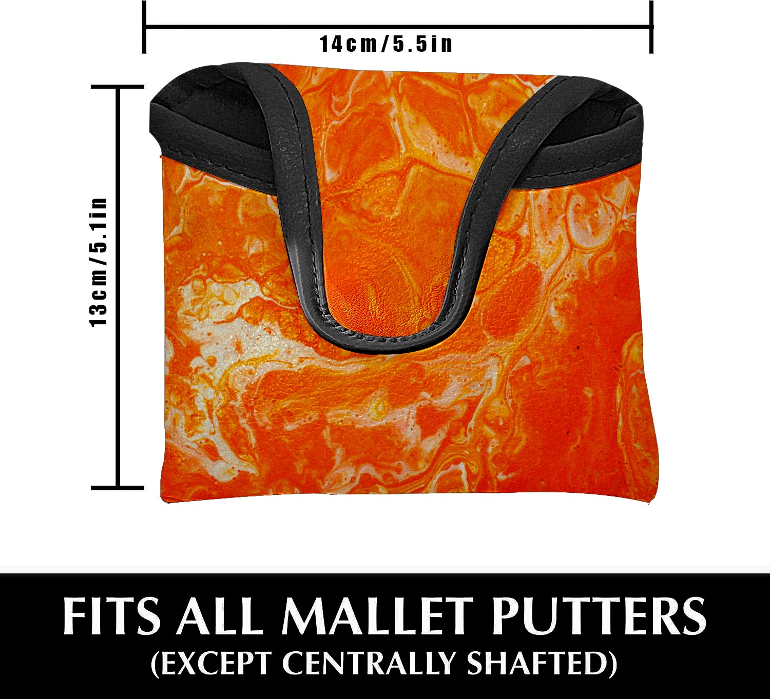 Mallet Putter Cover Magnetic PU Leather Golf Putter Headcover with Plush Lining, Mallet Putter Headcover for Men Women Golf Club Covers (Orange)