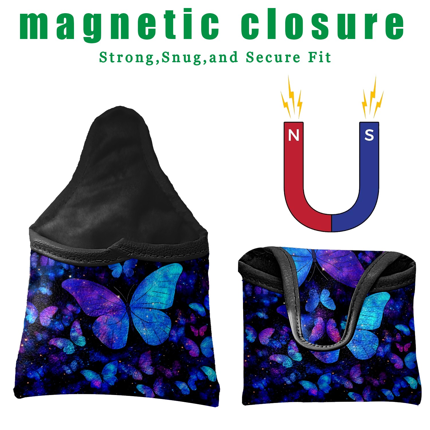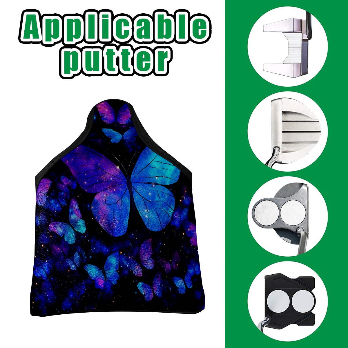 Mallet Putter Cover Magnetic PU Leather Golf Putter Headcover with Plush Lining, Mallet Putter Headcover for Men Women Golf Club Covers (Universe Butterfly)