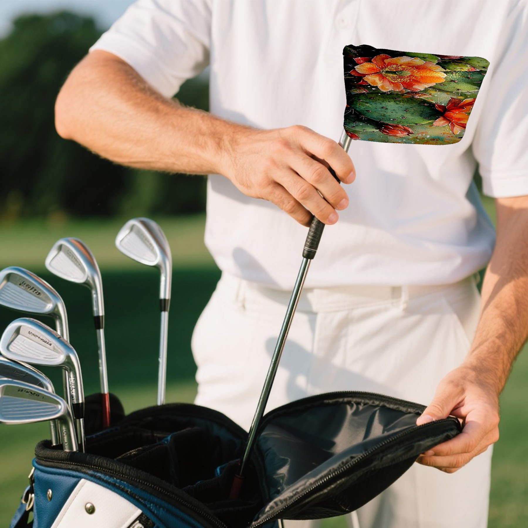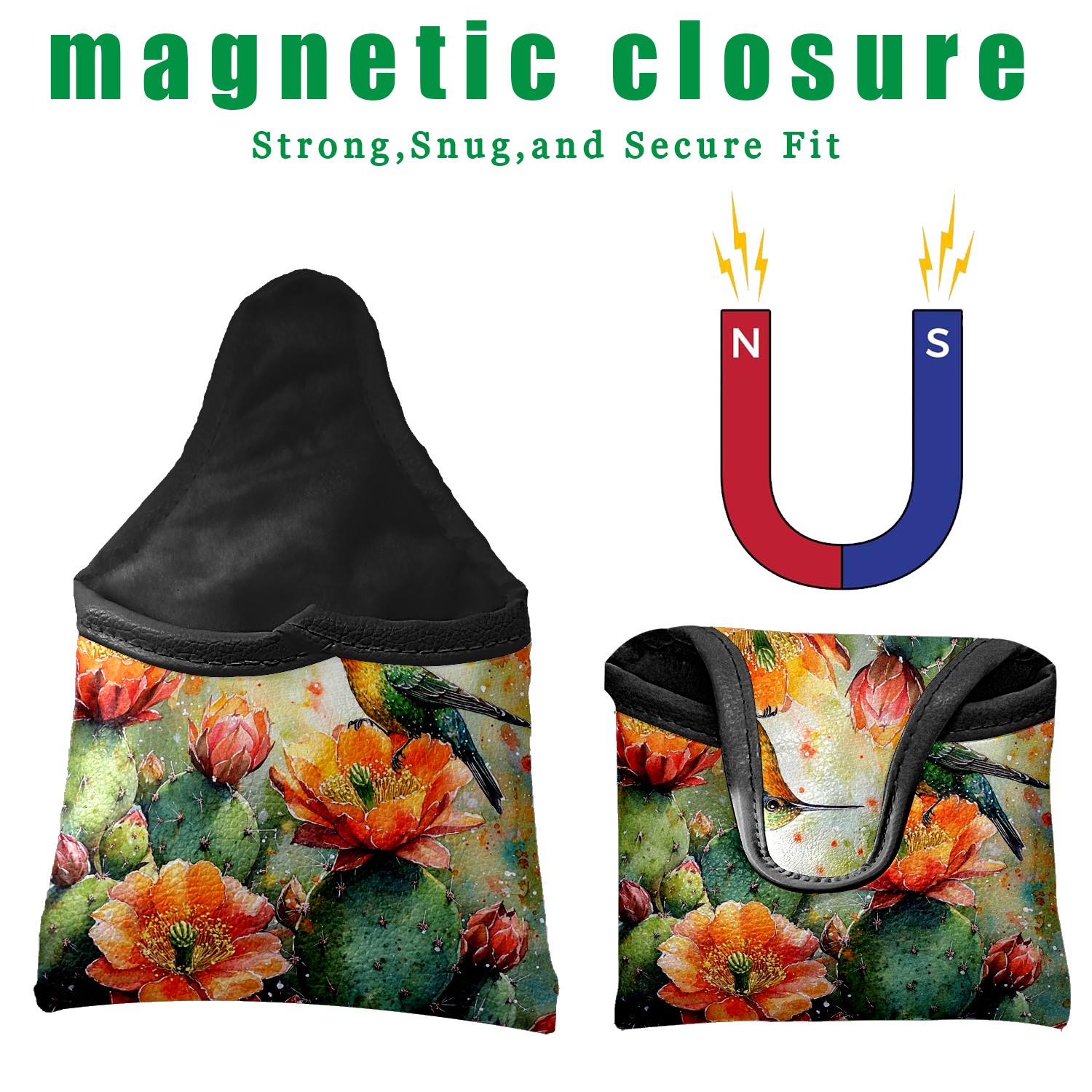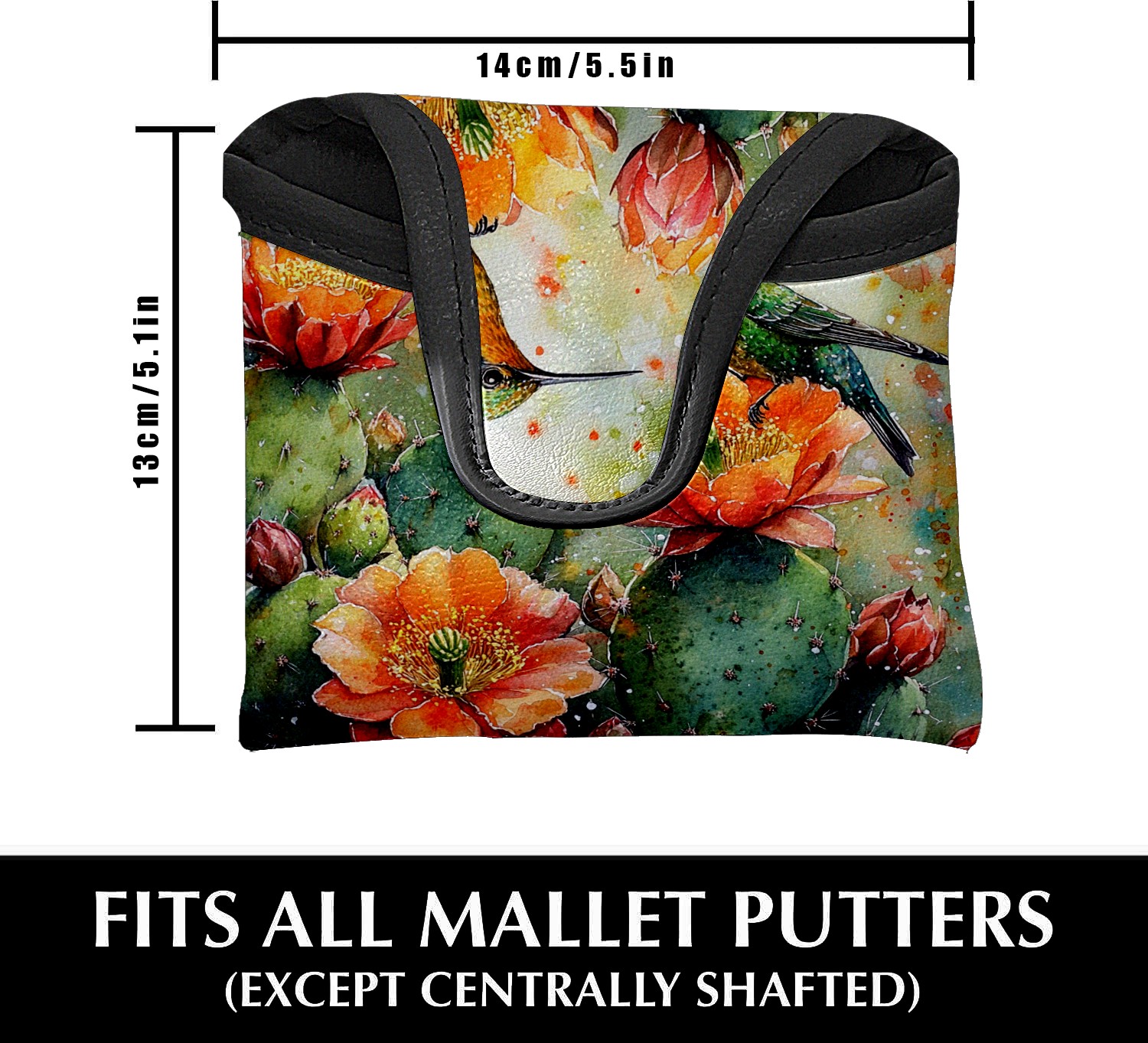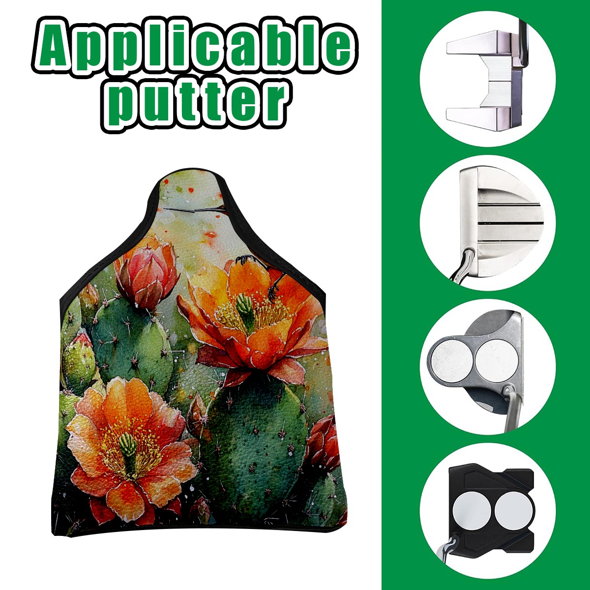 Mallet Putter Cover Magnetic PU Leather Golf Putter Headcover with Plush Lining, Mallet Putter Headcover for Men Women Golf Club Covers (Retro Cactus)