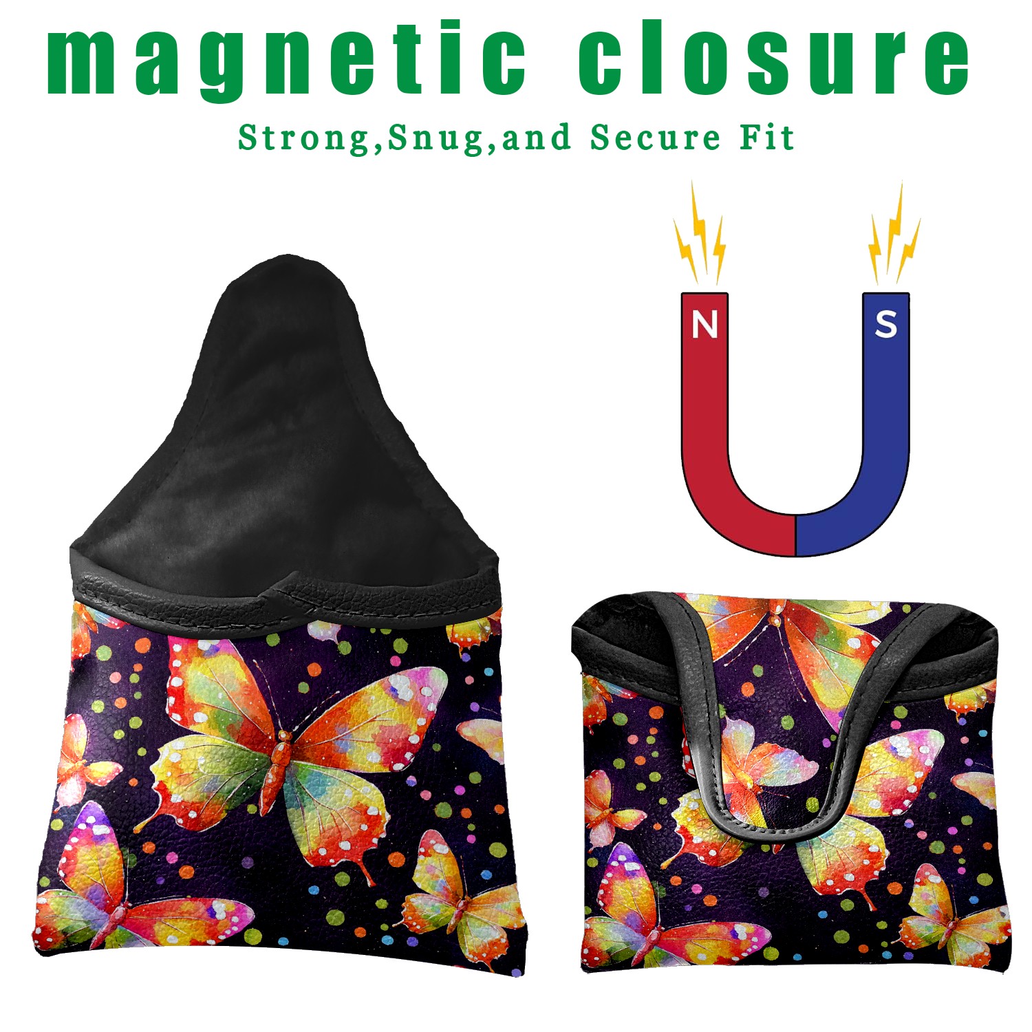 Mallet Putter Cover Magnetic PU Leather Golf Putter Headcover with Plush Lining, Mallet Putter Headcover for Men Women Golf Club Covers (Butterfly Purple)