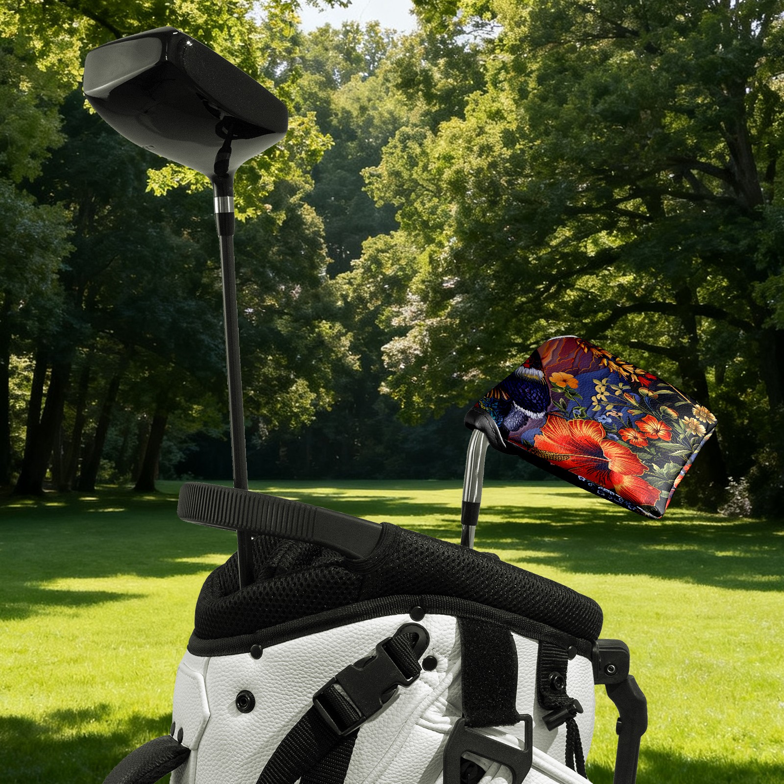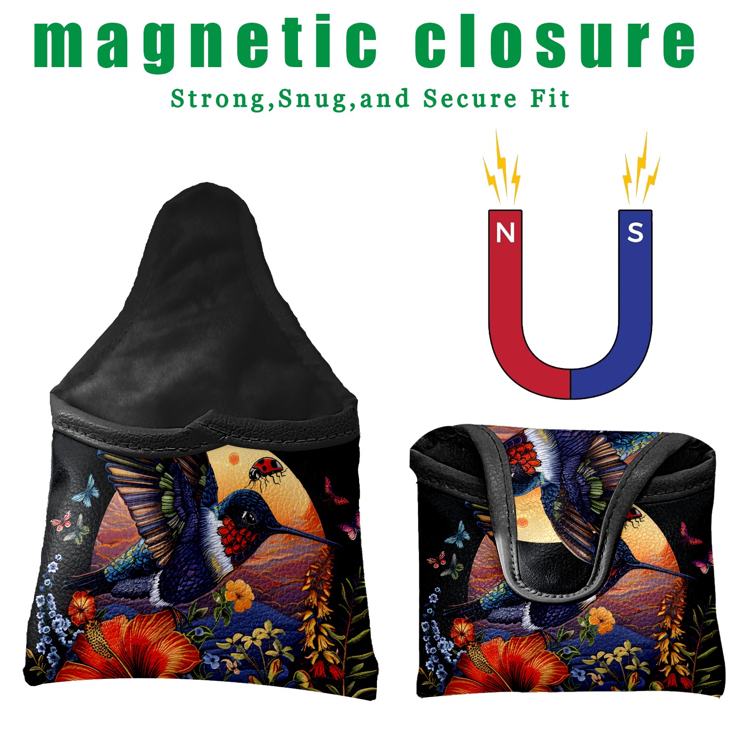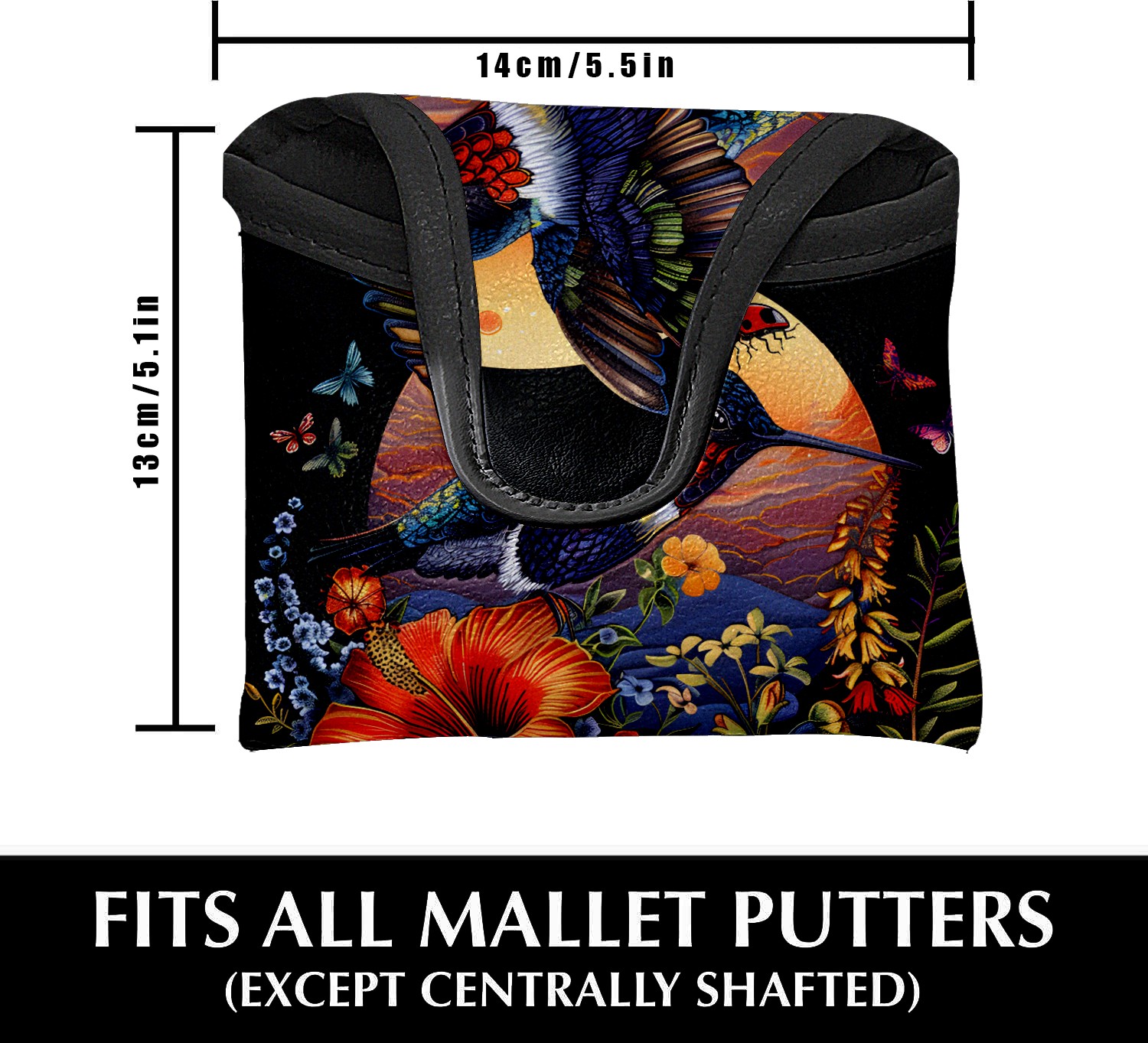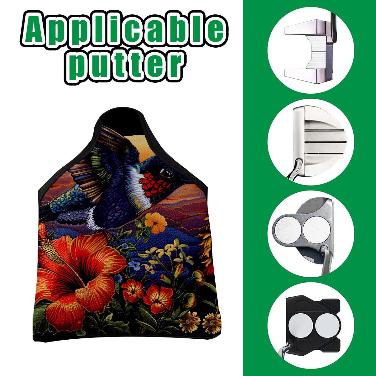 Mallet Putter Cover Magnetic PU Leather Golf Putter Headcover with Plush Lining, Mallet Putter Headcover for Men Women Golf Club Covers (Hummingbird)