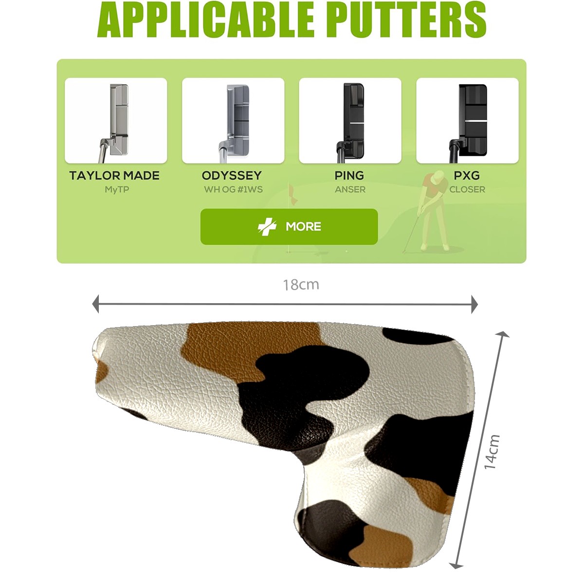 Golf Club Head Covers for Blade Putter, Waterproof Leather Headcovers for Golf Clubs, Ideal Golf Accessories Gift for Men Women (Cow Print)