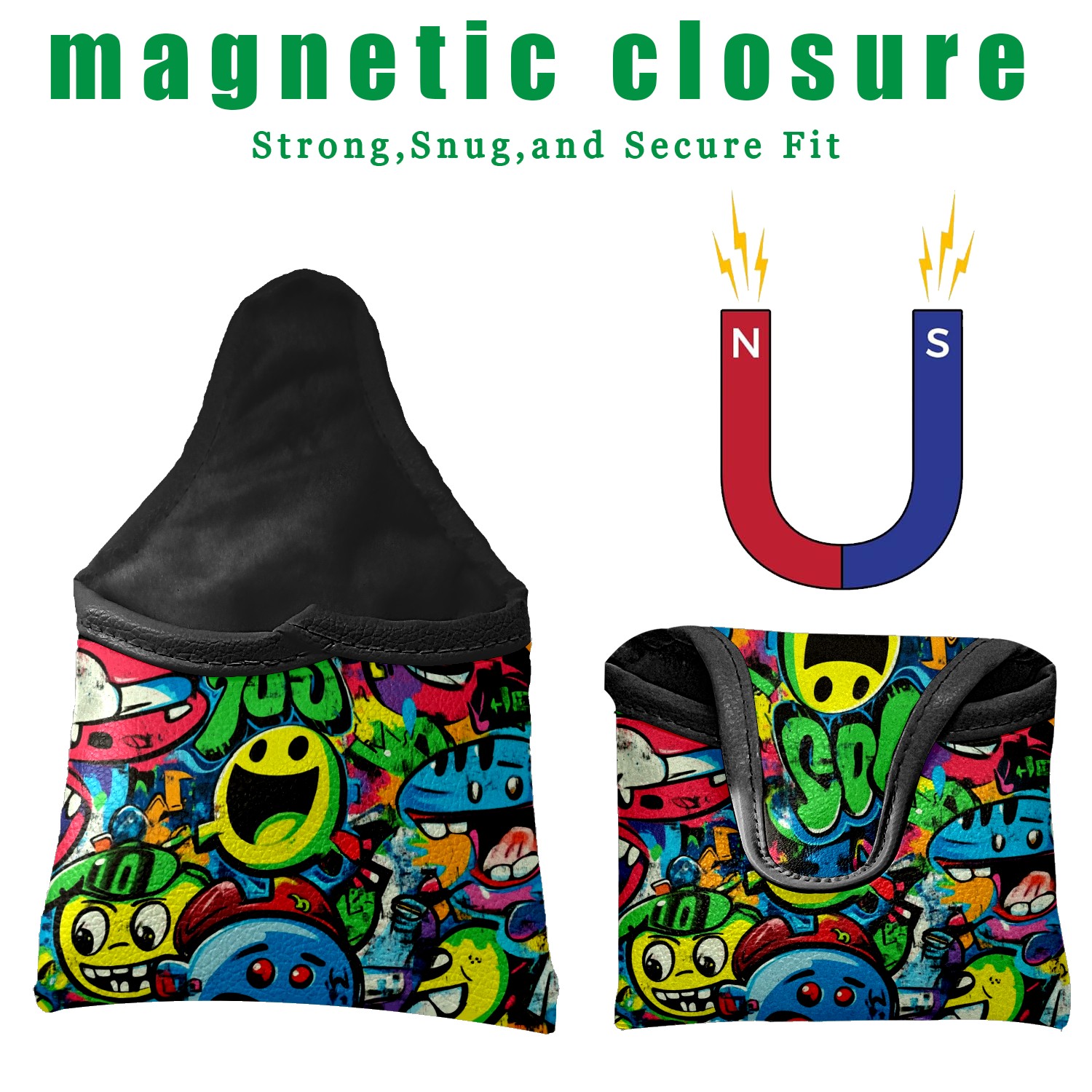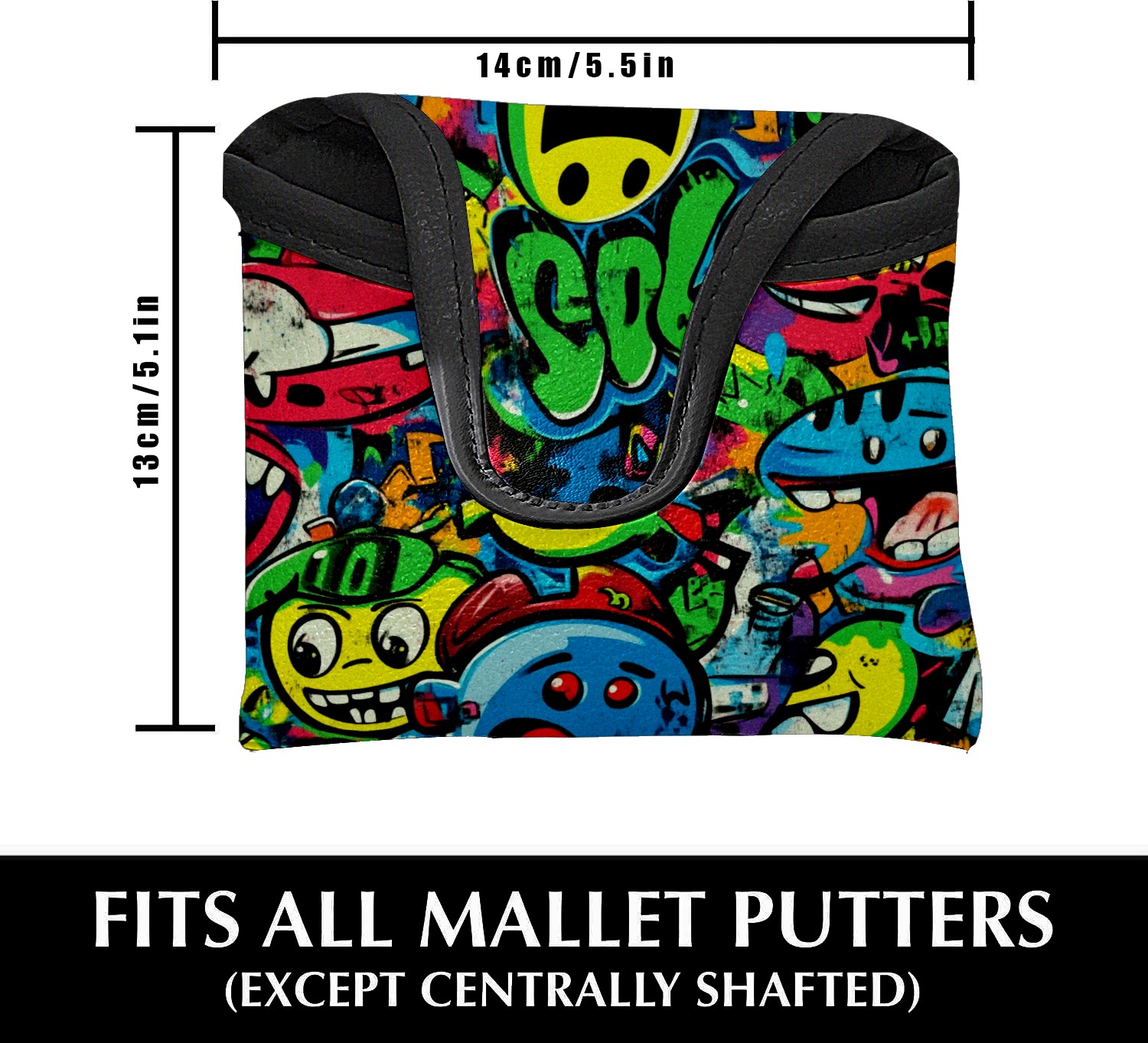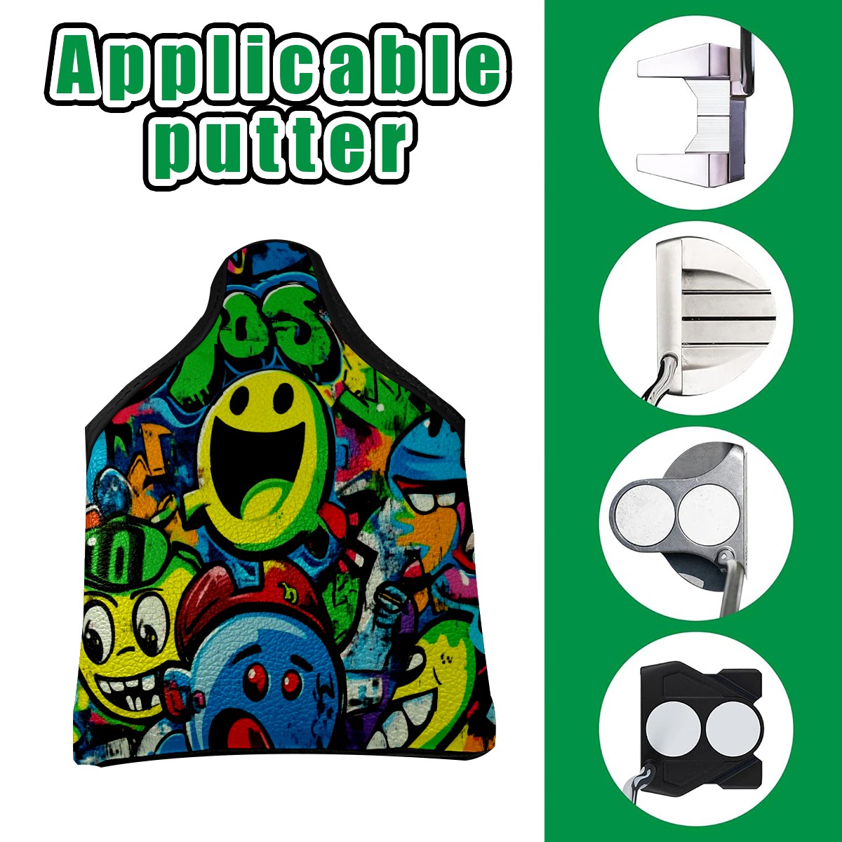 Golf Club Head Covers for Mallet Putter, Waterproof Leather Headcovers for Golf Clubs, Ideal Golf Accessories Gift for Men Women (Vibrant Cartoon-style Pattern)