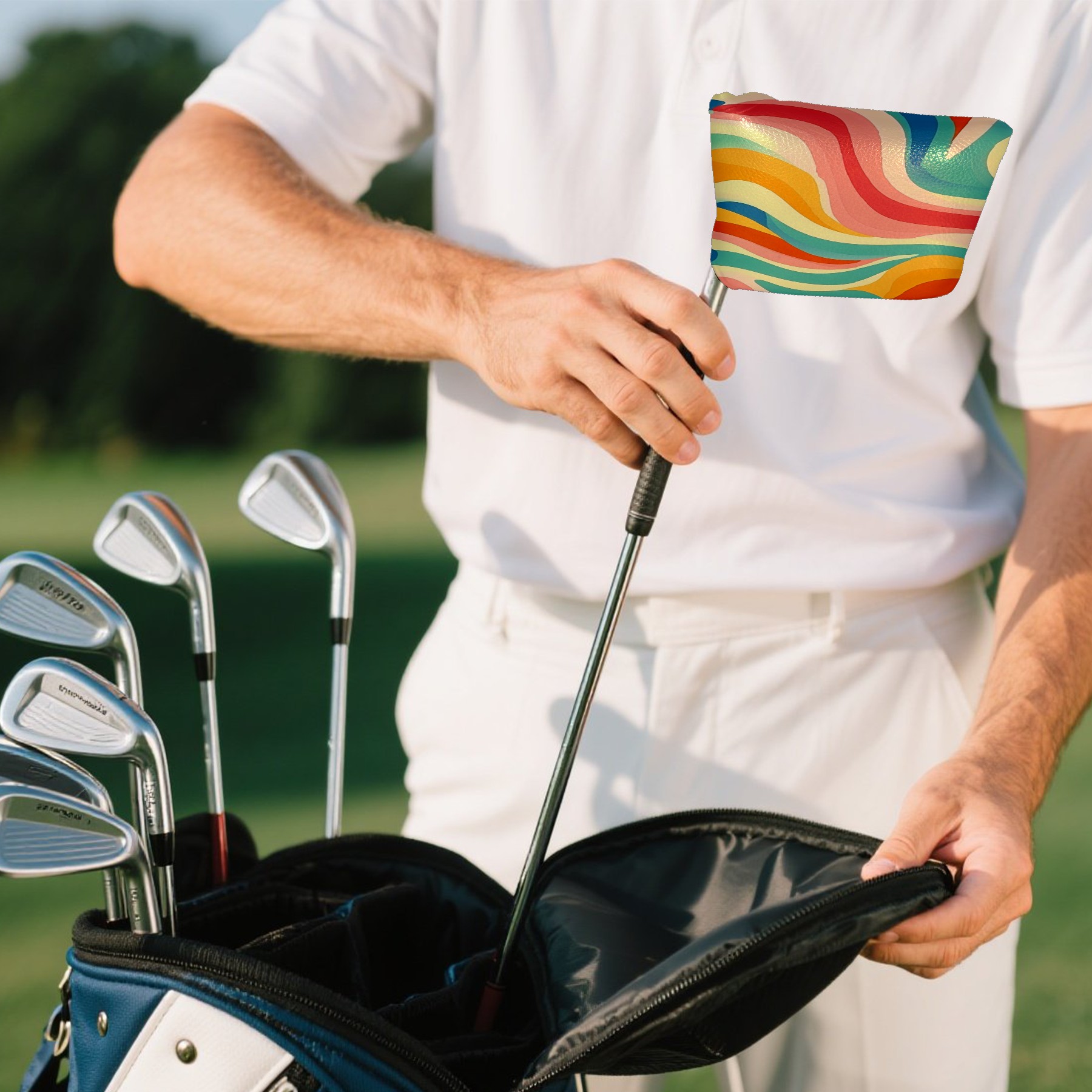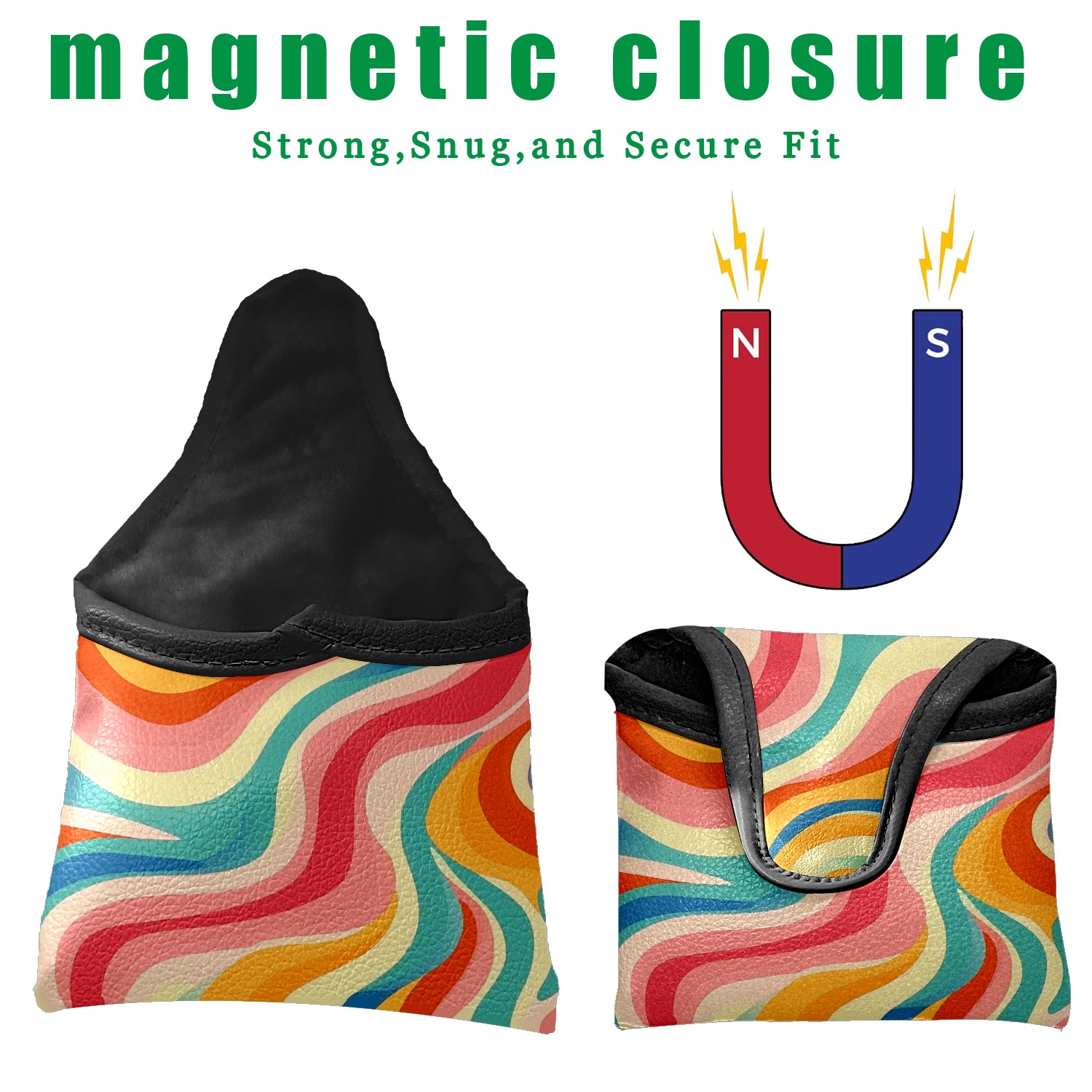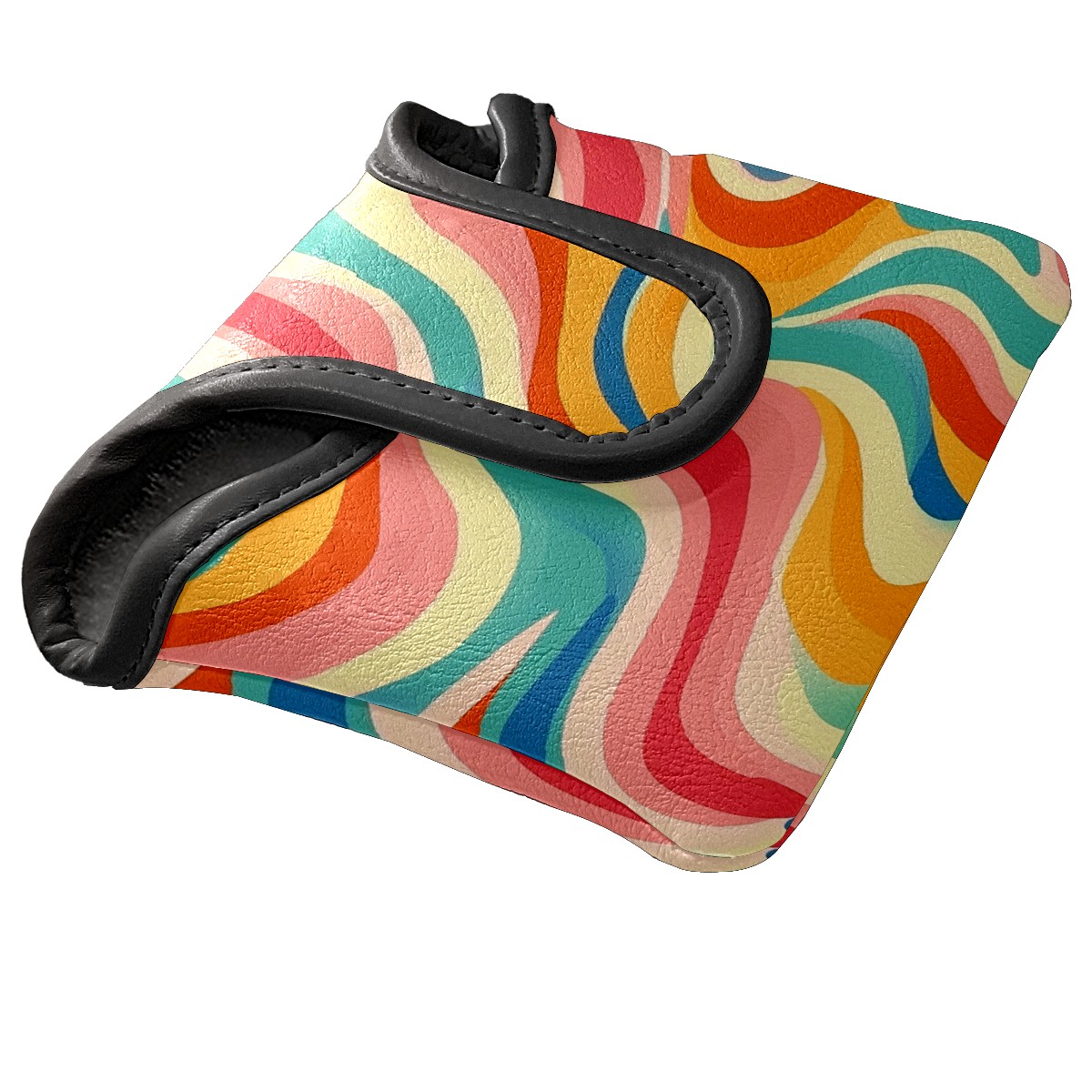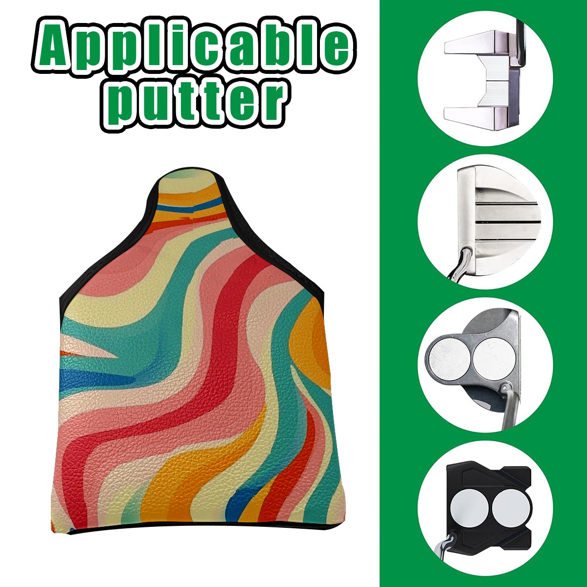 Golf Club Head Covers for Mallet Putter, Waterproof Leather Headcovers for Golf Clubs, Ideal Golf Accessories Gift for Men Women (Colorful Wavy Patterns)