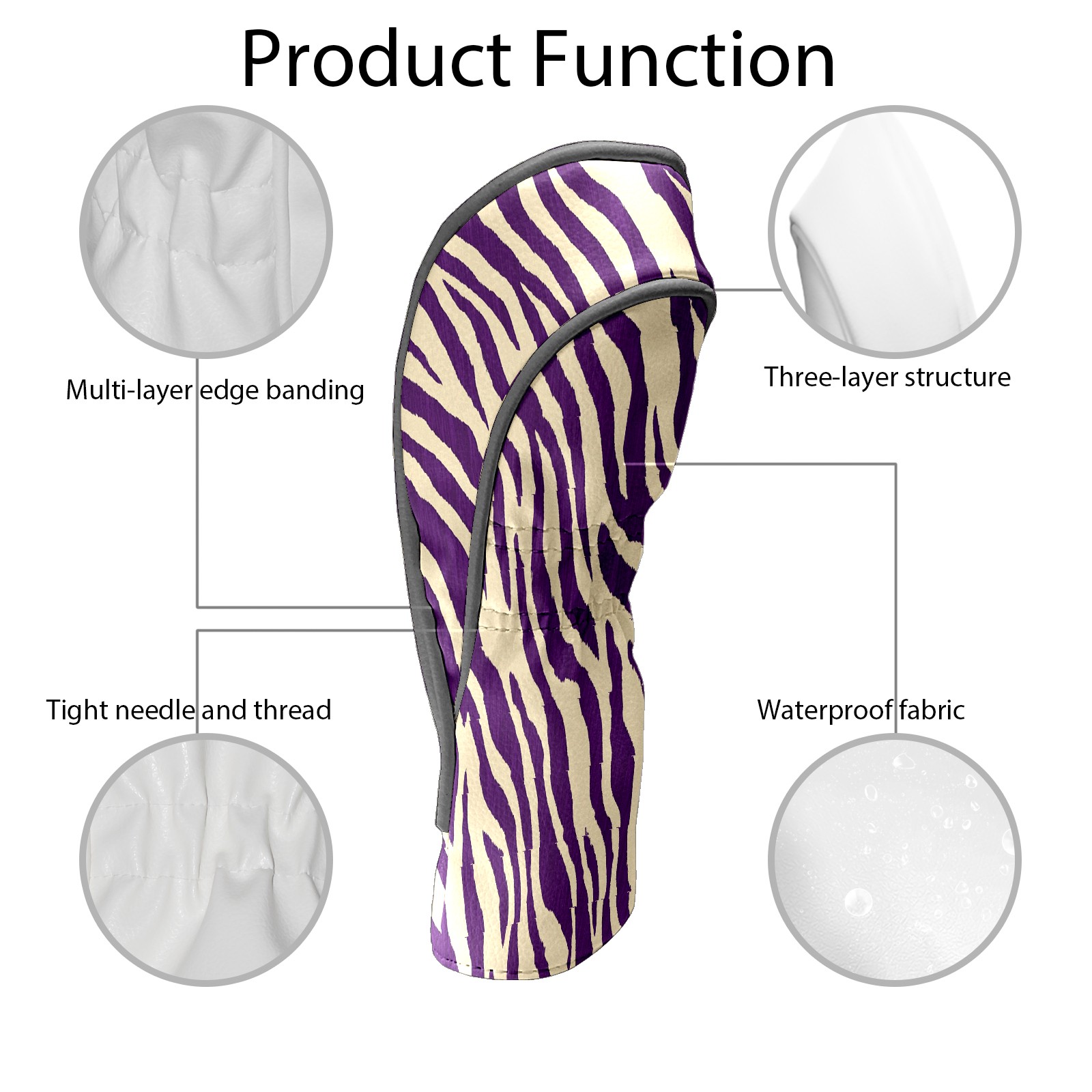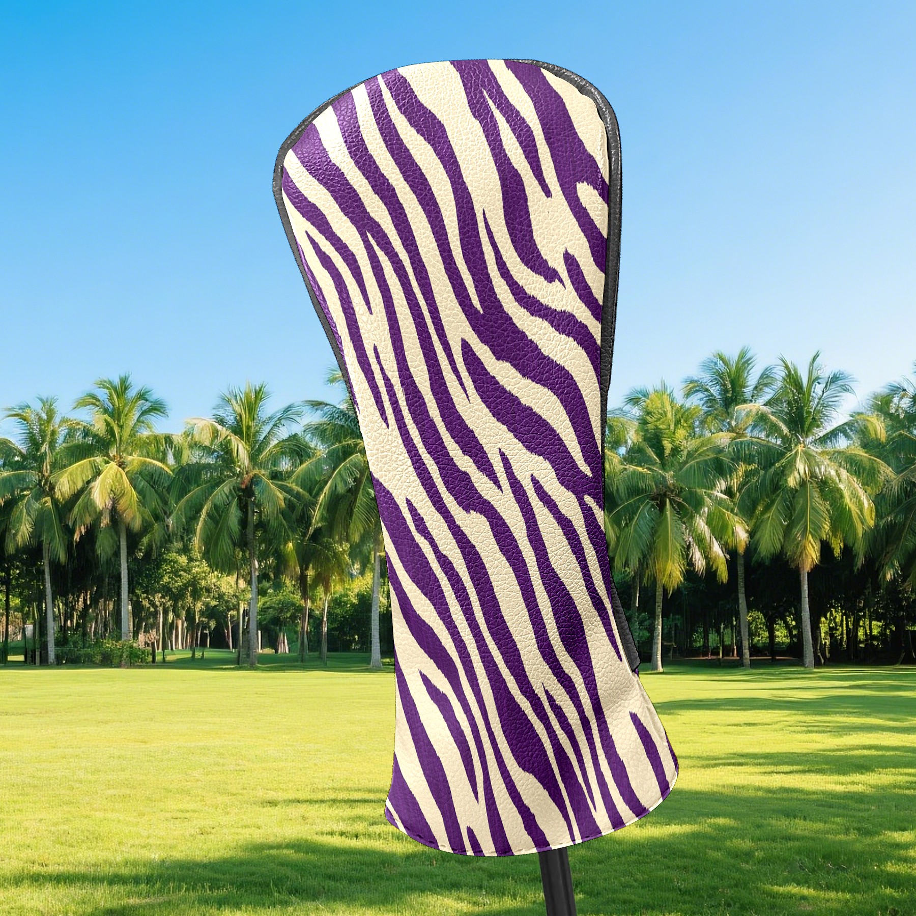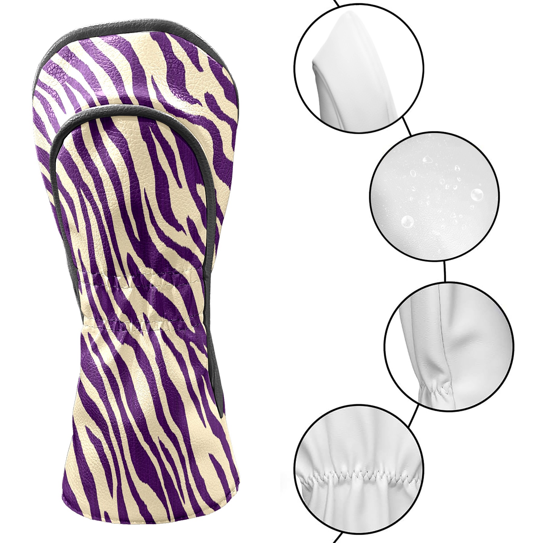 Golf Club Head Cover Premium Leather Driver Headcover, Golf Head Covers for Woods and Driver Waterproof Golf Headcovers with Anti-Scratch Lining for Men Women (Zebra Stripe Purple)