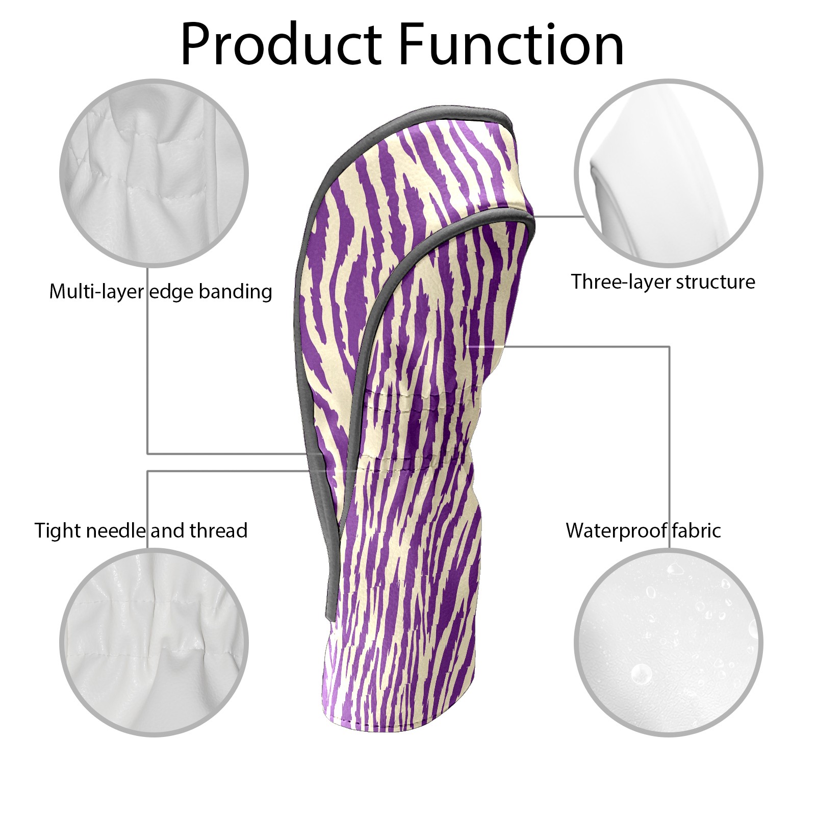Golf Club Head Cover Premium Leather Driver Headcover, Golf Head Covers for Woods and Driver Waterproof Golf Headcovers with Anti-Scratch Lining for Men Women (Light Purple Beige)