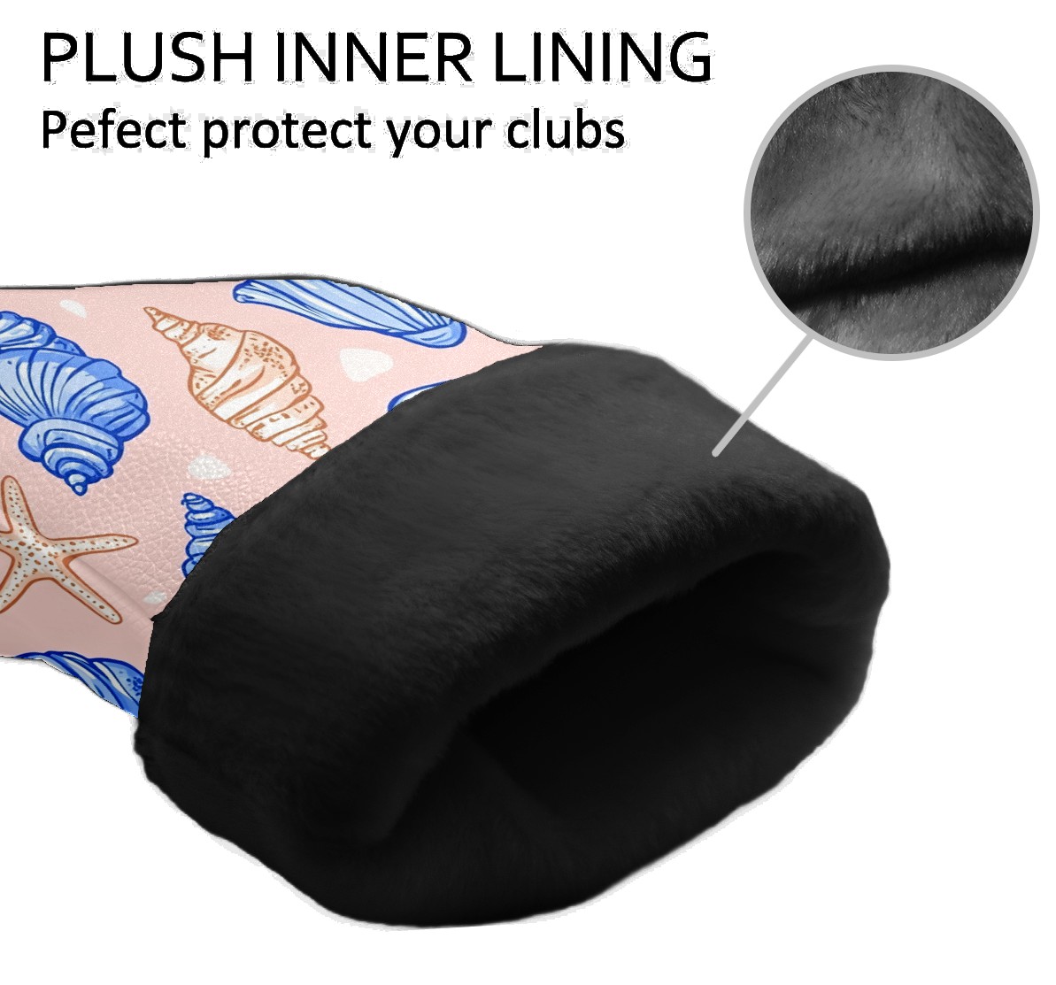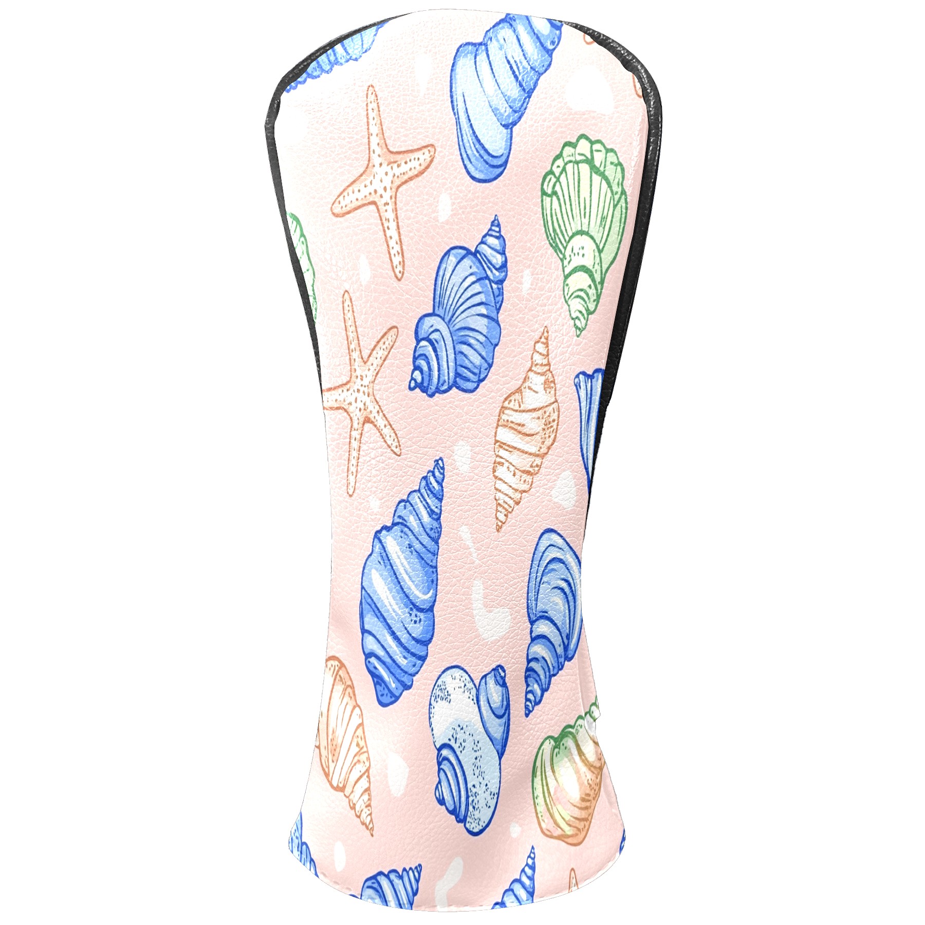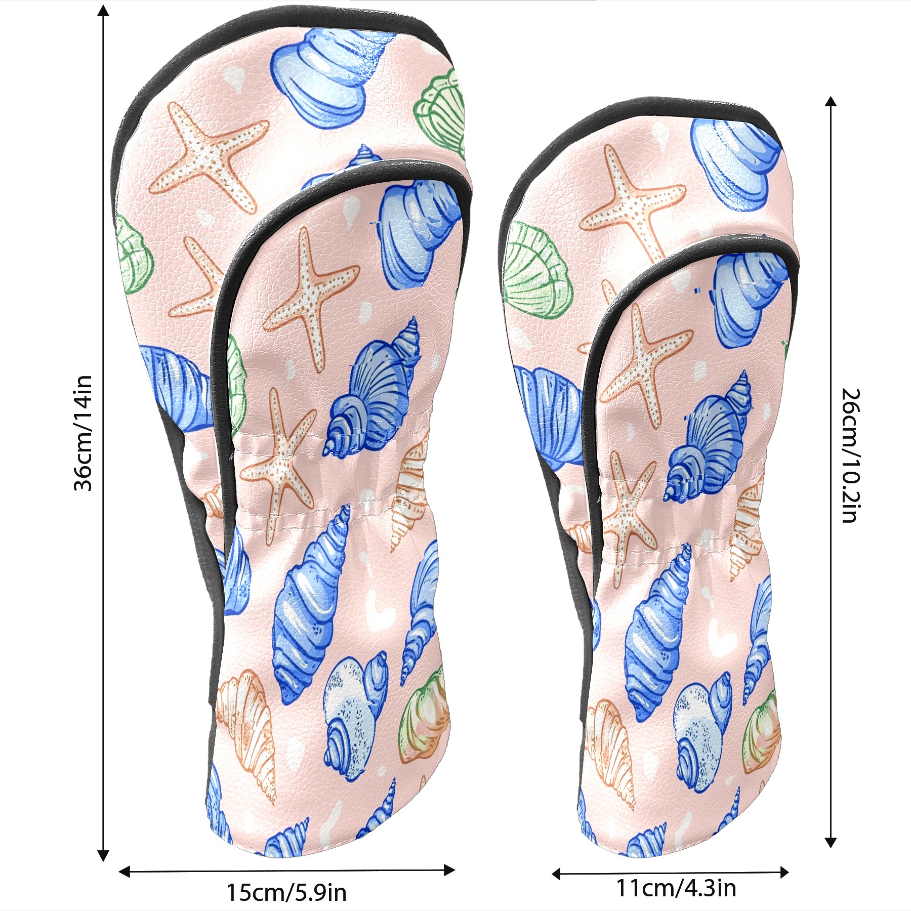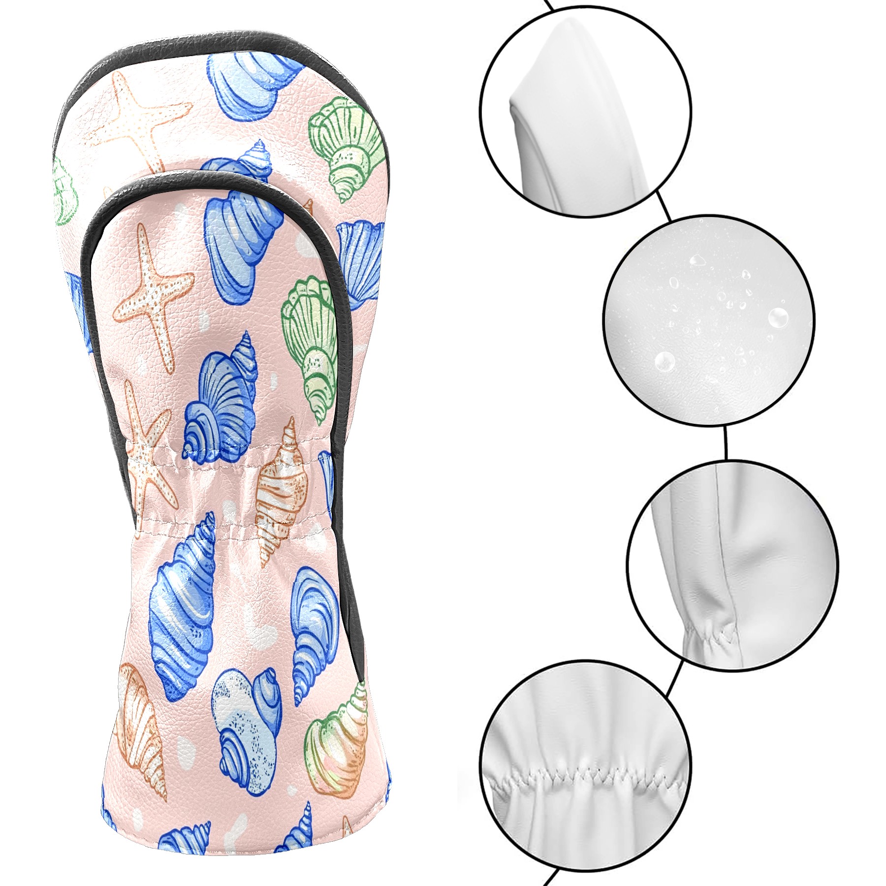 Golf Club Head Cover Premium Leather Driver Headcover, Golf Head Covers for Woods and Driver Waterproof Golf Headcovers with Anti-Scratch Lining for Men Women (Seashells Starfish Blue)