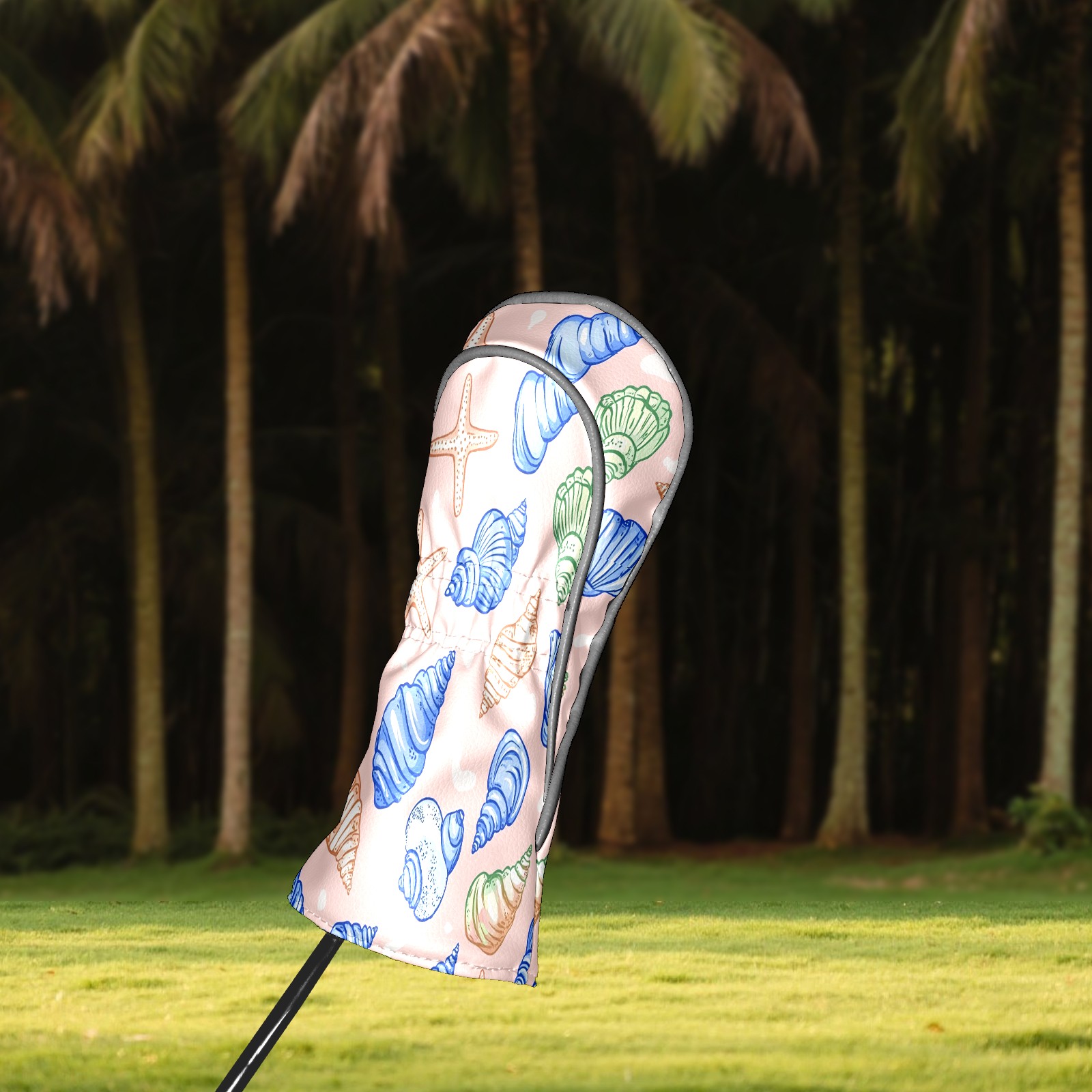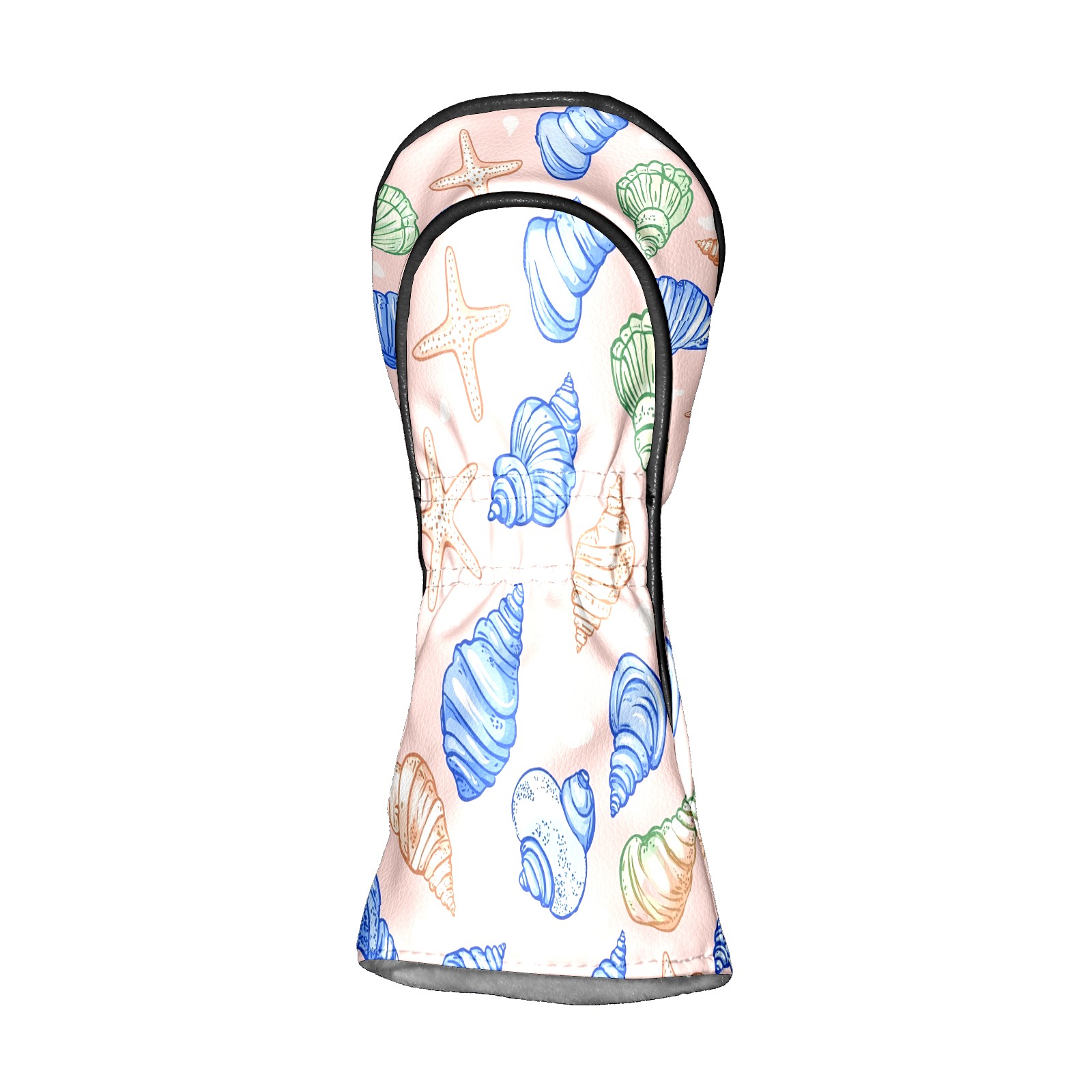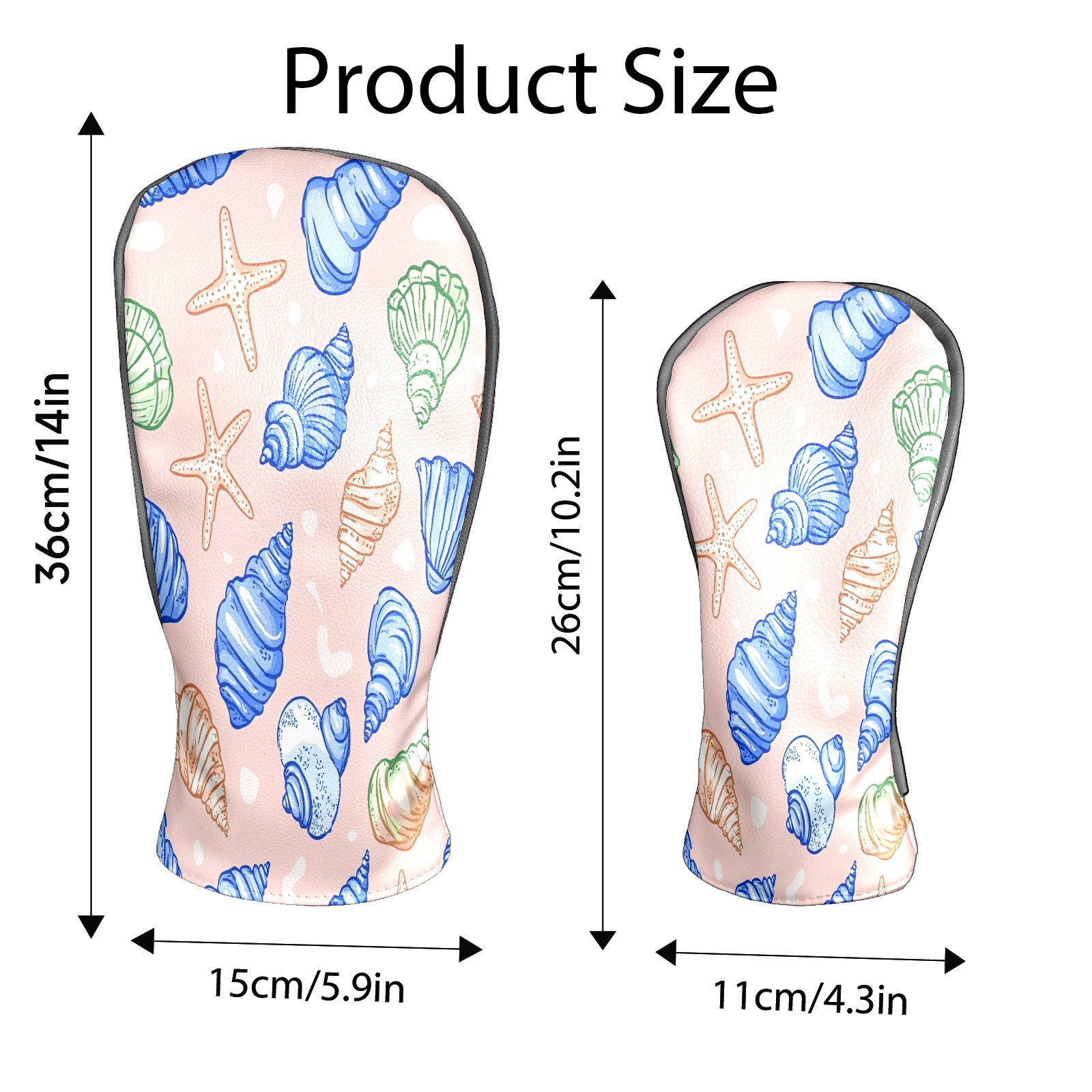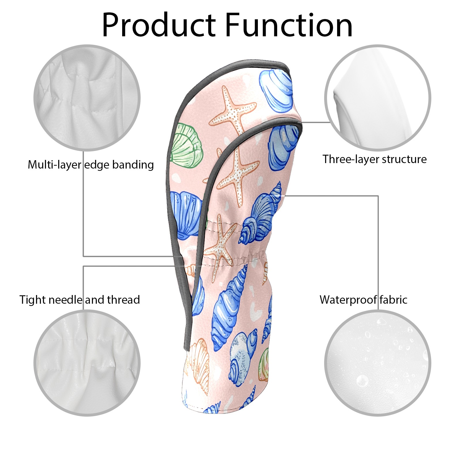 Golf Club Head Cover Premium Leather Driver Headcover, Golf Head Covers for Woods and Driver Waterproof Golf Headcovers with Anti-Scratch Lining for Men Women (Seashells Starfish Blue)