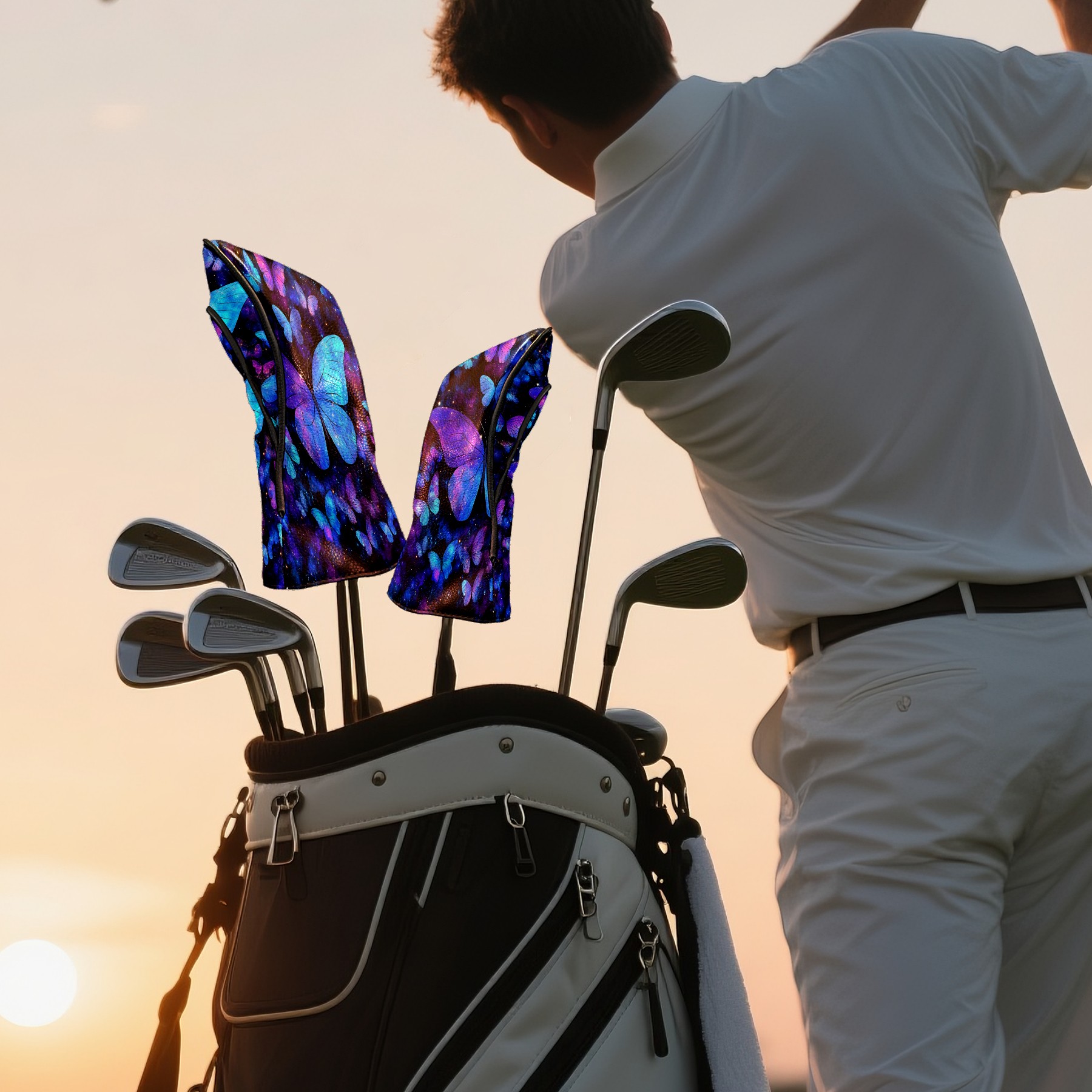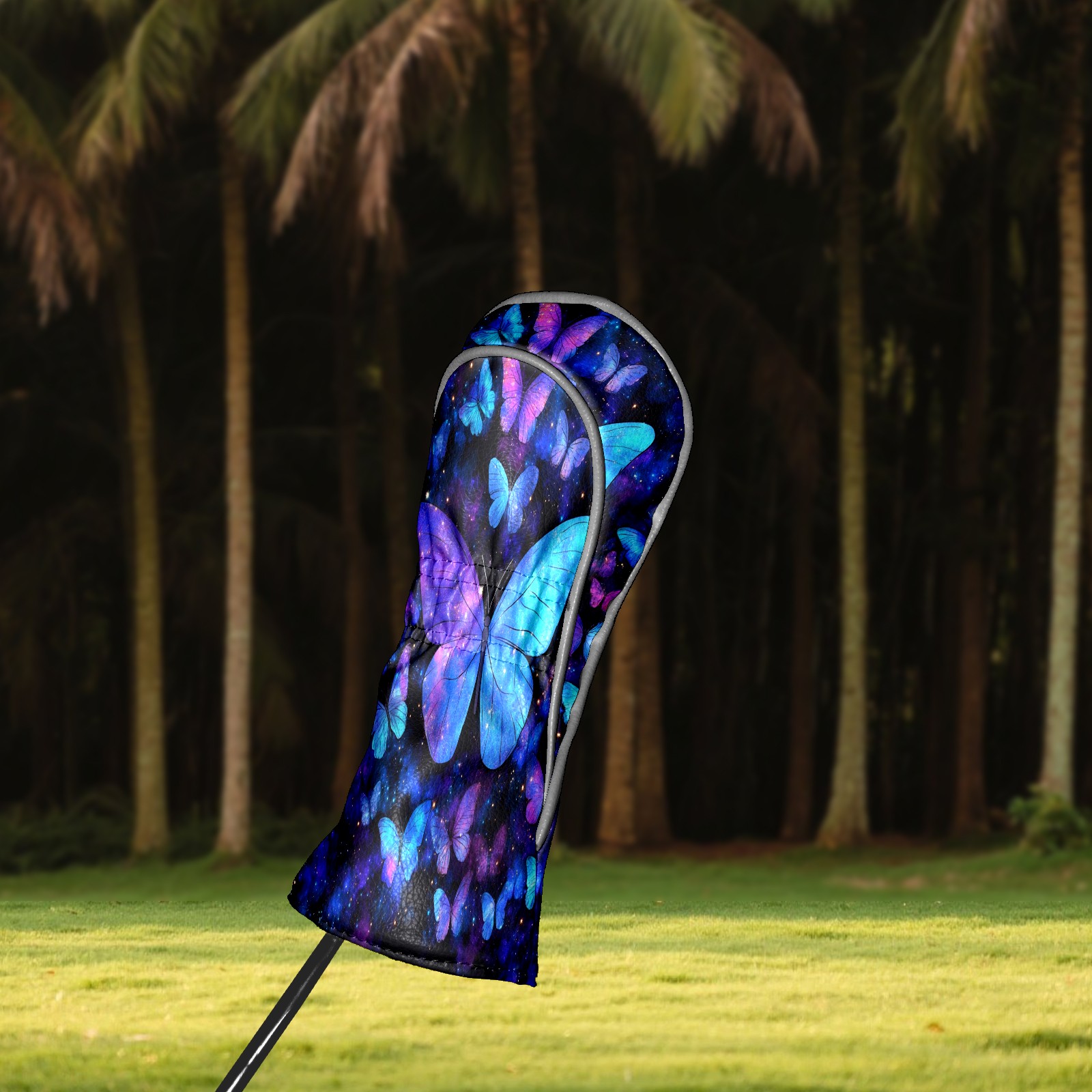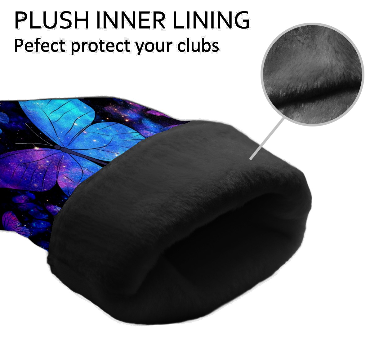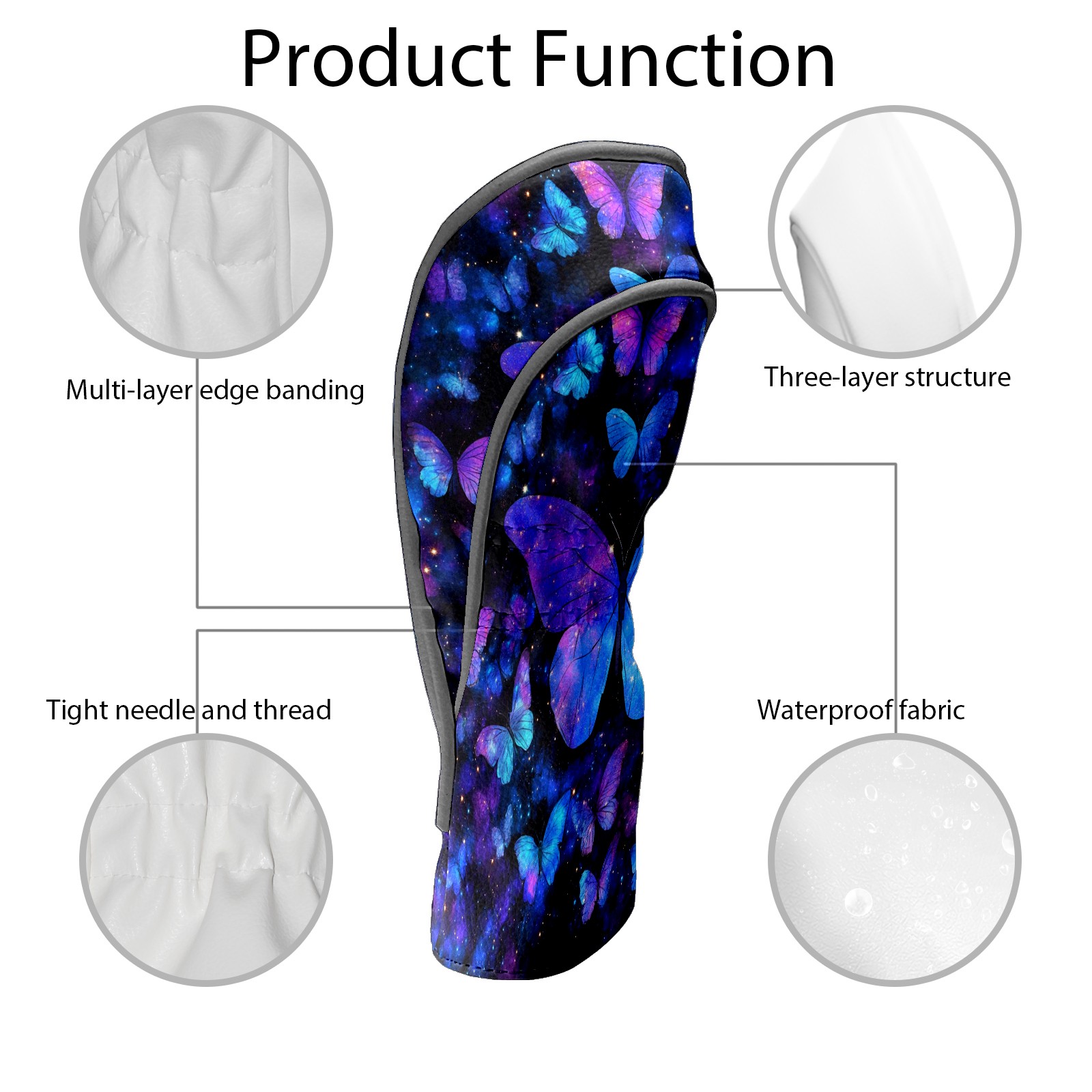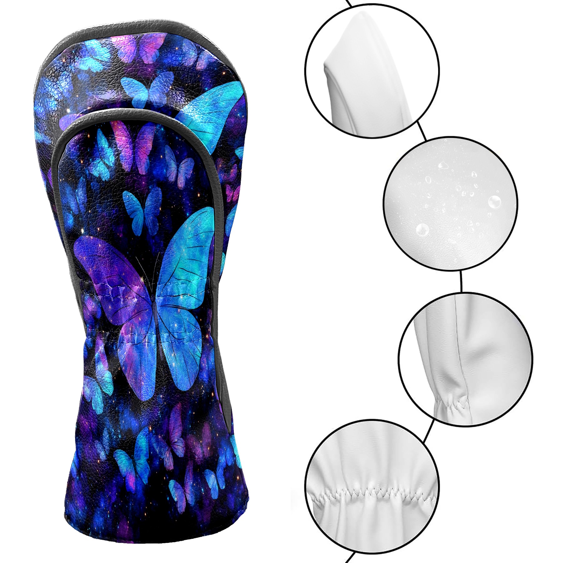 Golf Club Head Cover Premium Leather Driver Headcover, Golf Head Covers for Woods and Driver Waterproof Golf Headcovers with Anti-Scratch Lining for Men Women (Universe Butterfly)