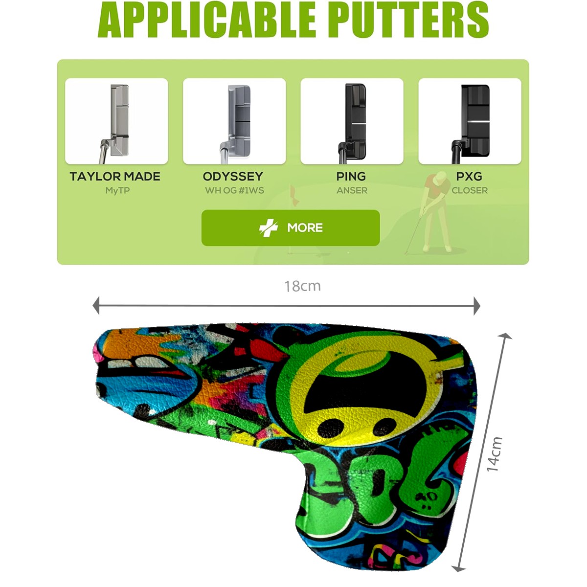• Protect your golf clubs in style with our high-quality PU Leather Headcovers, combining durability and elegance for every golfer.Designed to fit most blade putters (14cm x 18cm).