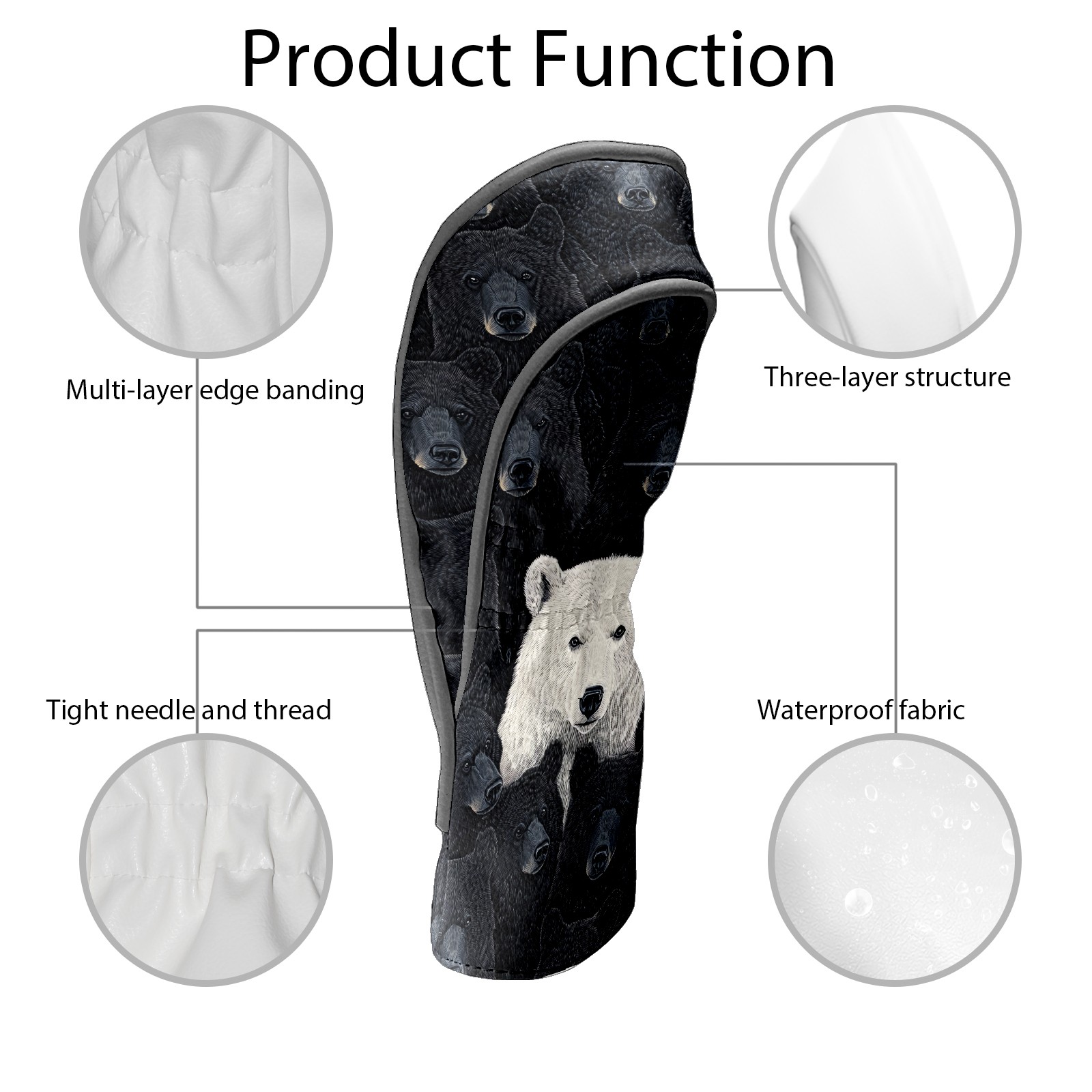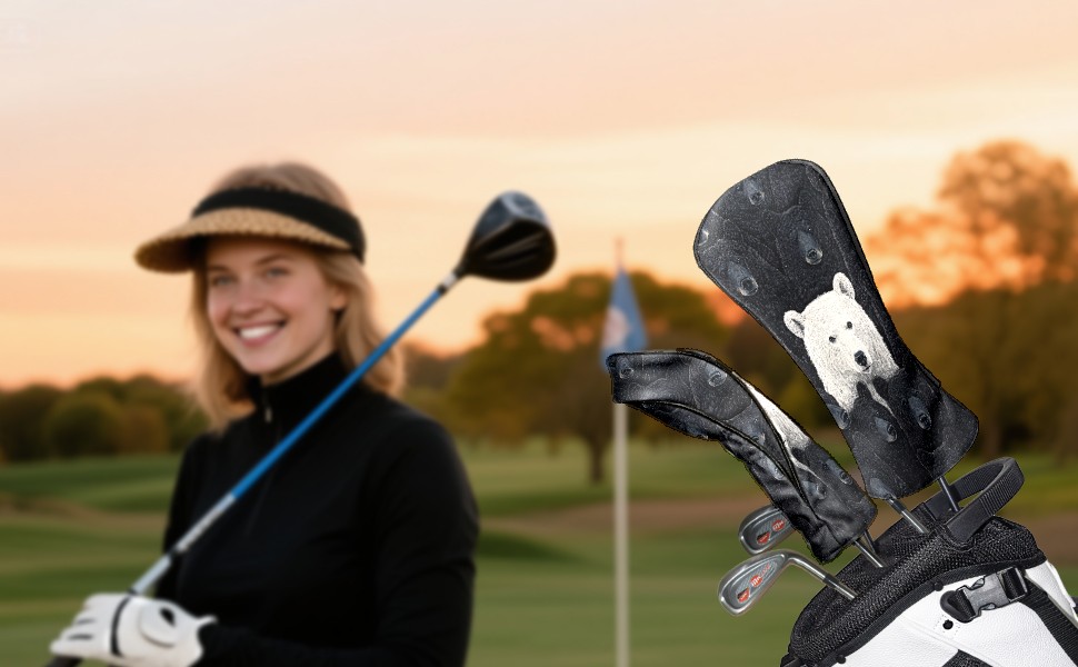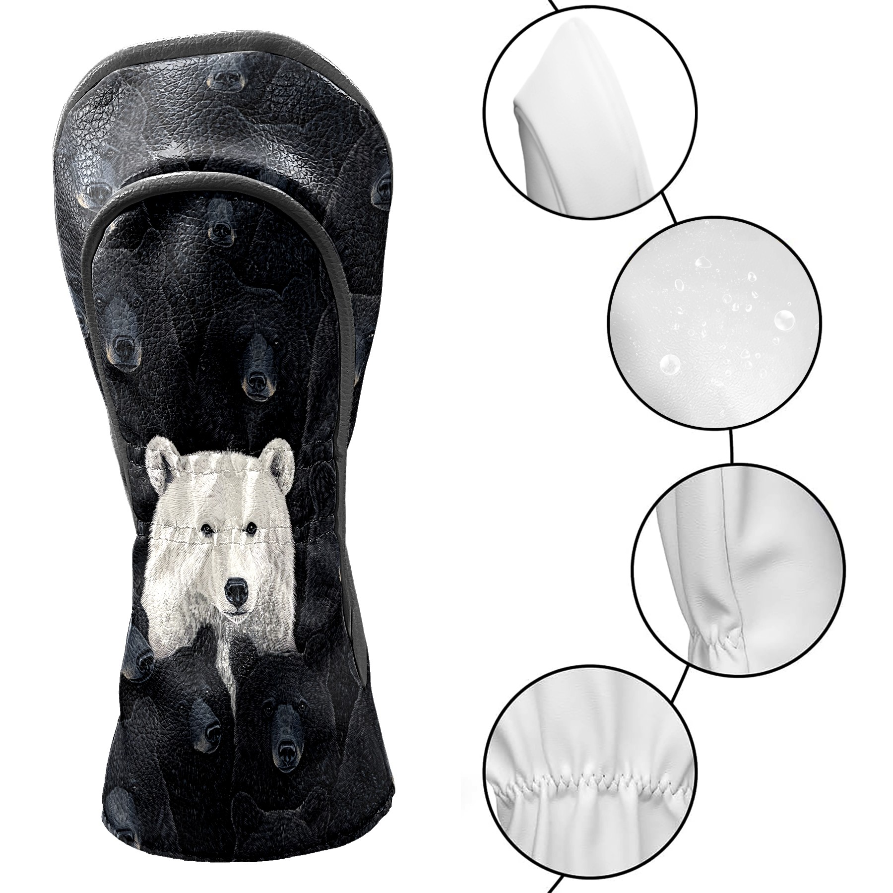 Golf Club Head Cover Premium Leather Driver Headcover, Golf Head Covers for Woods and Driver Waterproof Golf Headcovers with Anti-Scratch Lining for Men Women (Bears)