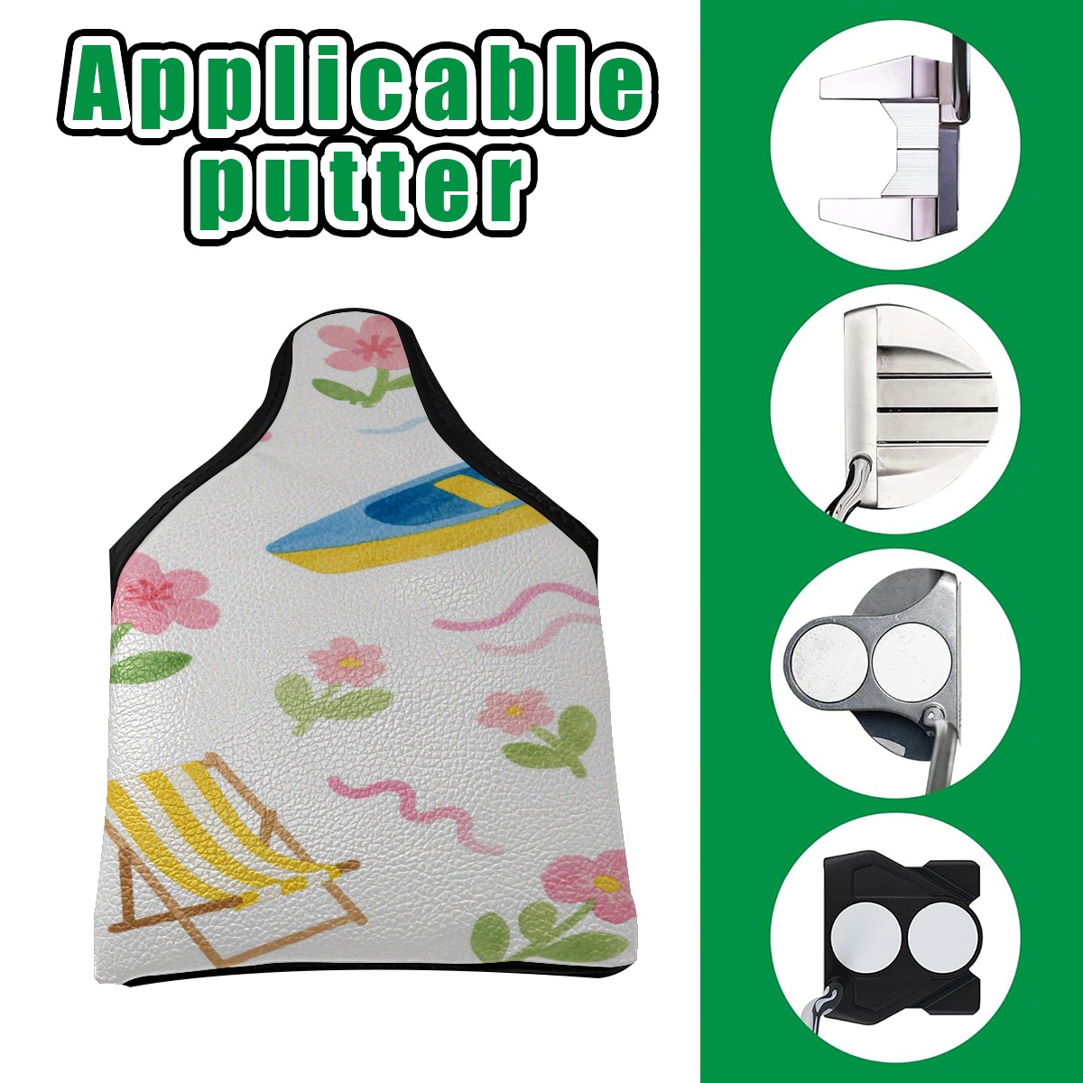 Small Mallet Putter Cover, PU Leather and Waterproof Mallet Putter Cover, Golf Club Protective Case Fits for All Brand Putter Golf Clubs for Men Women Flower