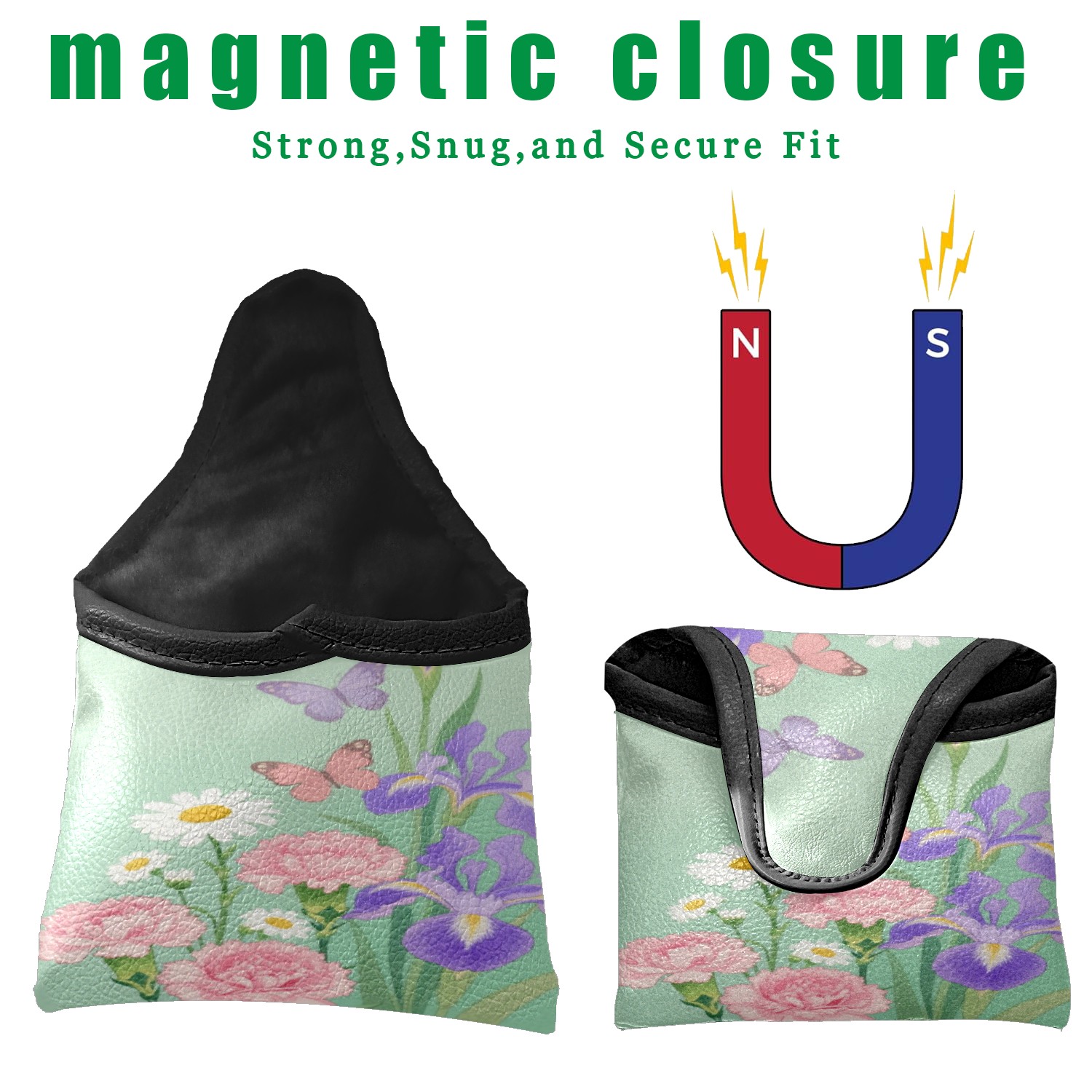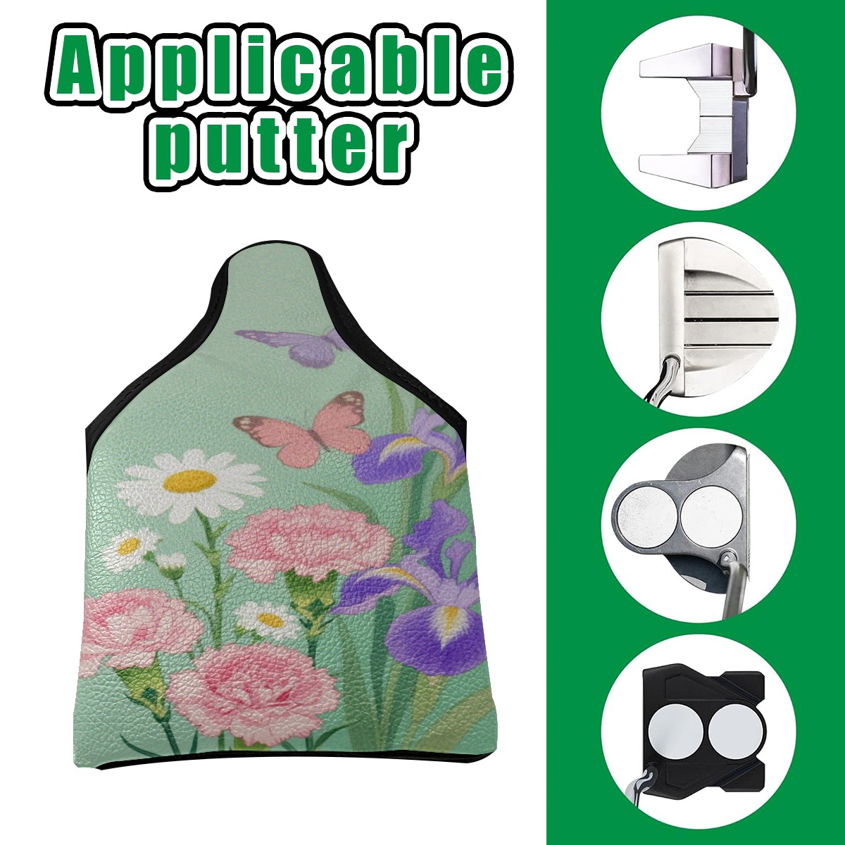 Small Mallet Putter Cover, PU Leather and Waterproof Mallet Putter Cover, Golf Club Protective Case Fits for All Brand Putter Golf Clubs for Men Women Flower
