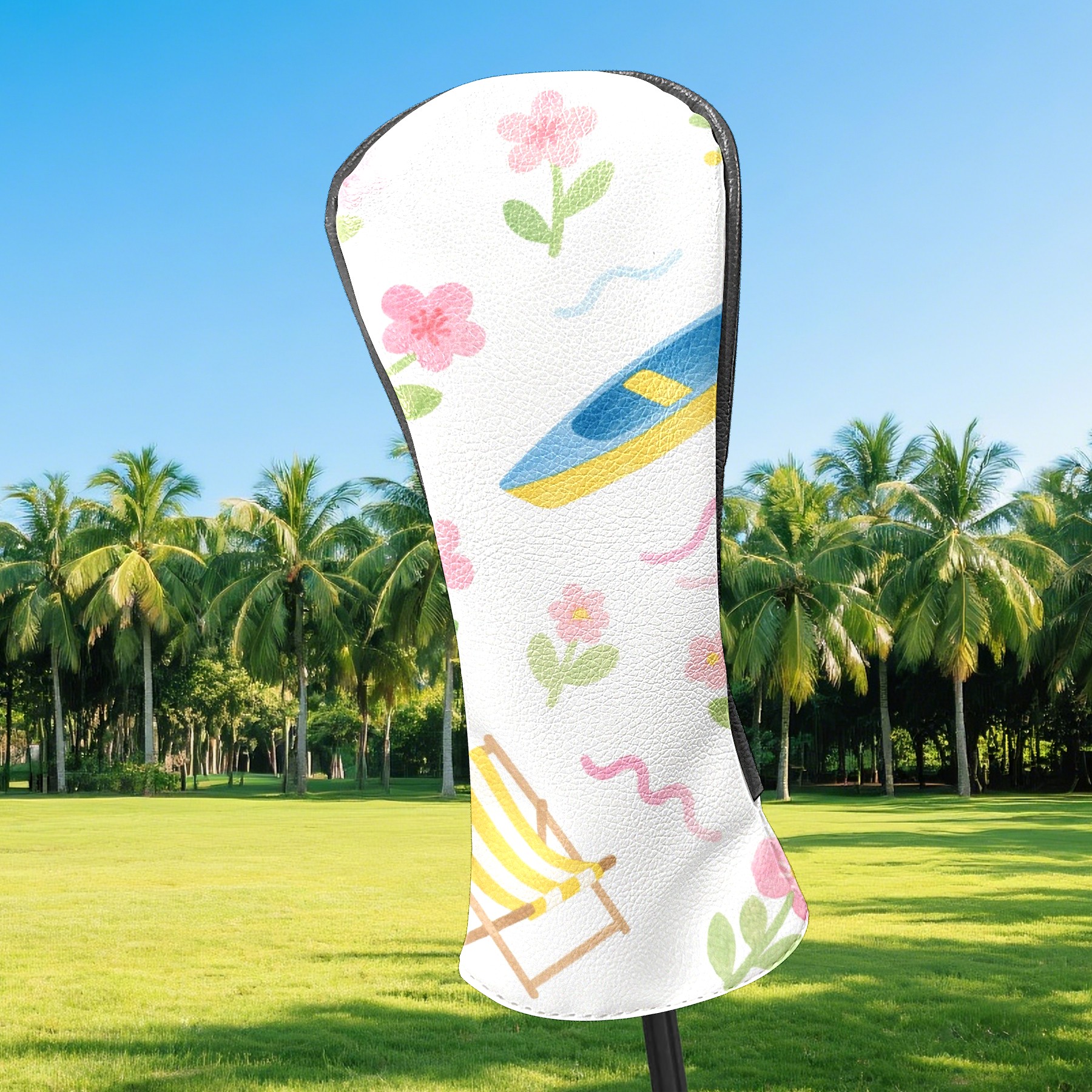 Black Golf Club Head Cover Golf Accessories Head Covers Set For Driver & Fairway Woods Flower