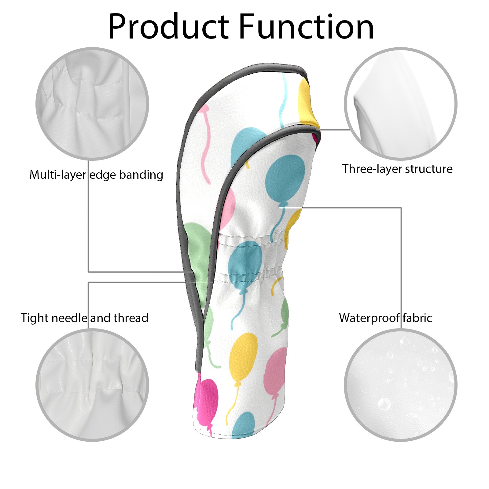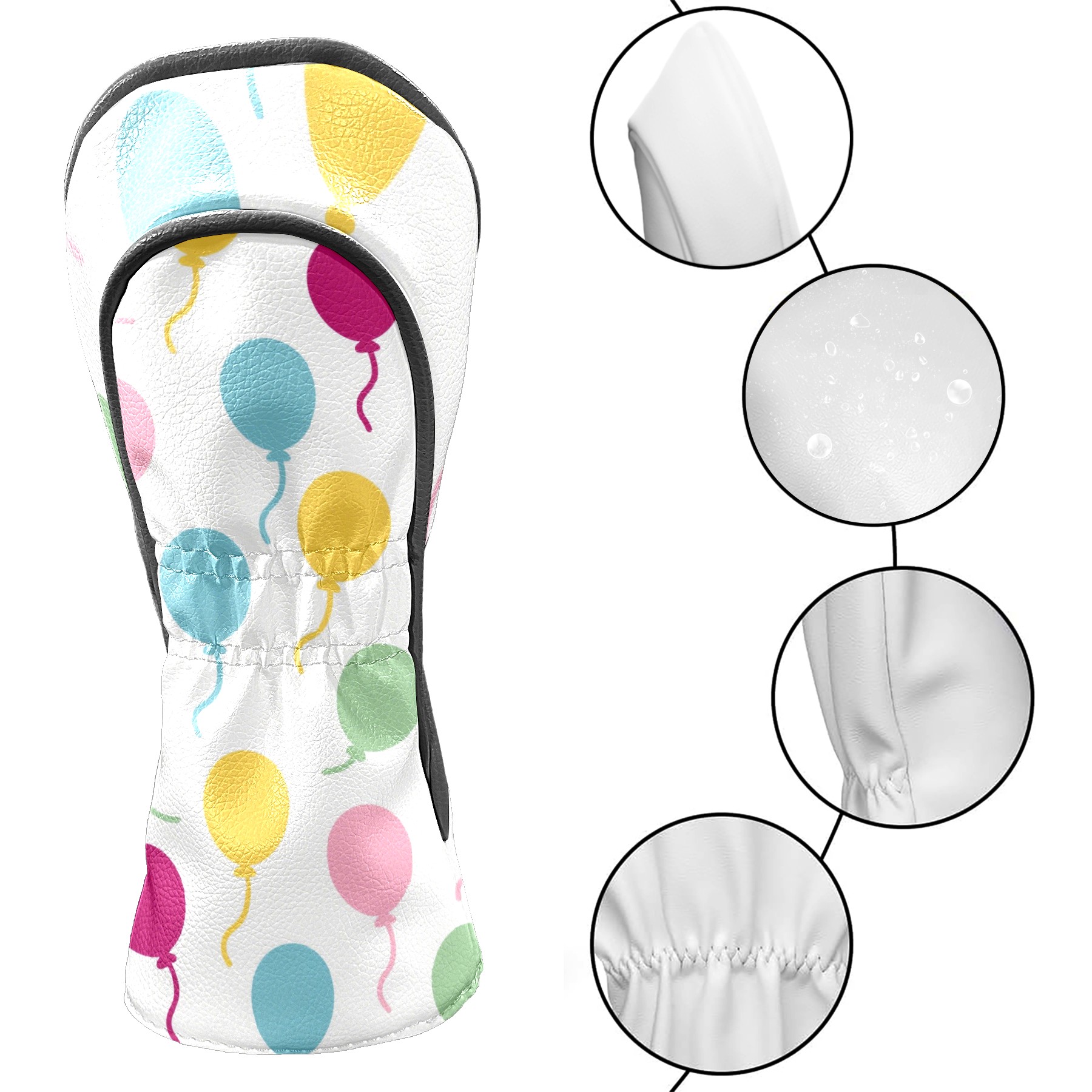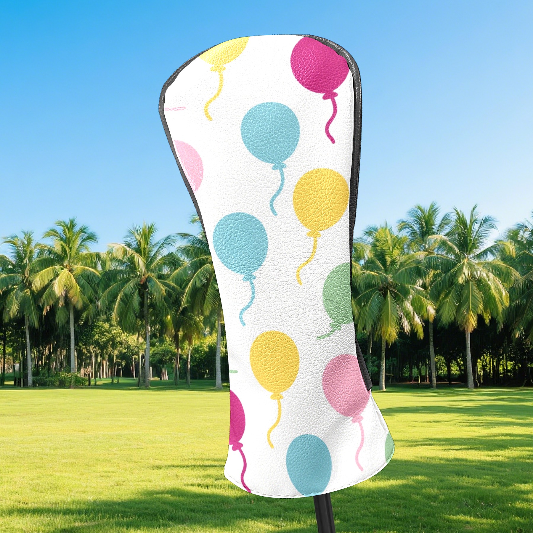 Black Golf Club Head Cover Golf Accessories Head Covers Set For Driver & Fairway Woods Colorful Balloons