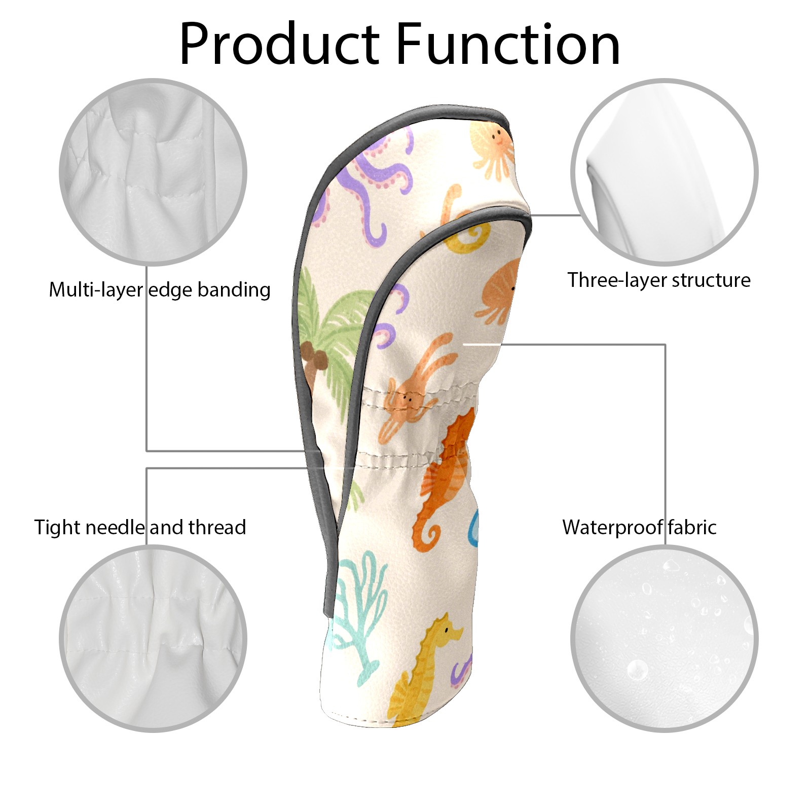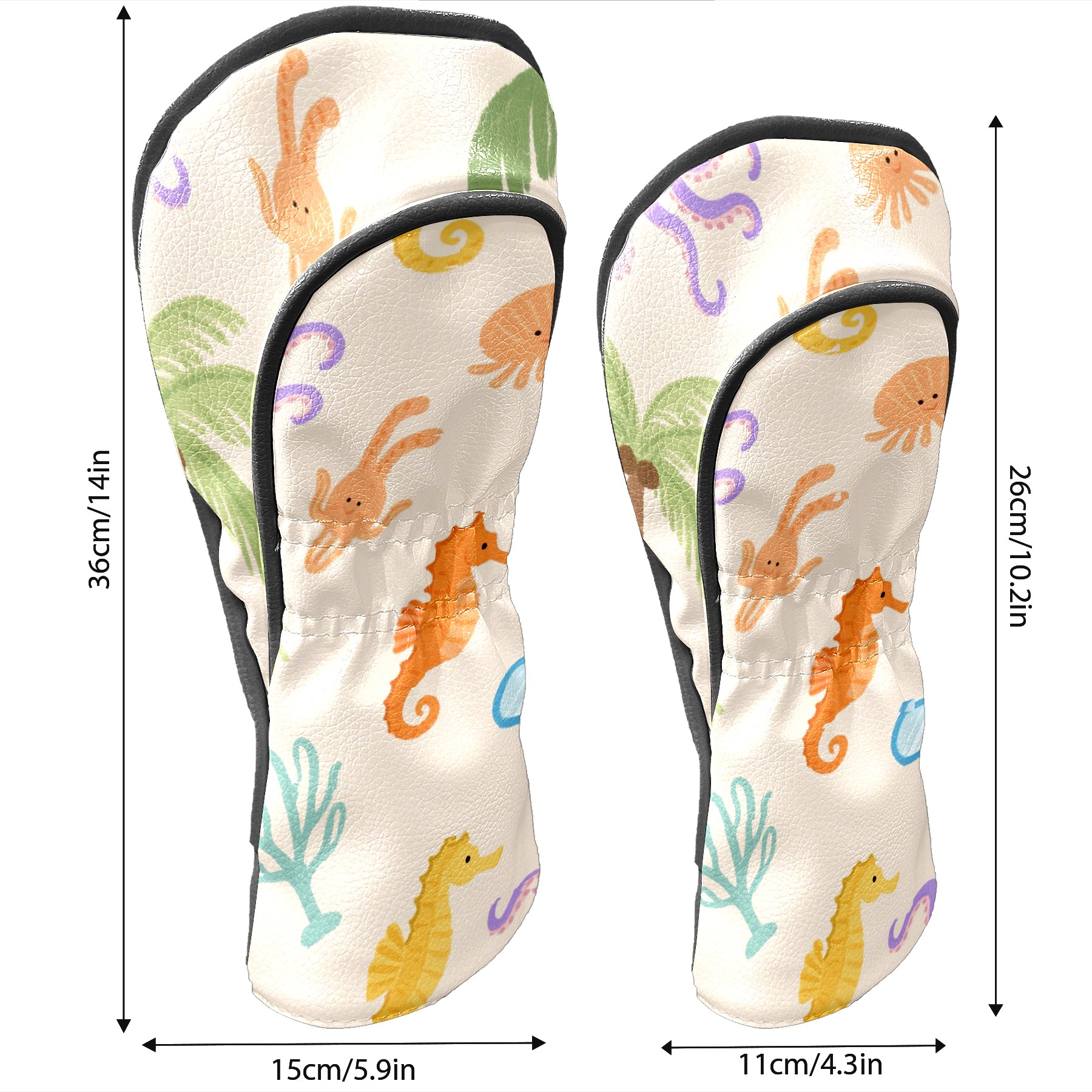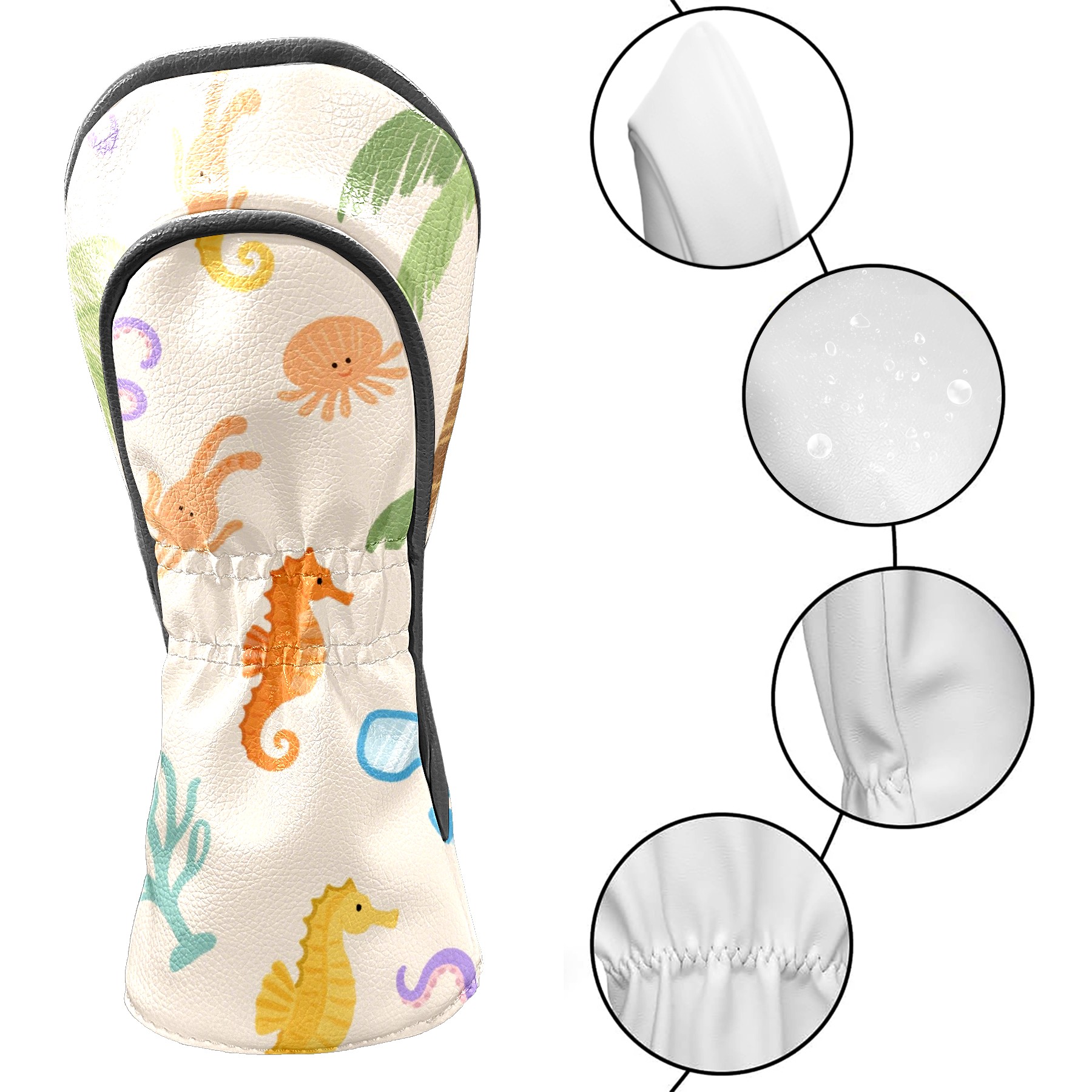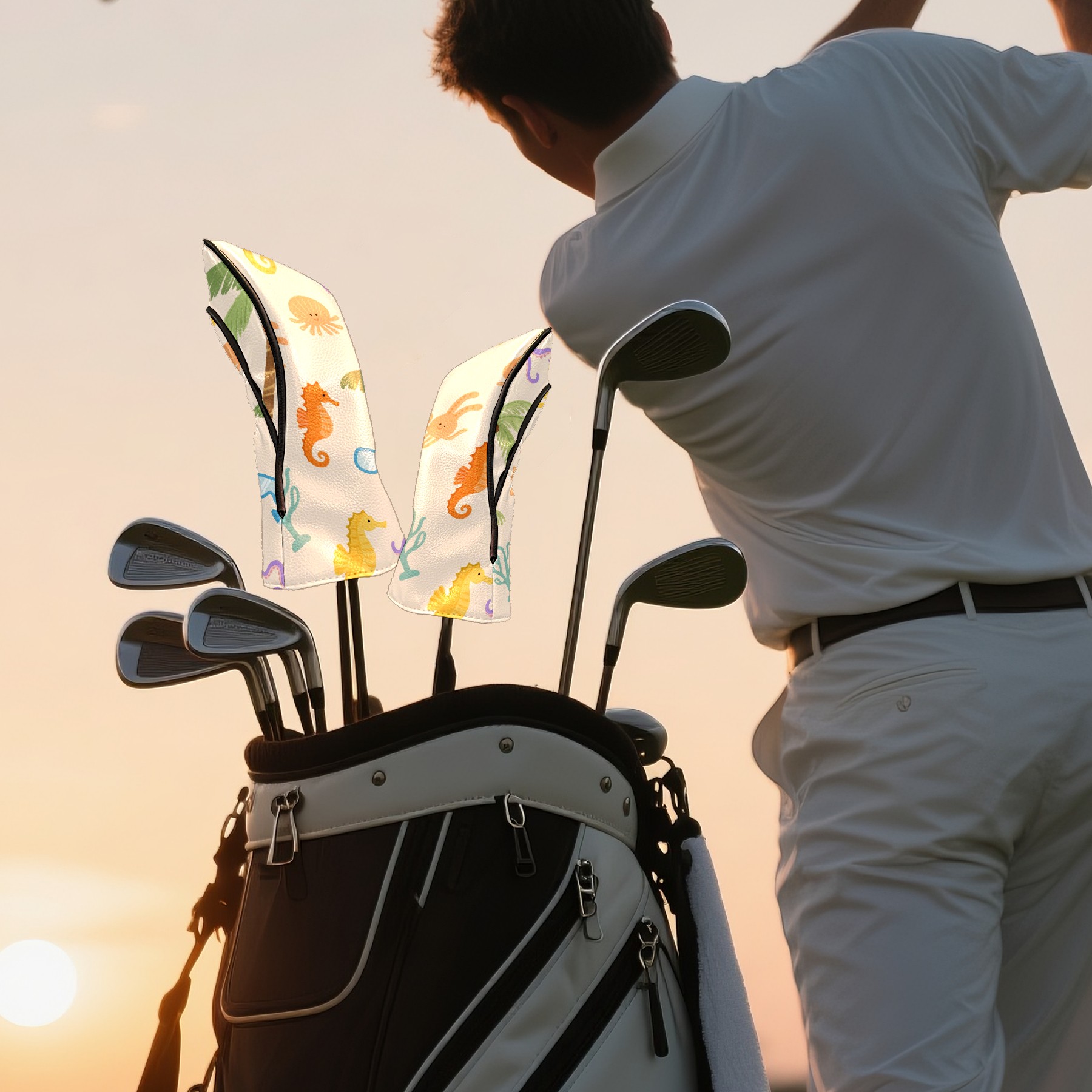 Black Golf Club Head Cover Golf Accessories Head Covers Set For Driver & Fairway Woods Marine Life